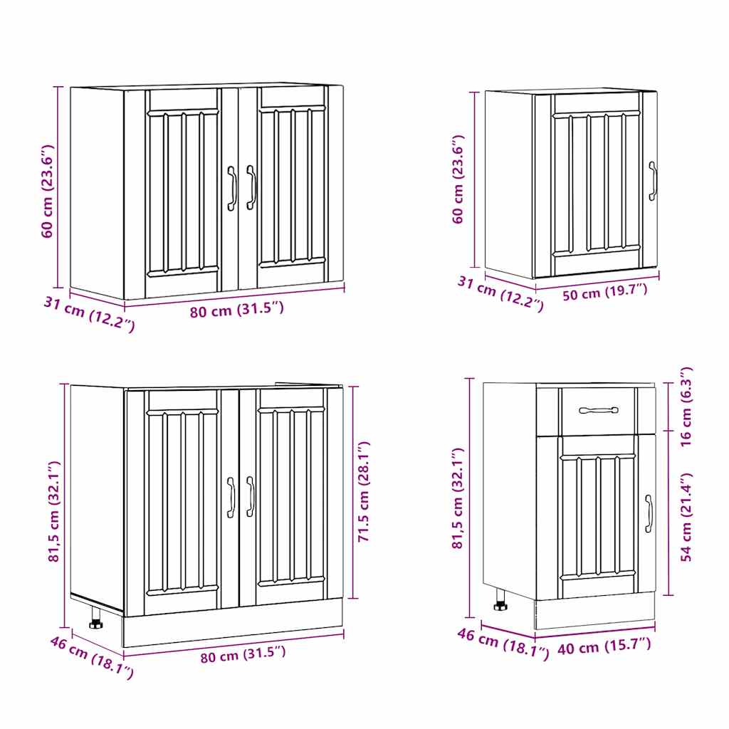Acest set de dulapuri de bucătărie, format din 7 piese, cu designul său elegant, optimizează spațiul din bucătărie și oferă un loc de depozitare amplu pentru lucrurile necesare!