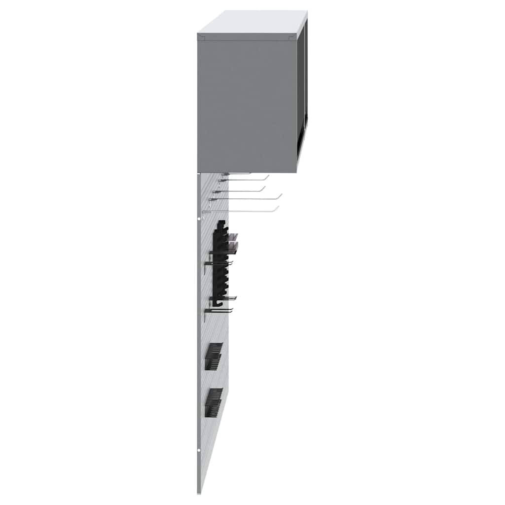 Dacă vrei să îți organizezi atelierul sau garajul, acest set de dulapuri montat pe perete e exact ce ai nevoie. Cu un design industrial trendy, are un aspect urban cool și este făcut din oțel vopsit electrostatic cu un finisaj neted gri. Excelent pentru utilizare în interior, dulapul îți păstrează uneltele într-o perfectă ordine, iar tabloul cu cârlige adaugă funcționalitate, având posibilitatea să le aranjezi cum vrei tu.