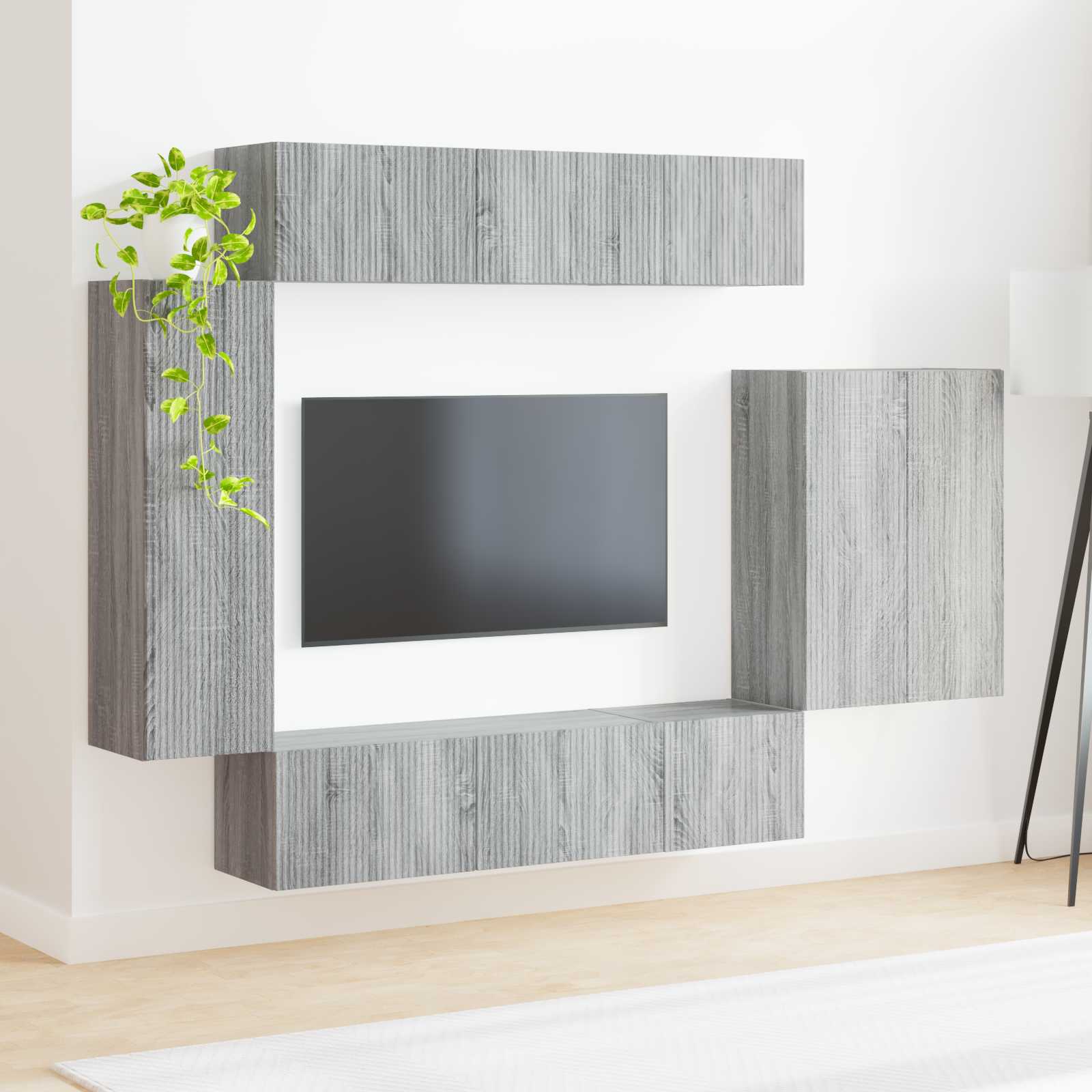 Set Dulap pentru Televizor Montat pe Perete 6 pcs Gri Sonoma GartenMobel Dekor