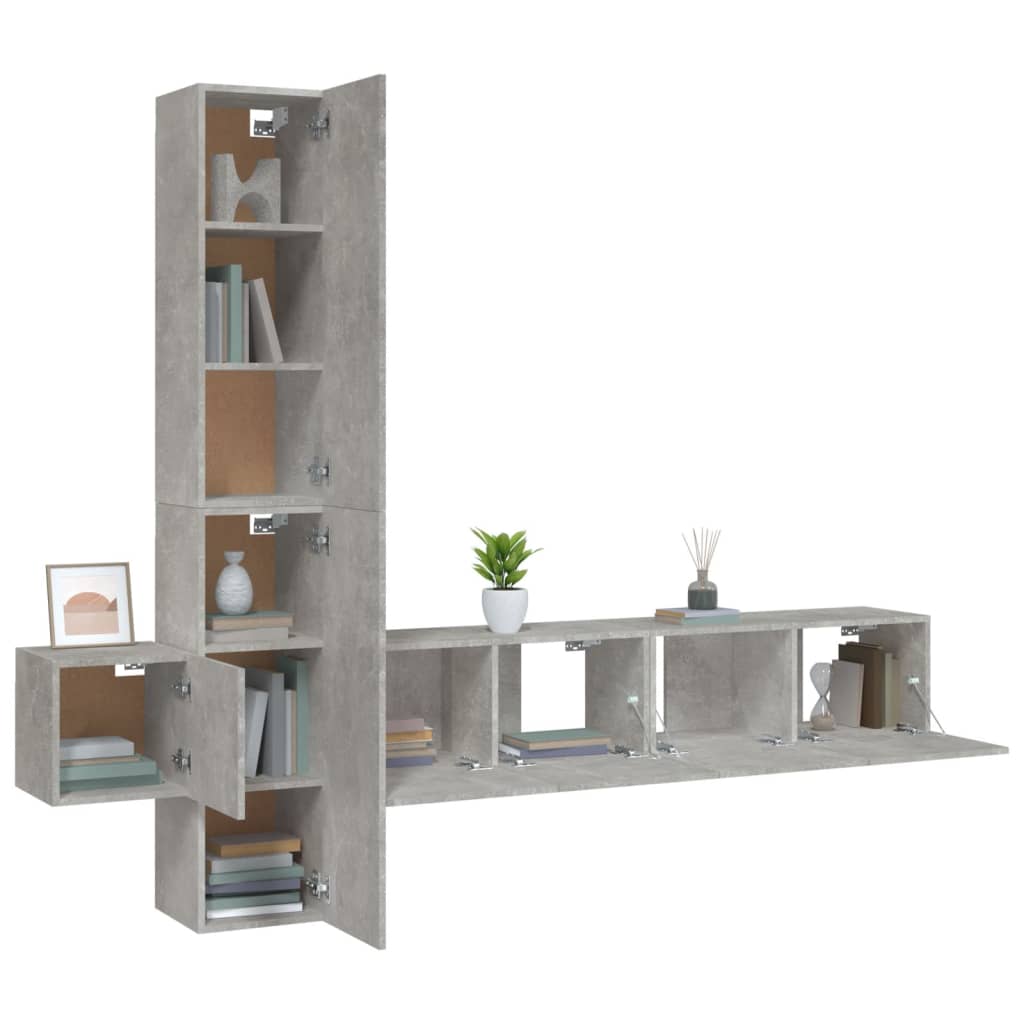 Set dulap TV, 5 piese, gri beton, lemn prelucrat GartenMobel Dekor