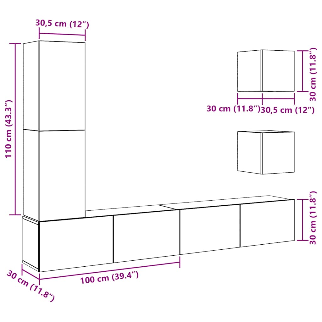 Set dulap TV 5 piese montat pe perete Stejar artizanal GartenMobel Dekor
