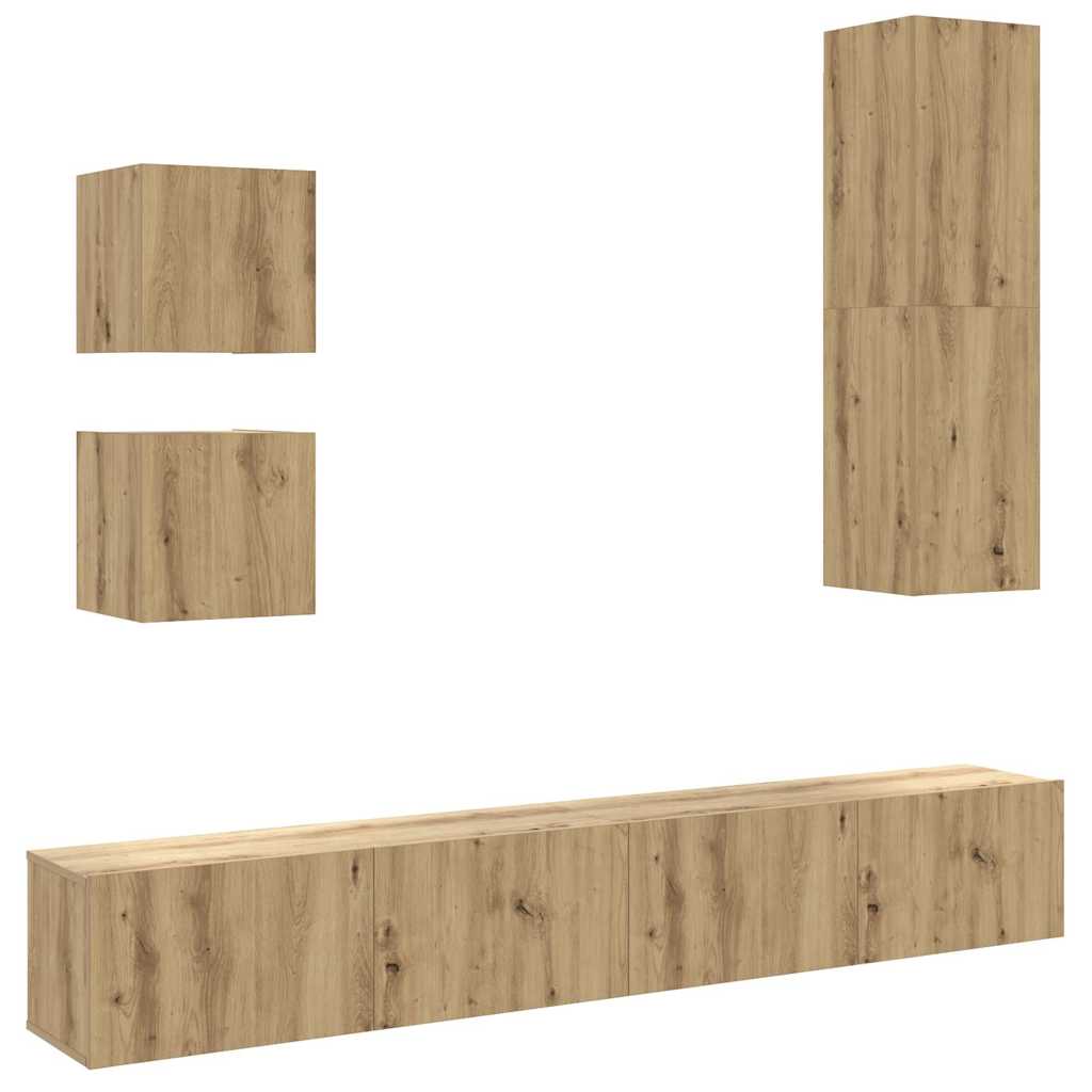 Set dulap TV 5 piese montat pe perete Stejar artizanal GartenMobel Dekor