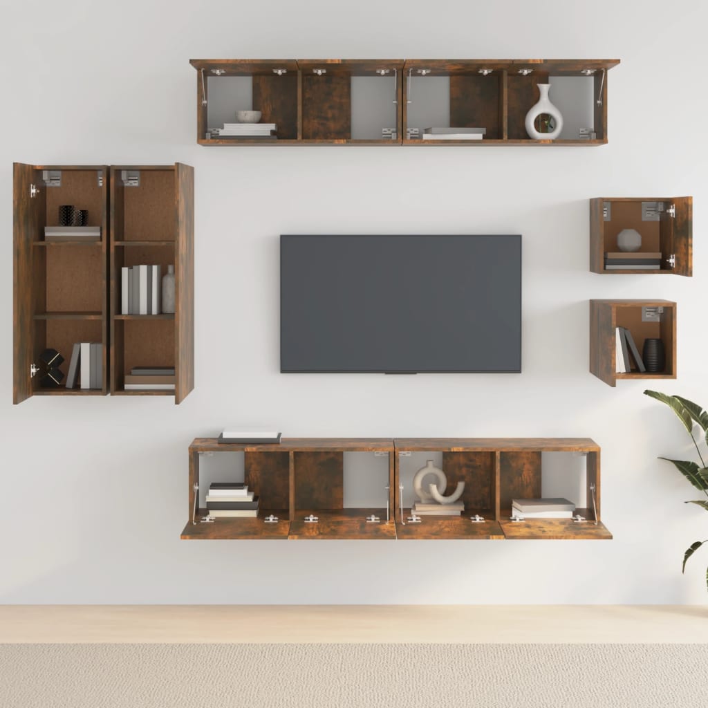 Set dulap TV, 8 piese, stejar fumuriu, lemn prelucrat GartenMobel Dekor