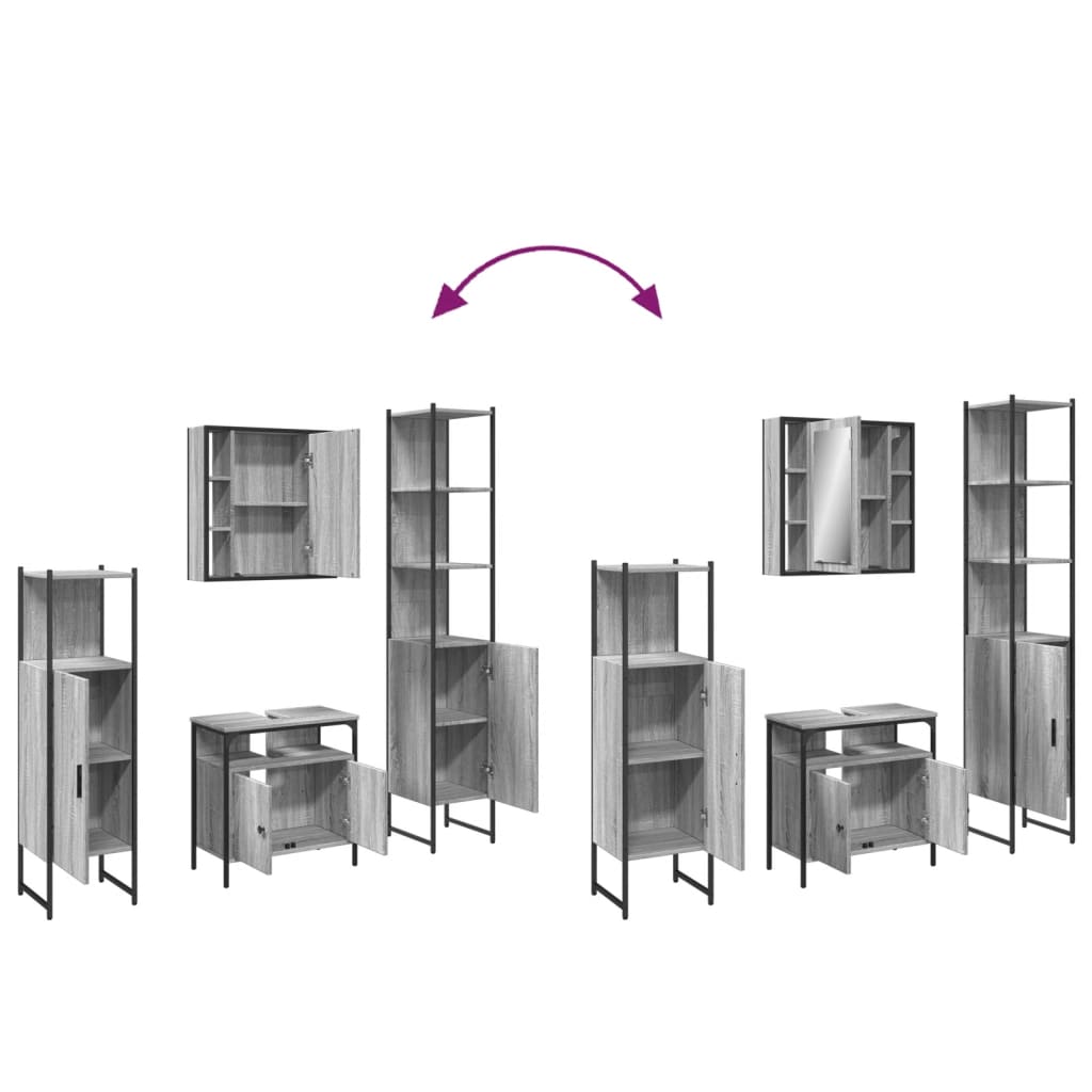 Set dulapuri de baie, 4 piese, gri sonoma, lemn prelucrat GartenMobel Dekor