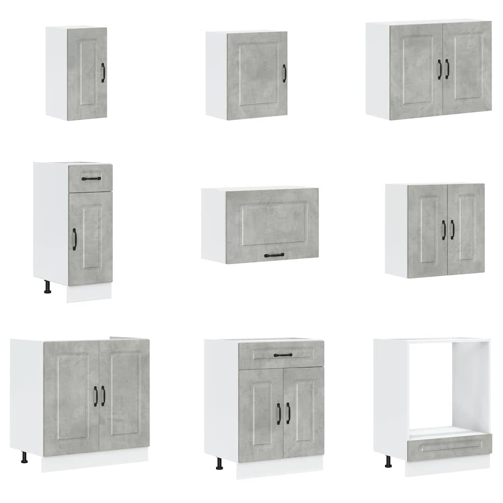Set dulapuri de bucătărie 14 piese „Kalmar” gri beton Lemn GartenMobel Dekor