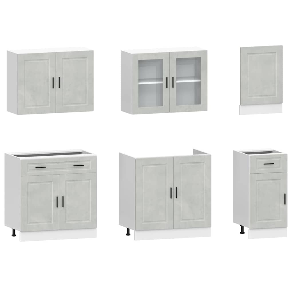 Set dulapuri de bucătărie 7 piese „Kalmar” gri beton Lemn GartenMobel Dekor