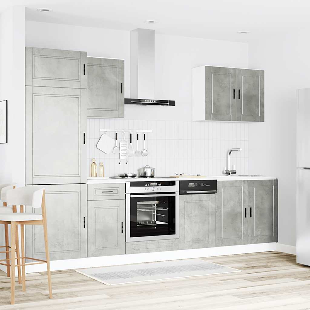 Set dulapuri de bucătărie 7 piese „Porto” gri beton Lemn GartenMobel Dekor
