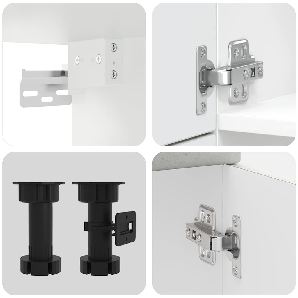 - Picioare reglabile: dulapurile inferioare sunt prevăzute cu picioare reglabile, care pot fi ajustate în înălțime pentru a se potrivi cu amenajarea bucătăriei dvs.