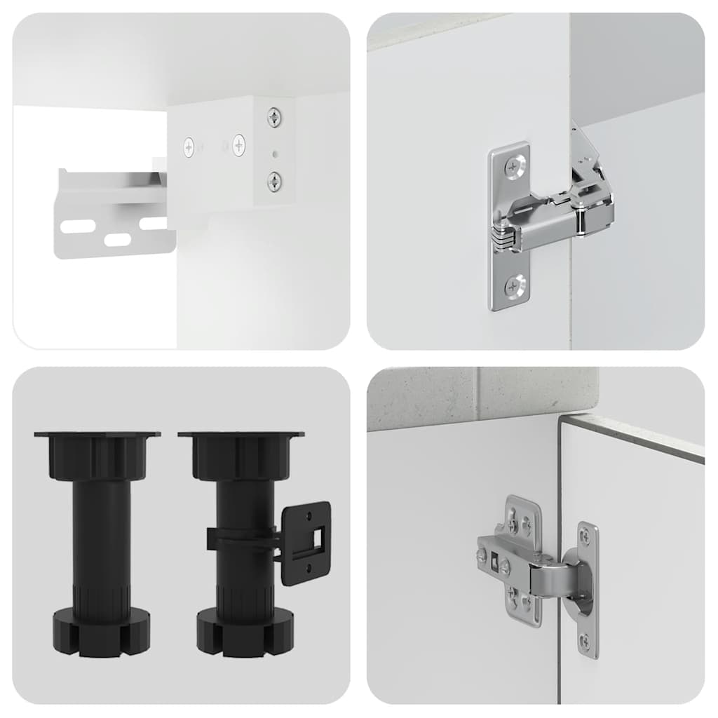 - Picioare reglabile: dulapurile inferioare sunt prevăzute cu picioare reglabile, care pot fi ajustate în înălțime pentru a se potrivi cu amenajarea bucătăriei dvs.