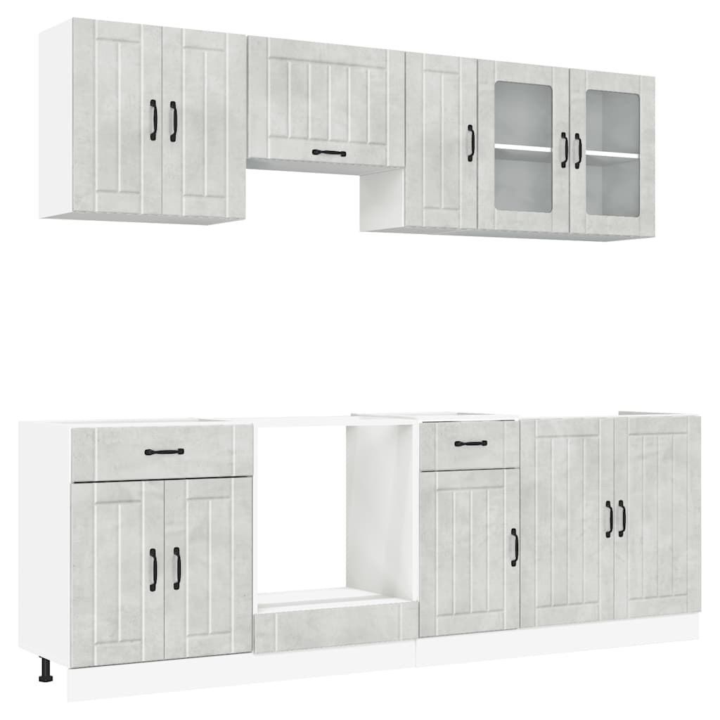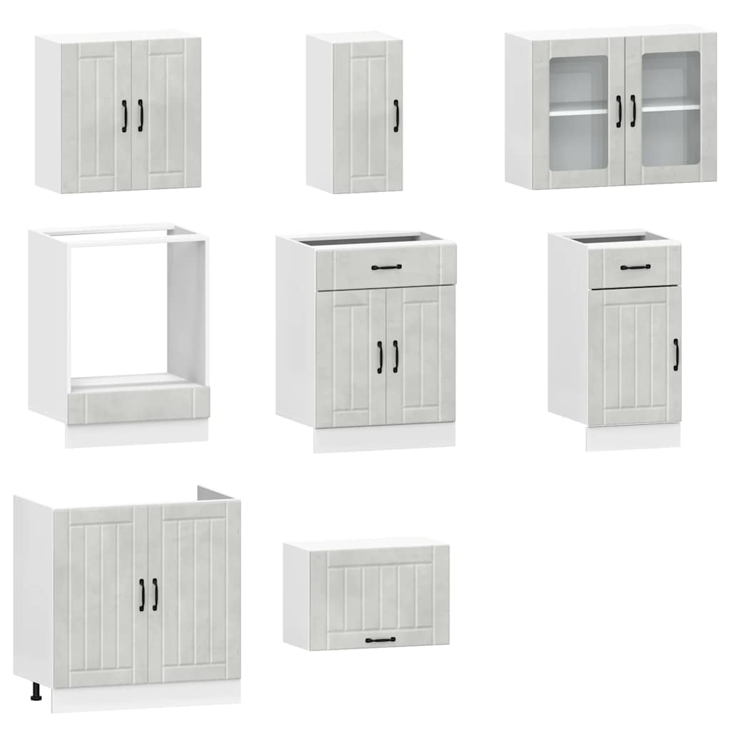 Set dulapuri de bucătărie 8 piese „Lucca” gri beton Lemn GartenMobel Dekor