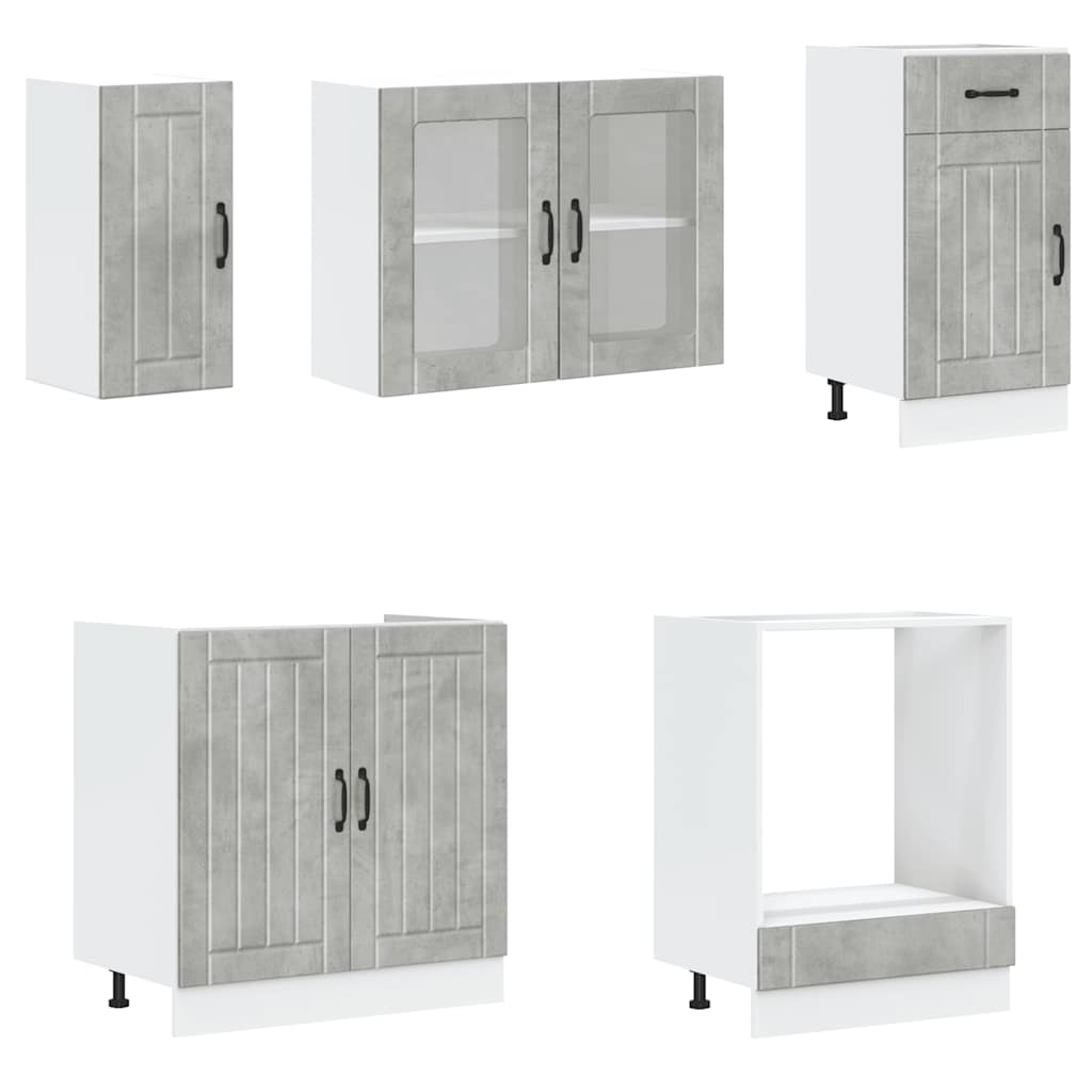 Set dulapuri de bucătărie 8 piese „Lucca” gri beton Lemn GartenMobel Dekor