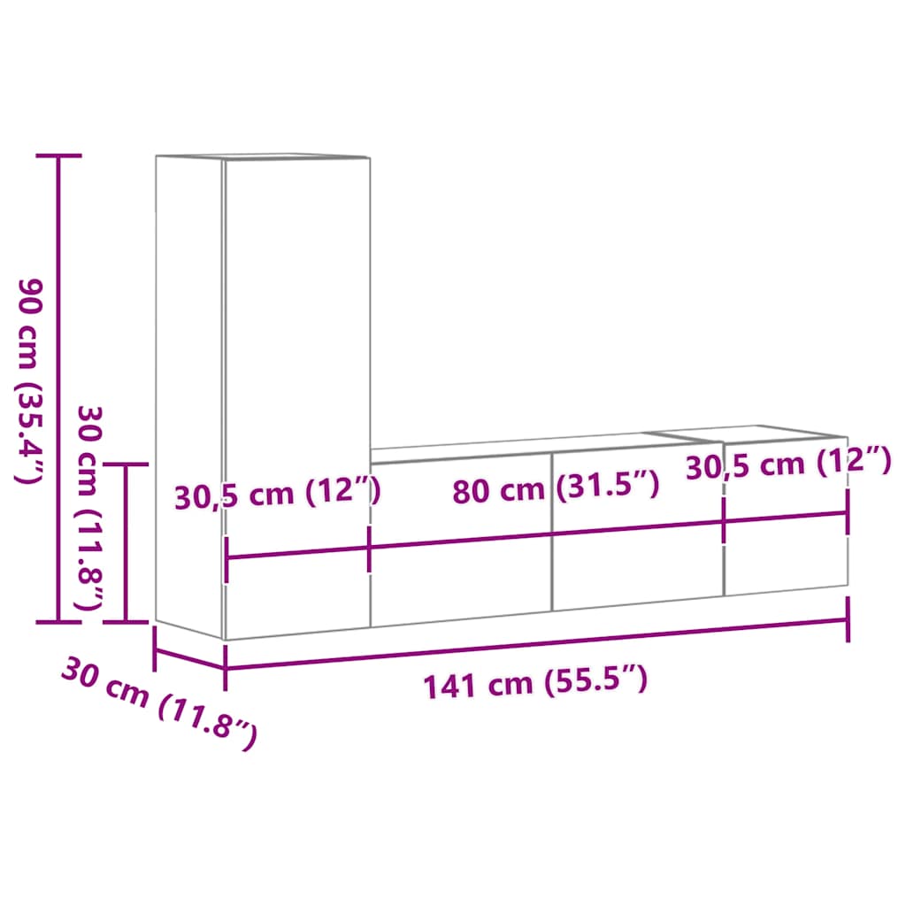 - 1 x Dulap TV: 30,5 x 30 x 90 cm (l x ad. x î)