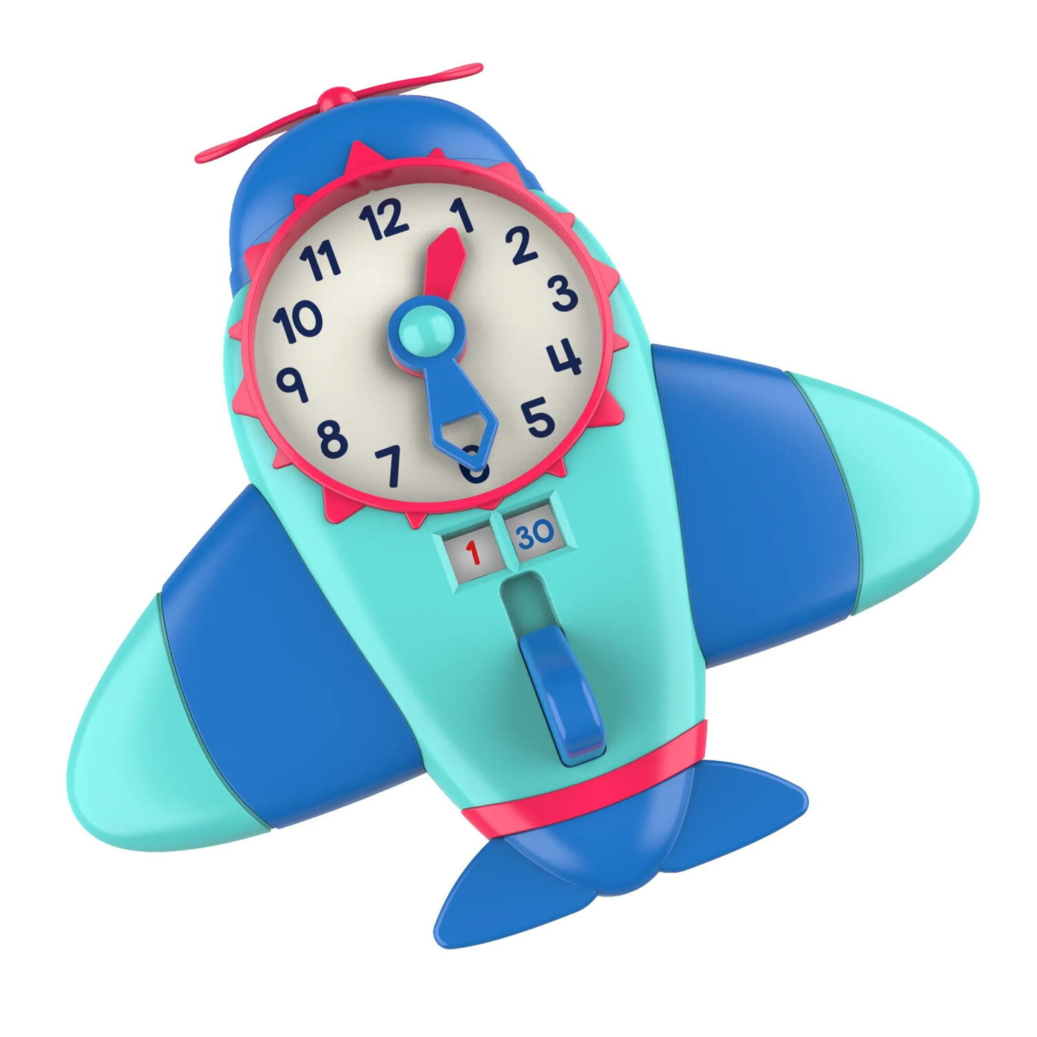 Transforma invatarea intr-o experienta placuta cu acest set educativ cu ceas pentru copii, creat special pentru a-i ajuta pe cei mici sa inteleaga mai usor notiunile de timp. Prin activitati interactive si joc, copiii invata sa asocieze momentele importante ale zilei cu afisarea orei in format analogic si digital. Designul in forma de avion face produsul si mai atractiv, stimuland curiozitatea si dorinta de explorare.