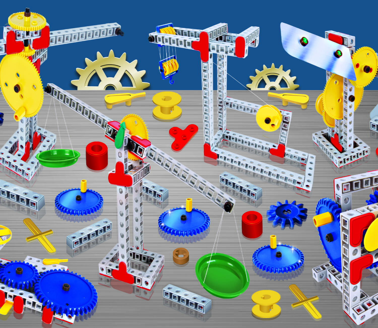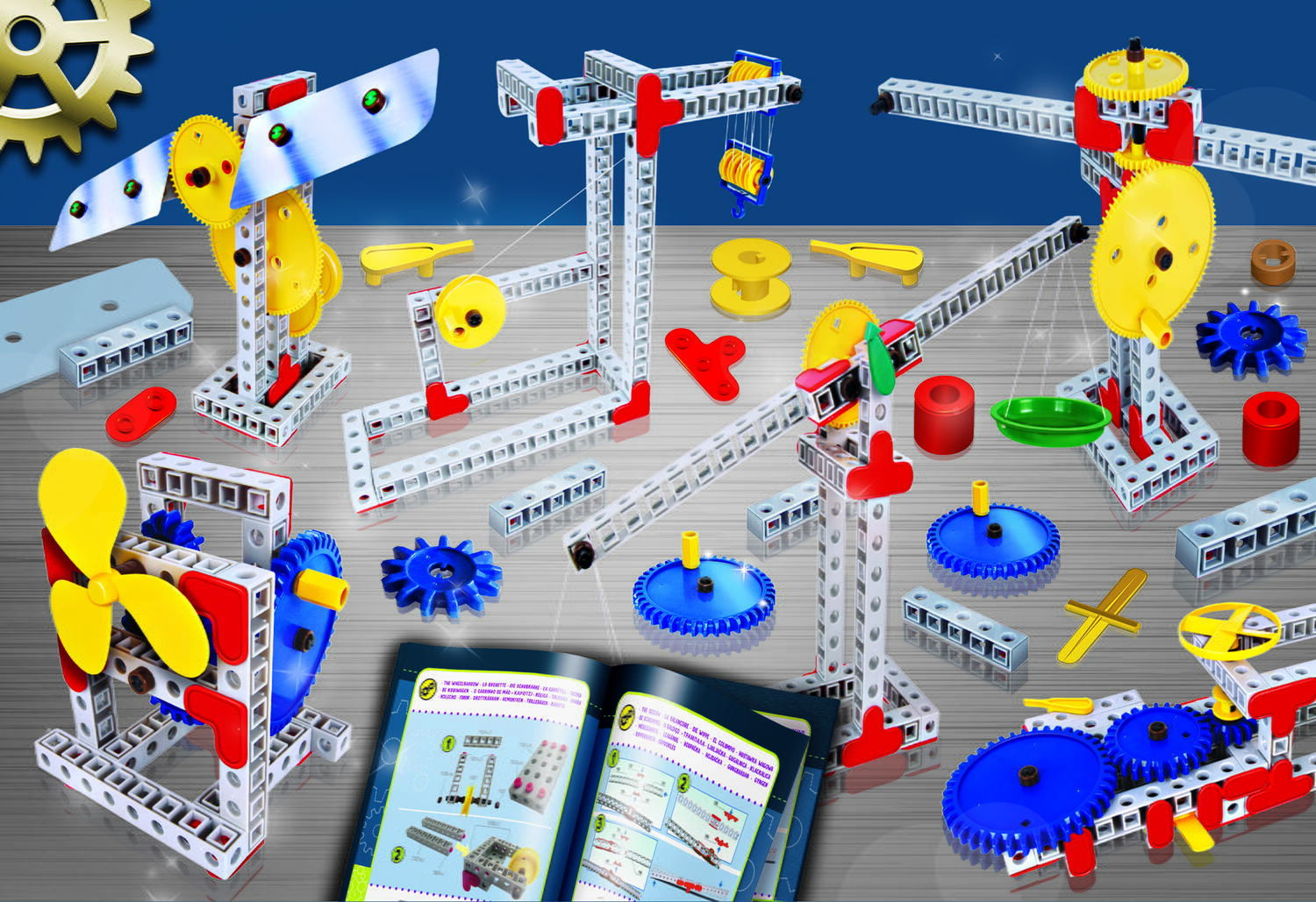 Cu ajutorul pieselor incluse, cei mici pot construi diferite mecanisme si pot descoperi cum functioneaza parghiile, scripetele, rotitele dintate, centrifuga sau elicele. Este o alegere excelenta pentru acasa, pentru activitati in familie sau pentru completarea invatarii la scoala.