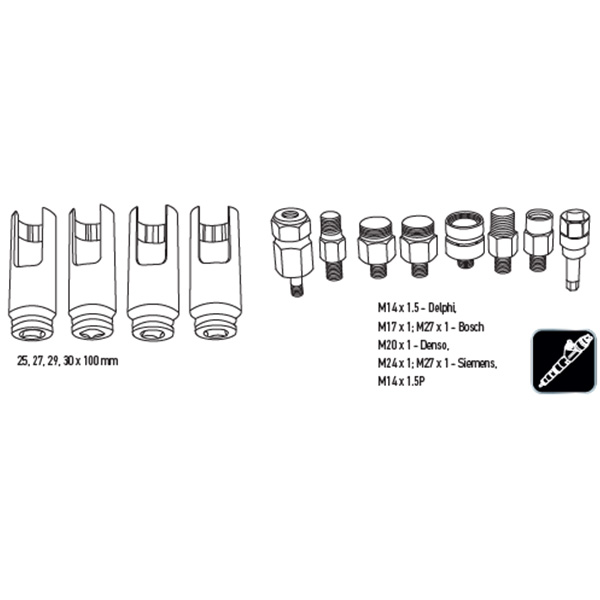 - 4 tubulare lungi cu fereastra de vizitare necesare pentru repararea injectoarelor sau pentru montarea extractoarelor pentru injectoare: 25, 27, 29, 30 x 100 mm