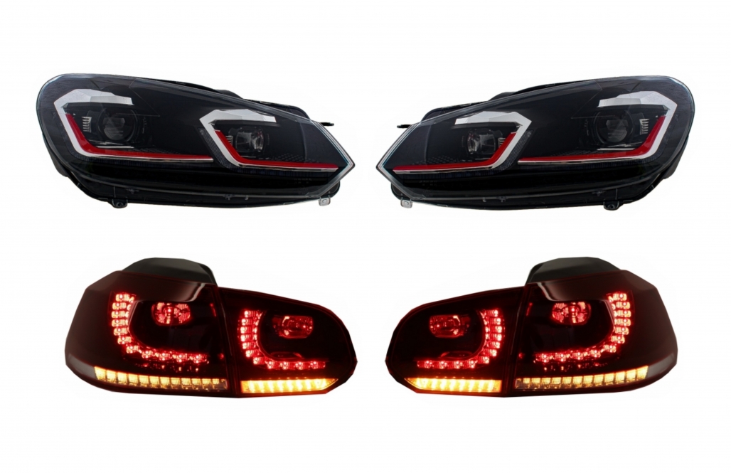 Set faruri si stopuri LED pentru VW Golf 6 (2008-2013) GTI Design rosu