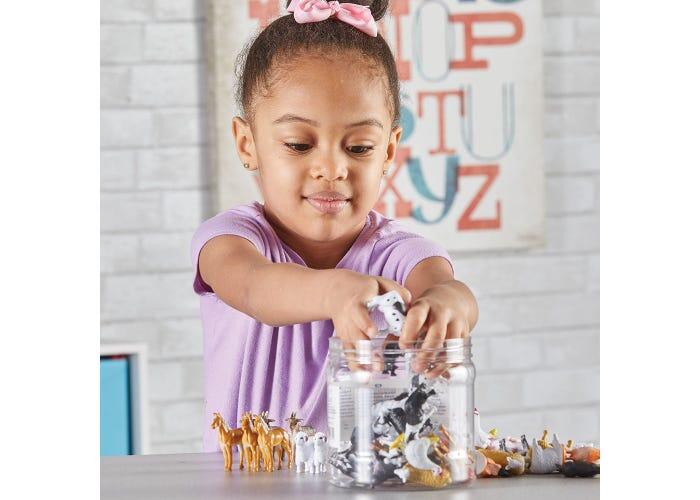Transforma joaca intr-o experienta de invatare cu acest set figurine animale de ferma, perfect pentru activitati de sortare, numarat si recunoasterea animalelor domestice. Figurinele au detalii realiste si sunt usor de manevrat de catre cei mici, incurajand dezvoltarea atentiei, a motricitatii fine si a imaginatiei prin jocuri educative si de rol.