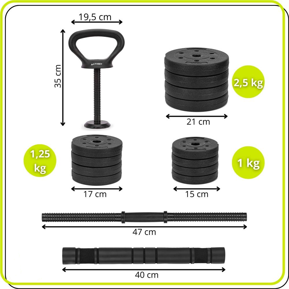 Descriere Set gantere, bara kettlebell ajustabil 30