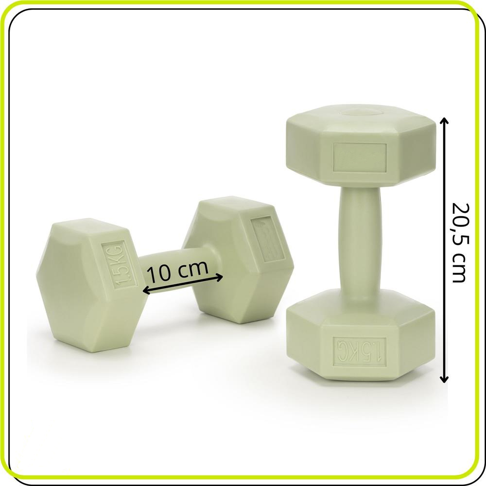 Set gantere hexagonale 2 x 1,5 kg, invelis PP rezistent, verde