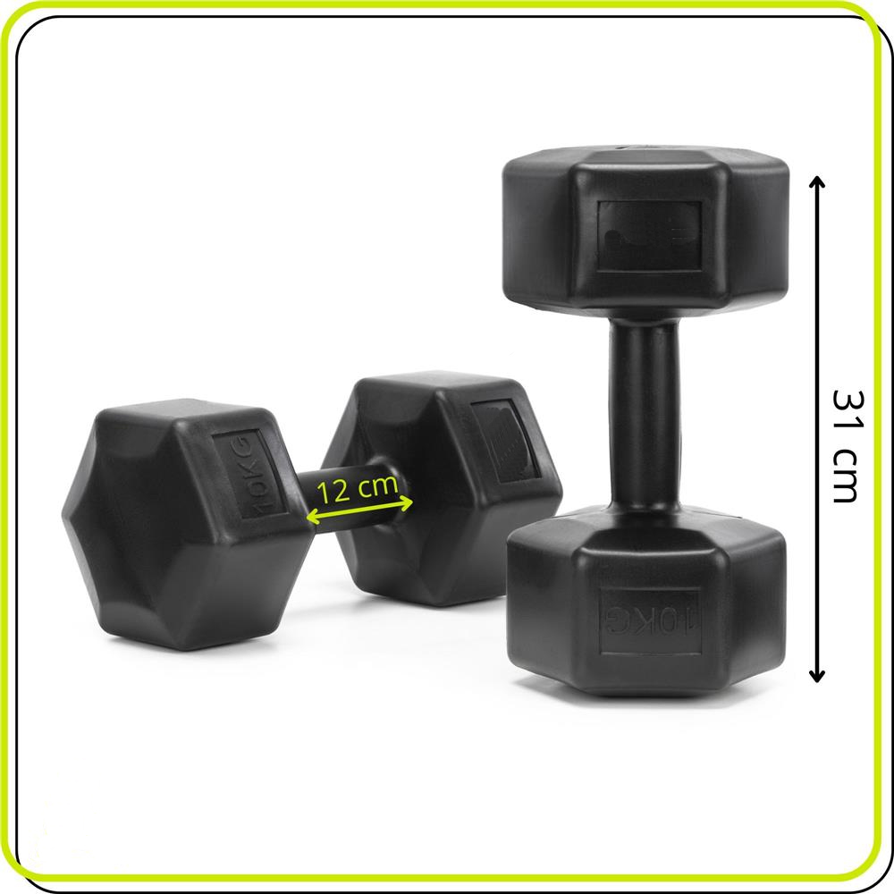 Set gantere hexagonale 2x10 kg cu invelis PP rezistent, negre