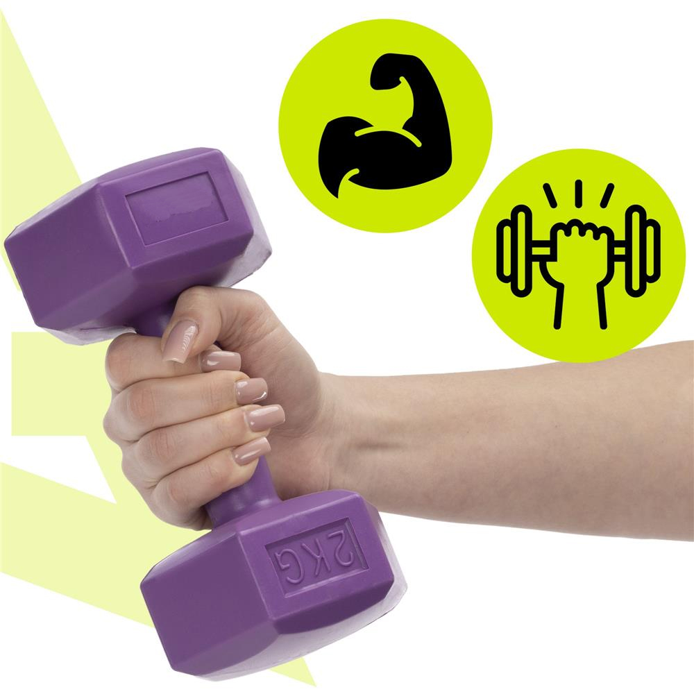 Set gantere hexagonale 2x2 kg mov, cu invelis PP rezistent