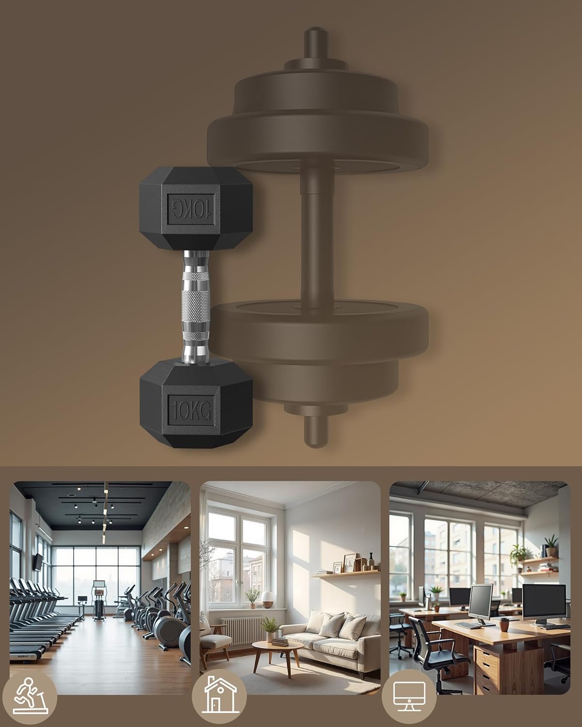 Alege acest set de gantere hexagonale 2x10 kg de la SONGMICS pentru antrenamente eficiente de fitness si forta, fie acasa, fie la sala. Designul hexagonal ajuta la prevenirea rostogolirii, iar manerul metalic striat ofera o priza sigura si confortabila in timpul exercitiilor. Invelisul din cauciuc contribuie la protejarea pardoselii si la reducerea zgomotului la contactul cu solul.