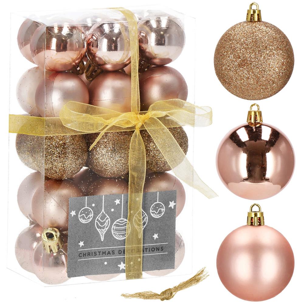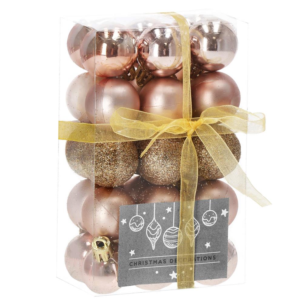 Set globuri de Craciun, 30 bucati, 3 modele, 3cm, roz auriu Household NewTrend