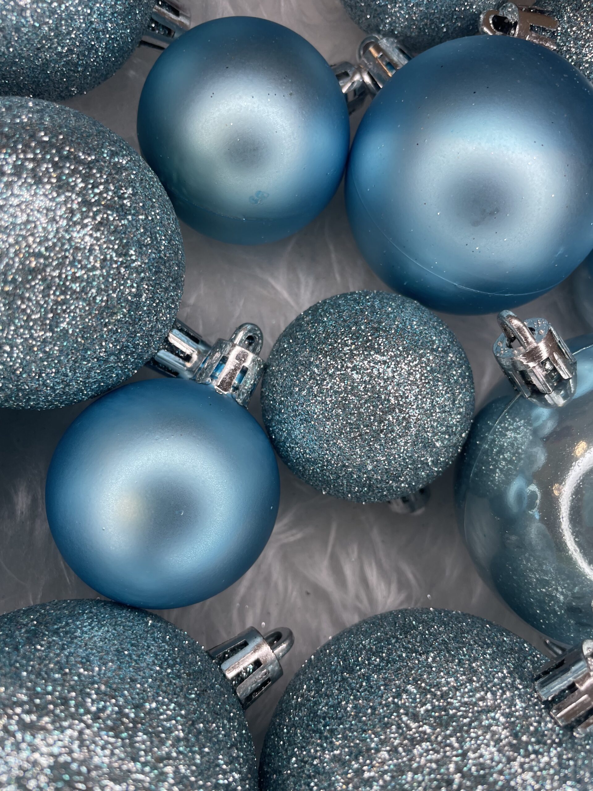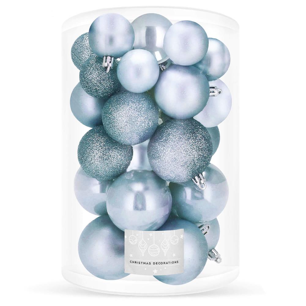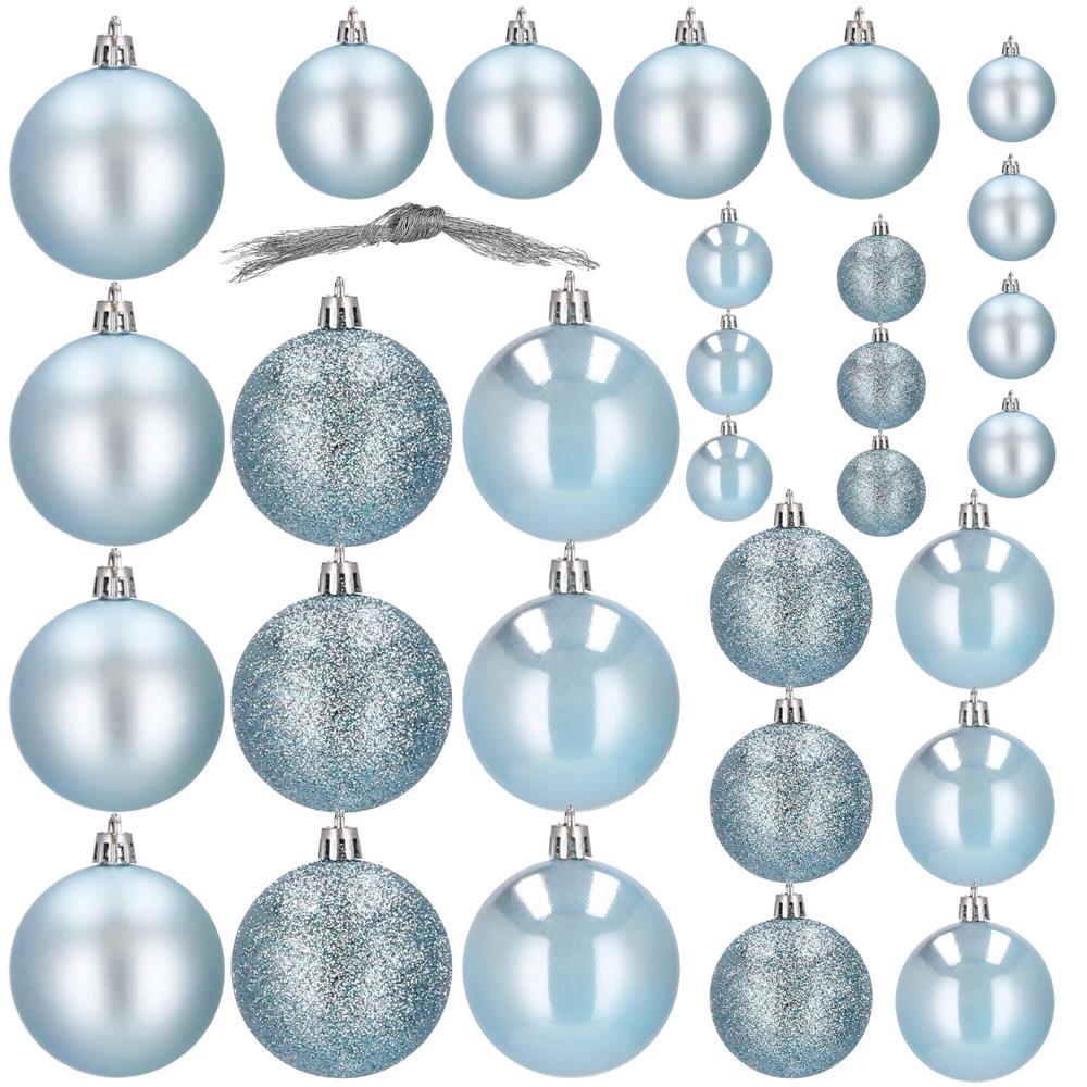 Set globuri de Craciun, 30 bucati, 3 modele, 4/5/6cm, albastru deschis Household NewTrend