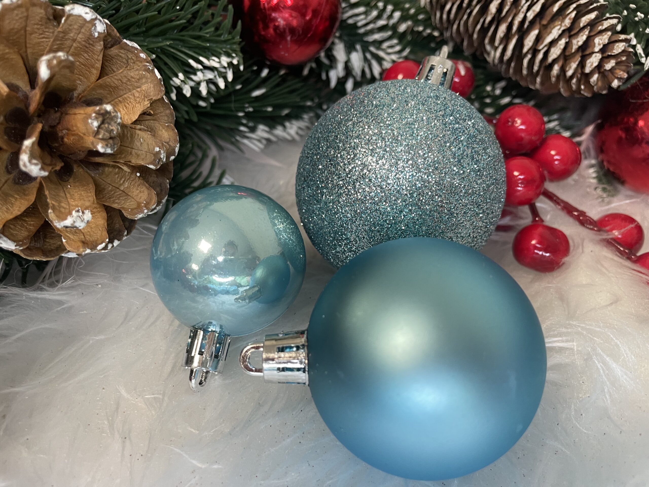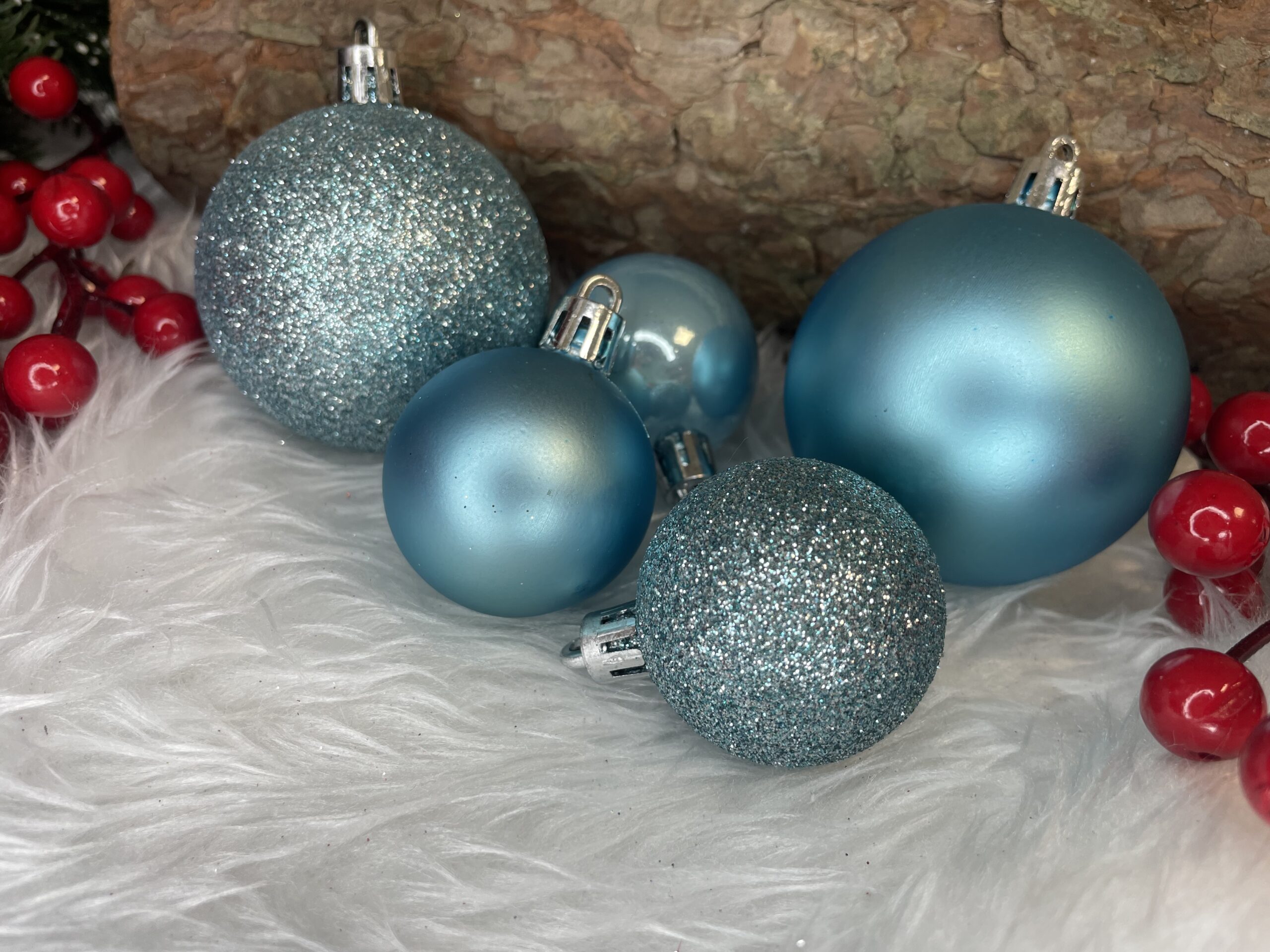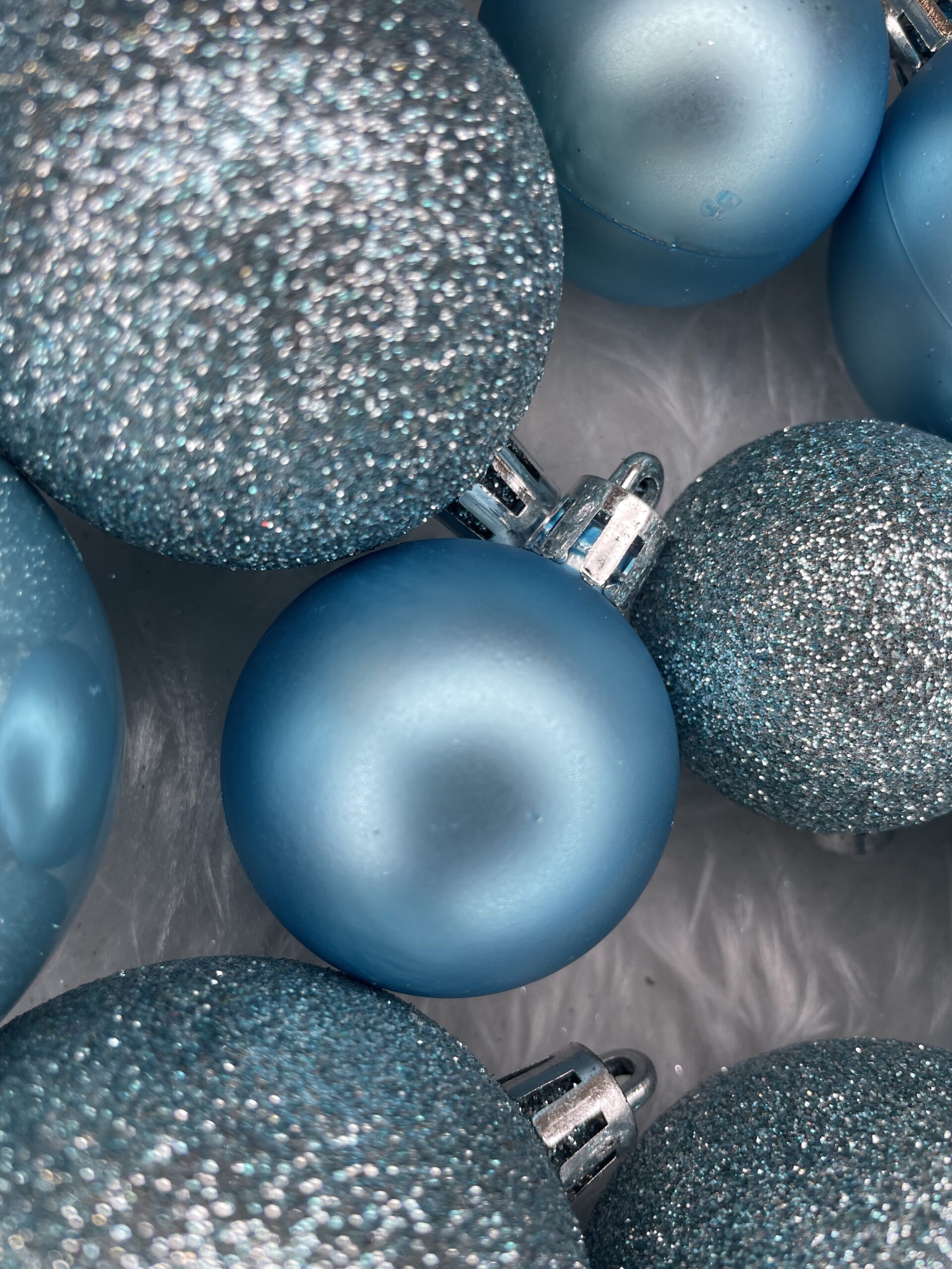 Set globuri de Craciun, 30 bucati, 3 modele, 4/5/6cm, albastru deschis Household NewTrend