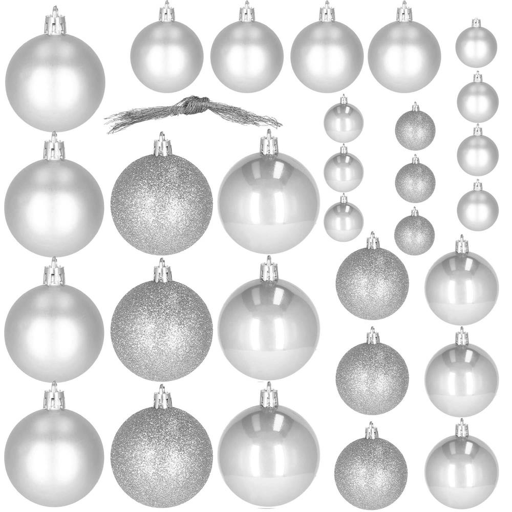 Set globuri de Craciun, 30 bucati, 3 modele, 4/5/6cm, argintiu Household NewTrend