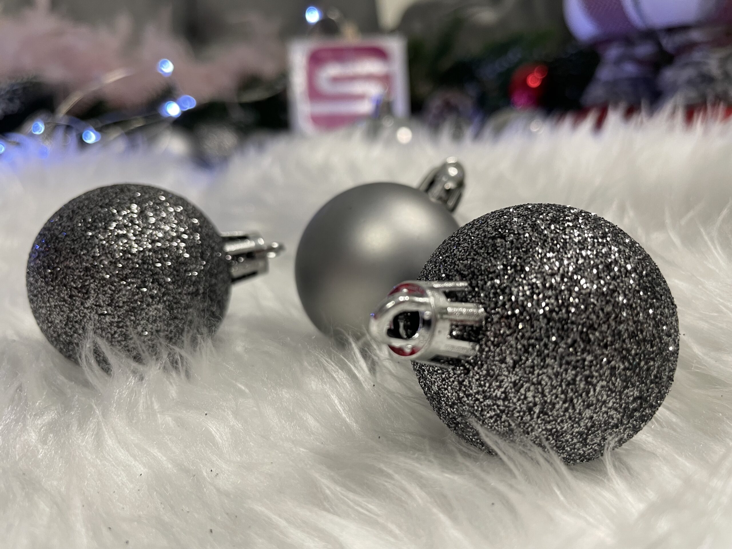 Set globuri de Craciun, 30 bucati, 3 modele, 4/5/6cm, gri argintiu Household NewTrend