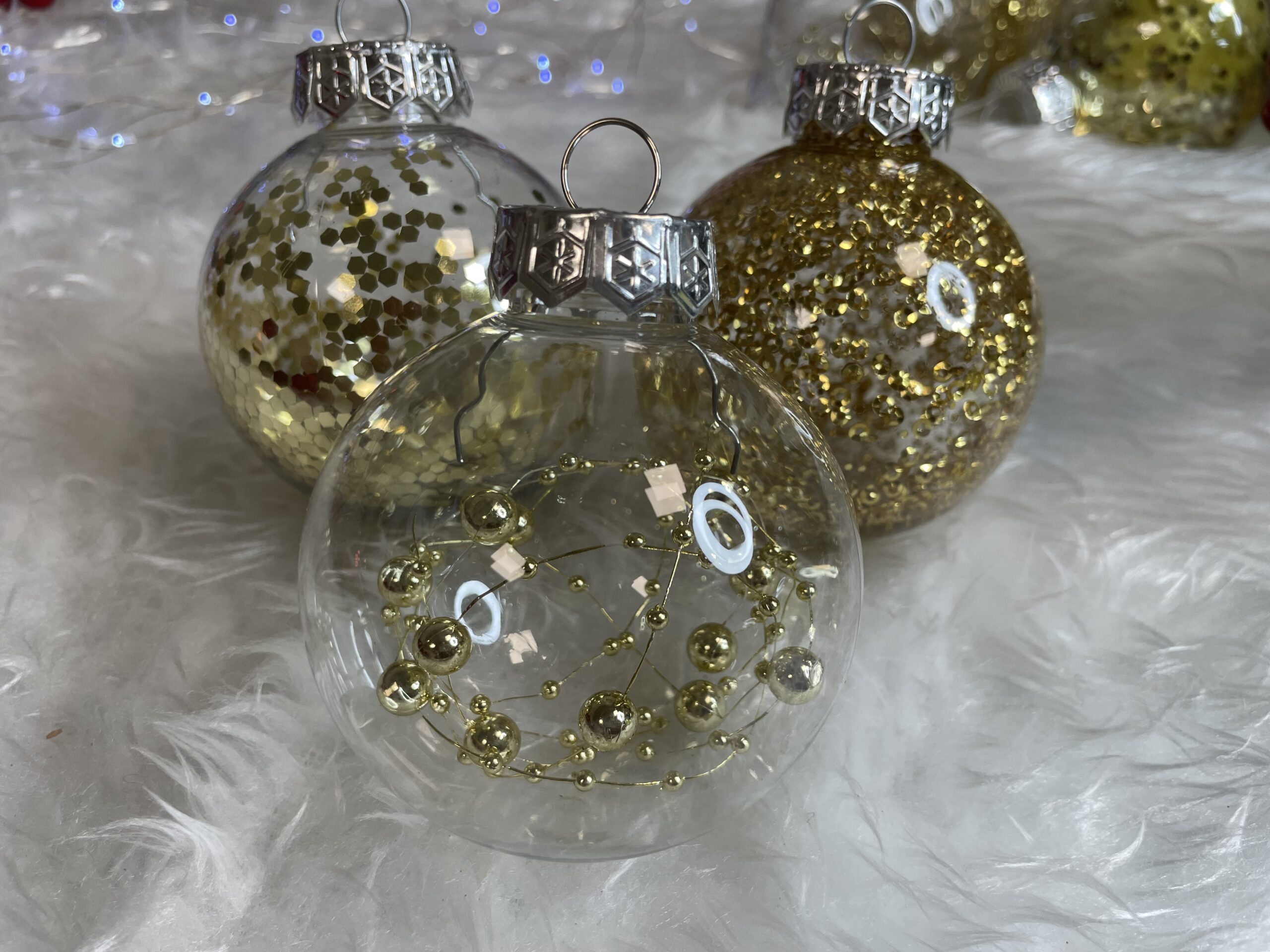 Set globuri de Crăciun 30 bucăți, 7 cm, transparente și aurii, incasabile