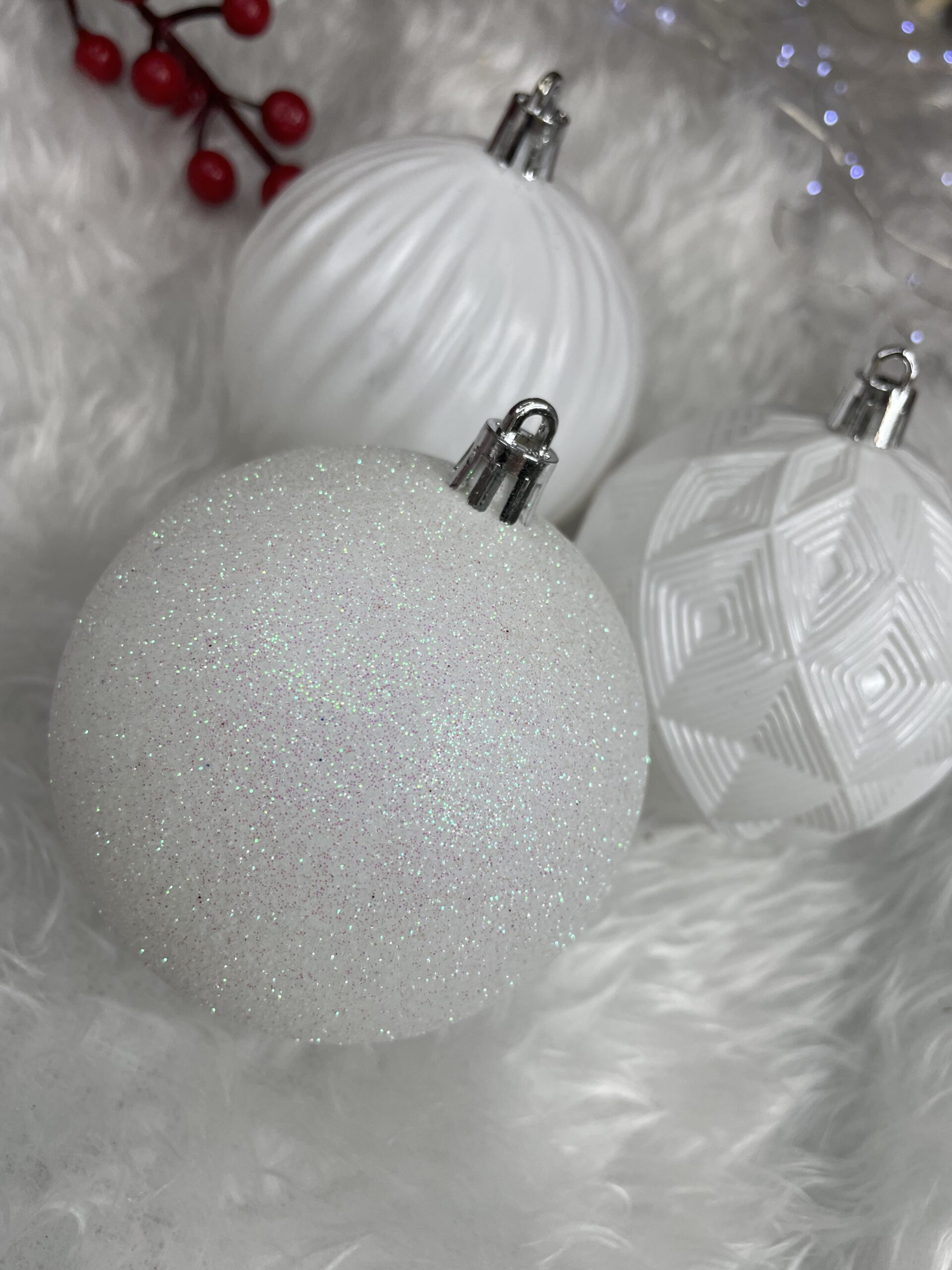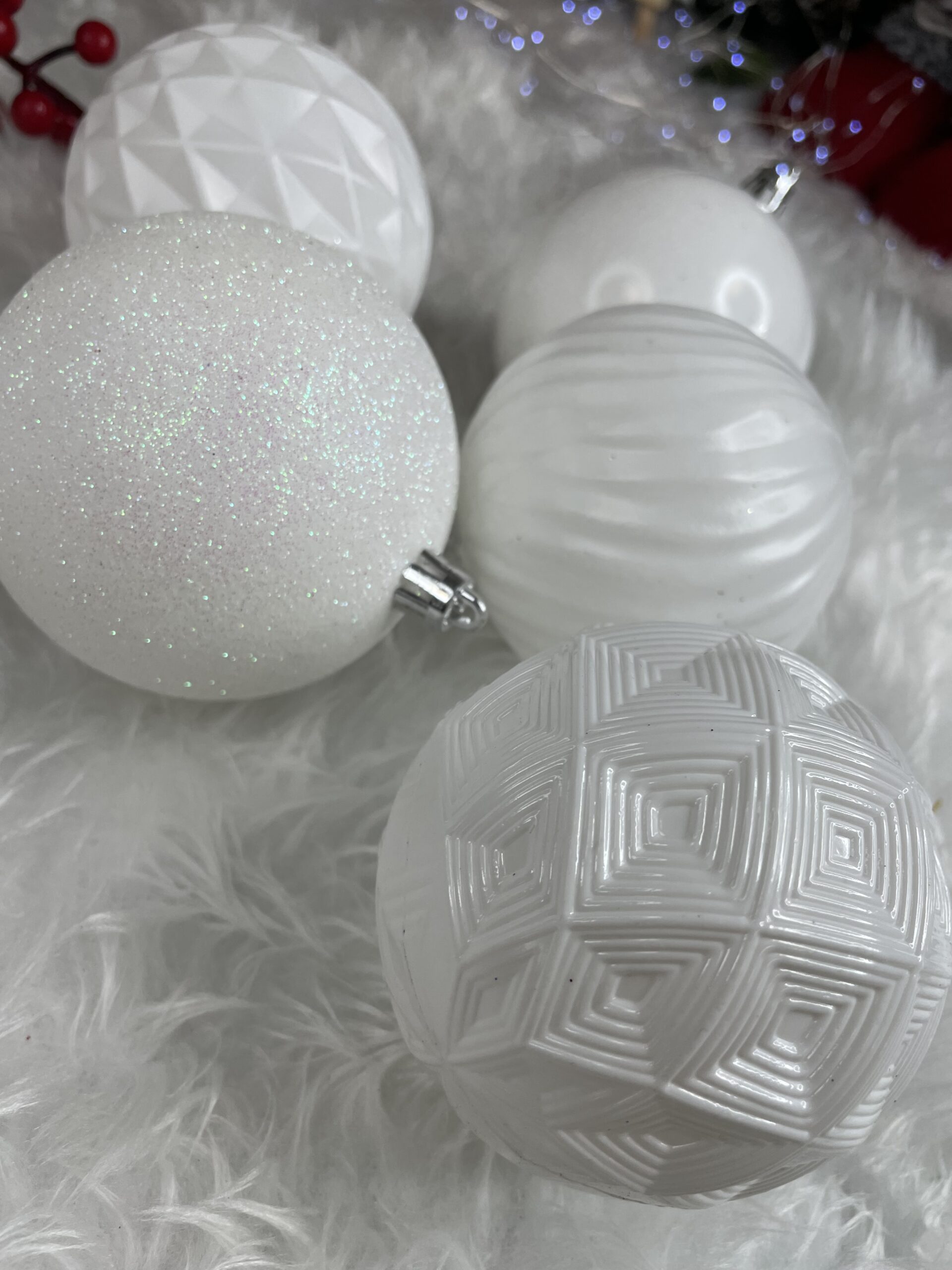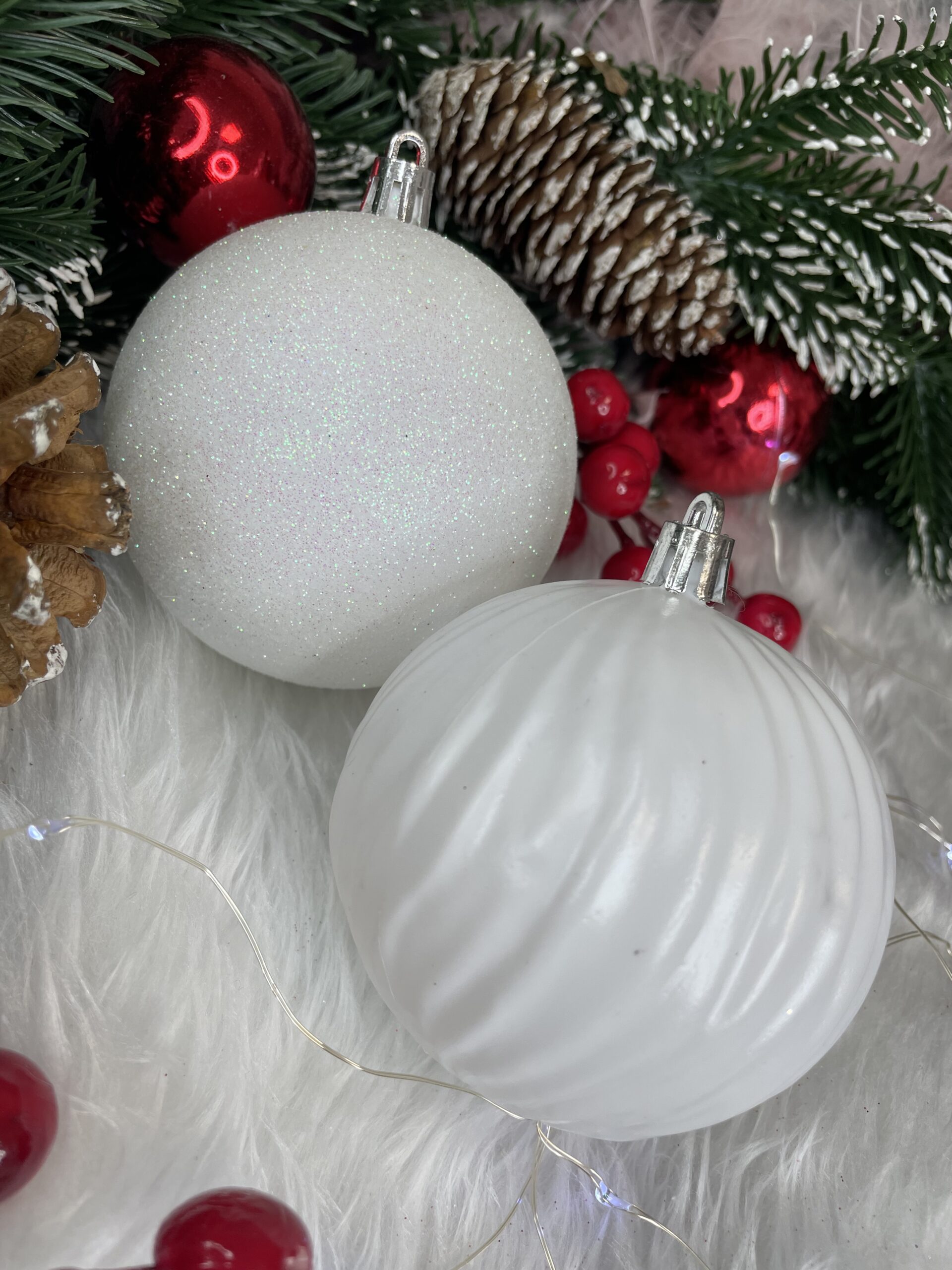 Set globuri de Craciun, 30 bucati, 8cm, 6 modele, alb Household NewTrend