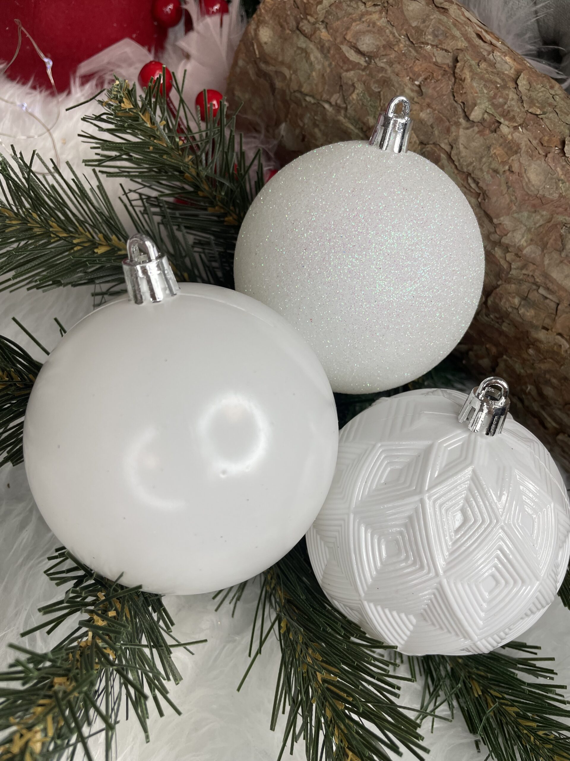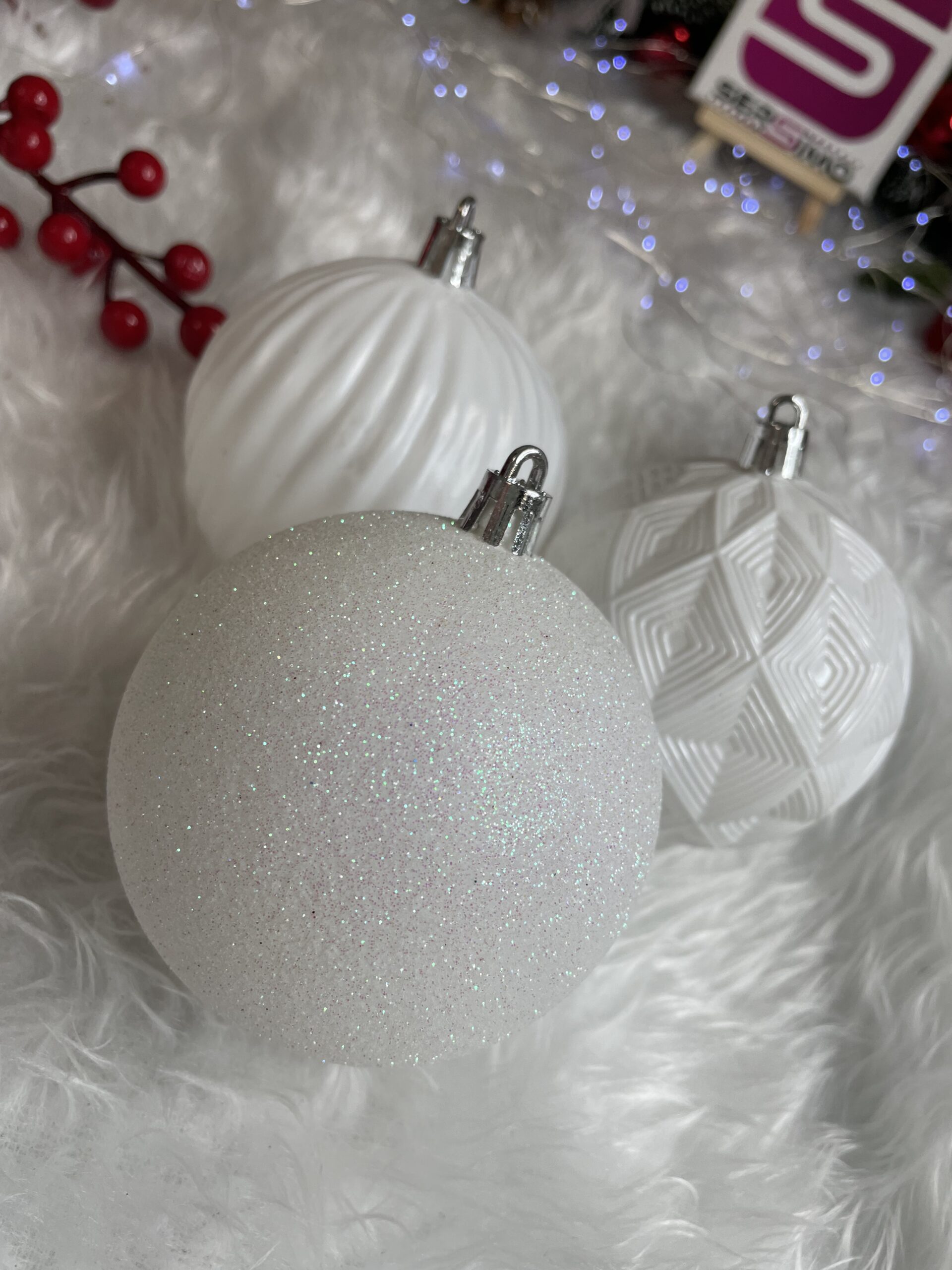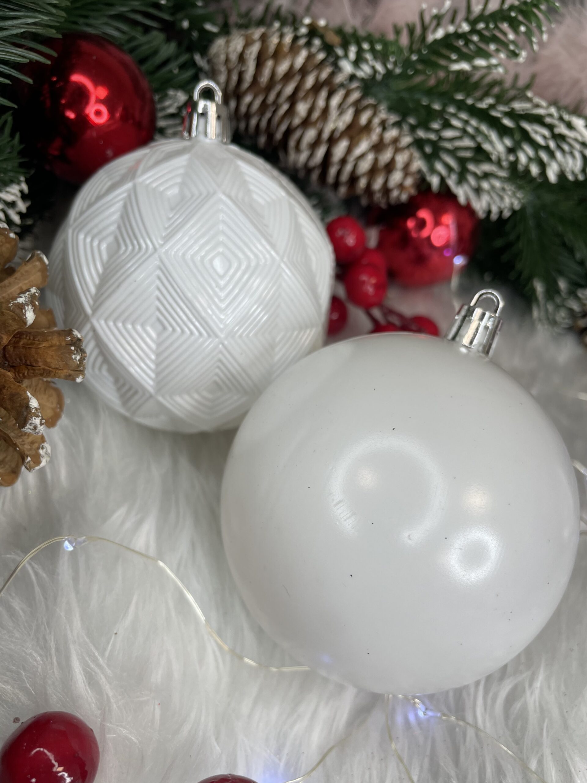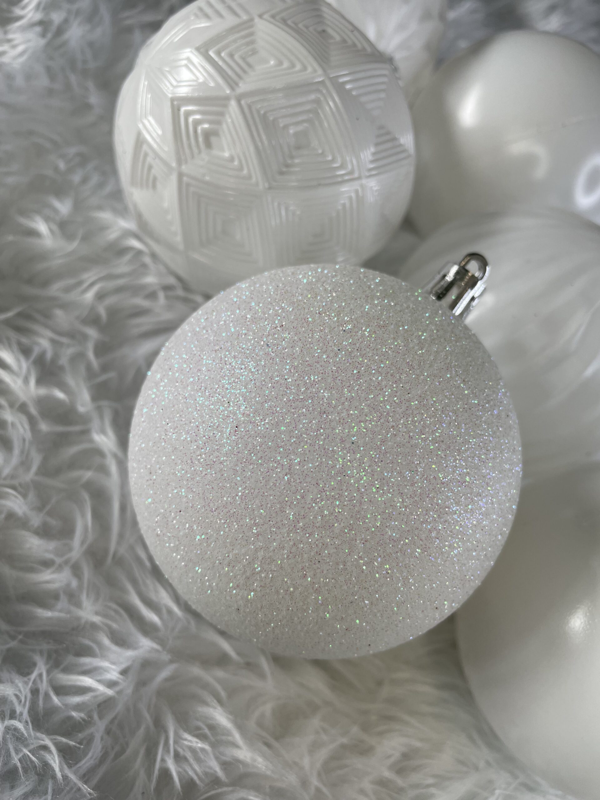 Set globuri de Craciun, 30 bucati, 8cm, 6 modele, alb Household NewTrend