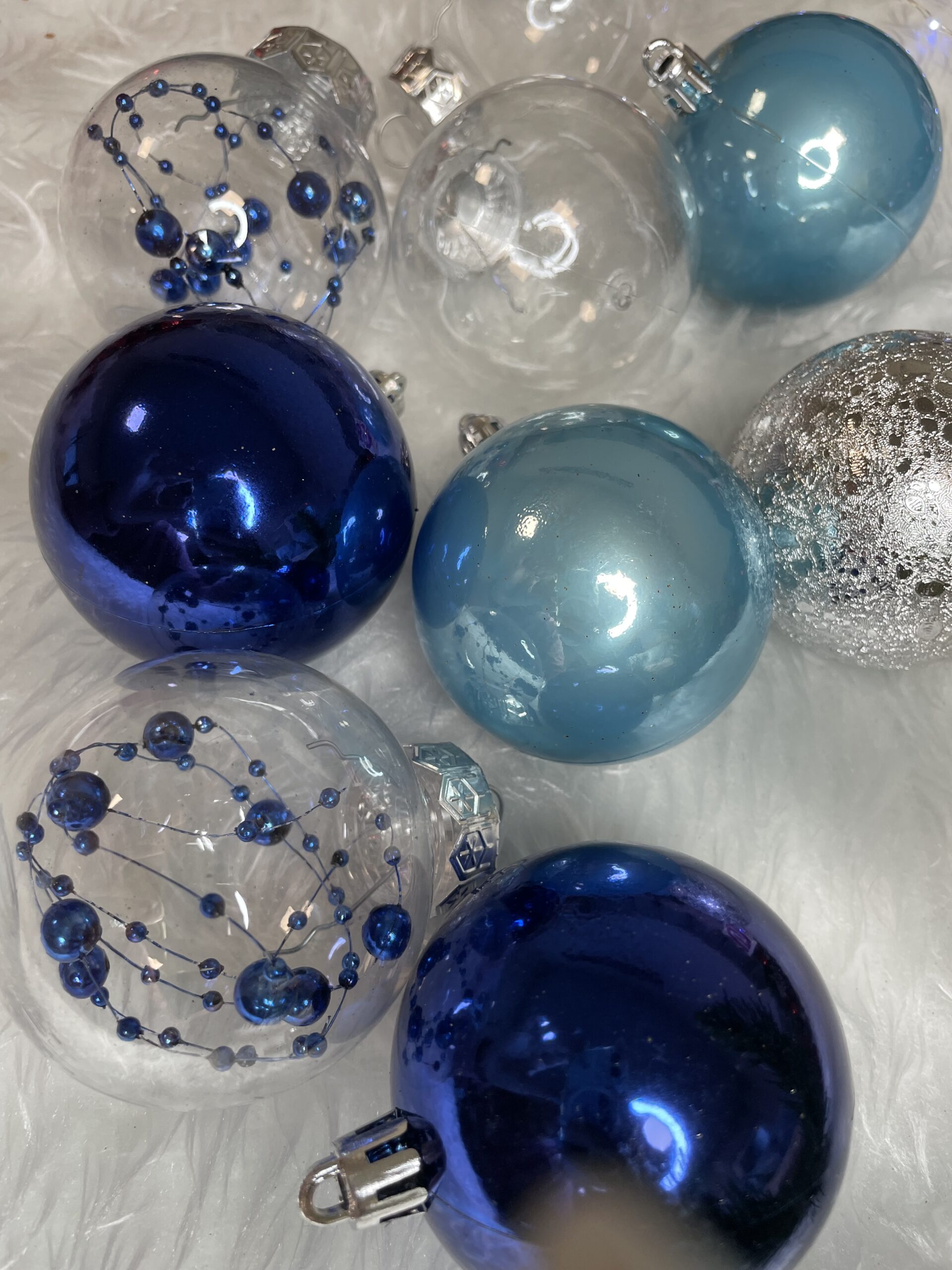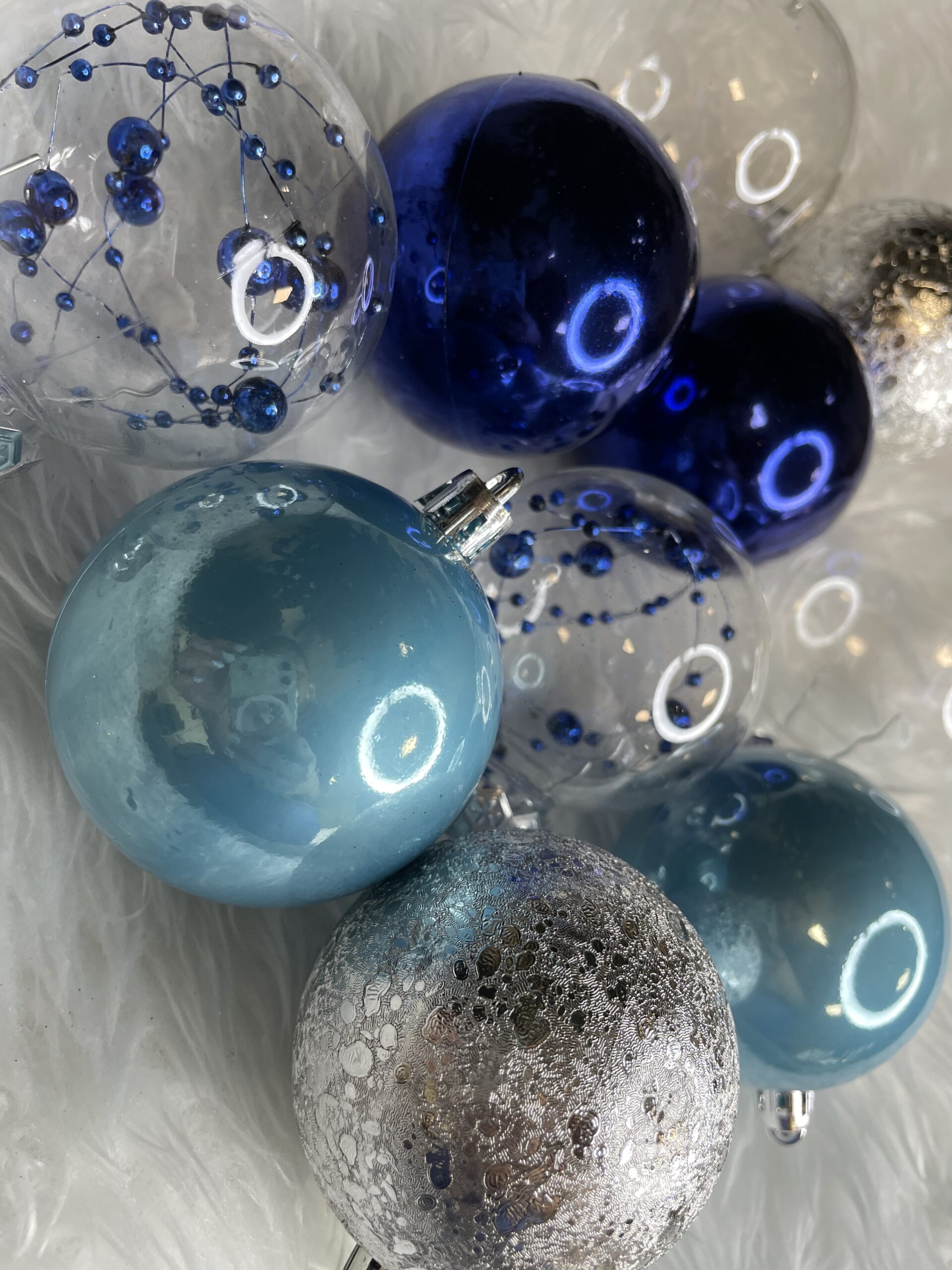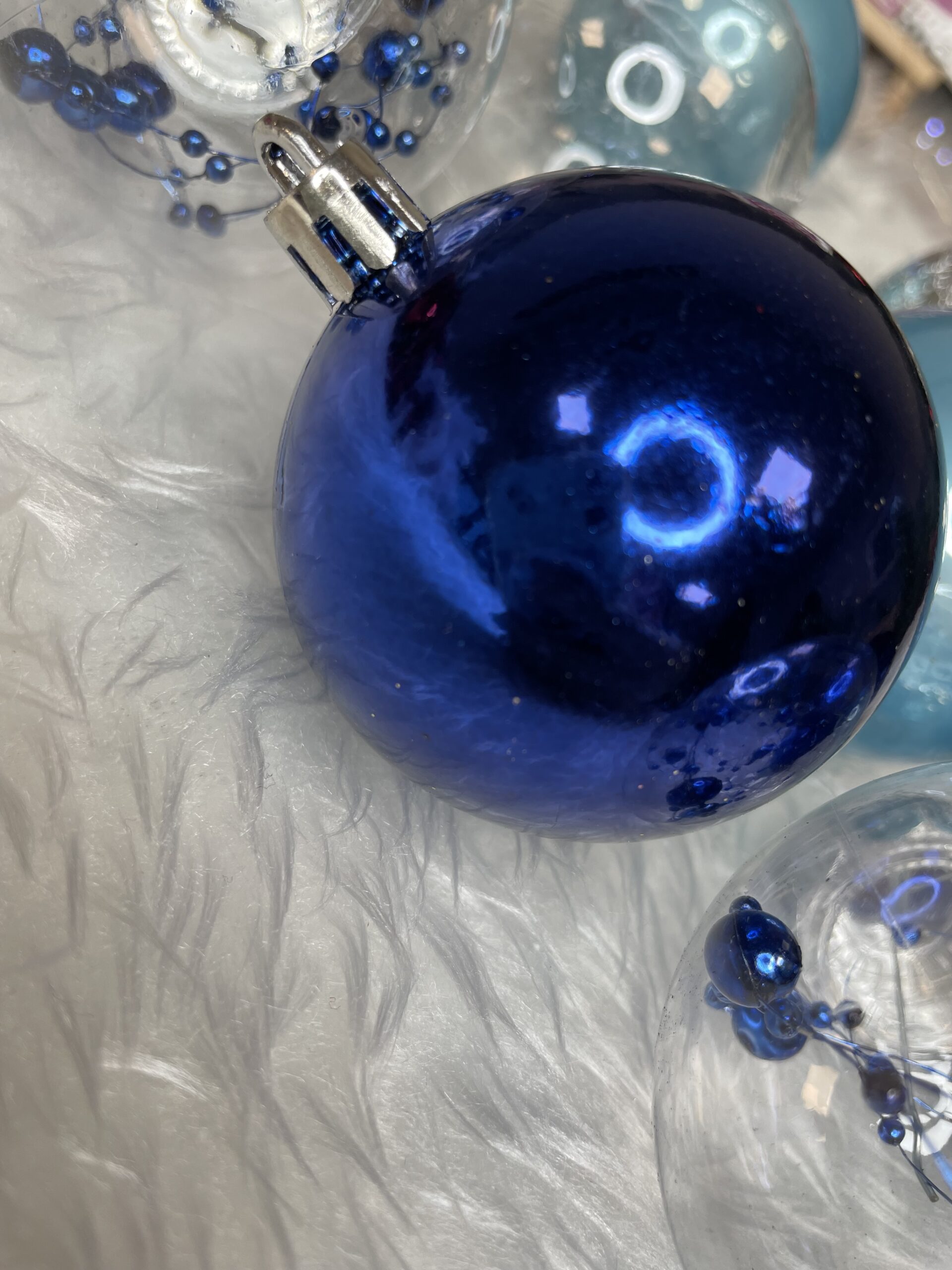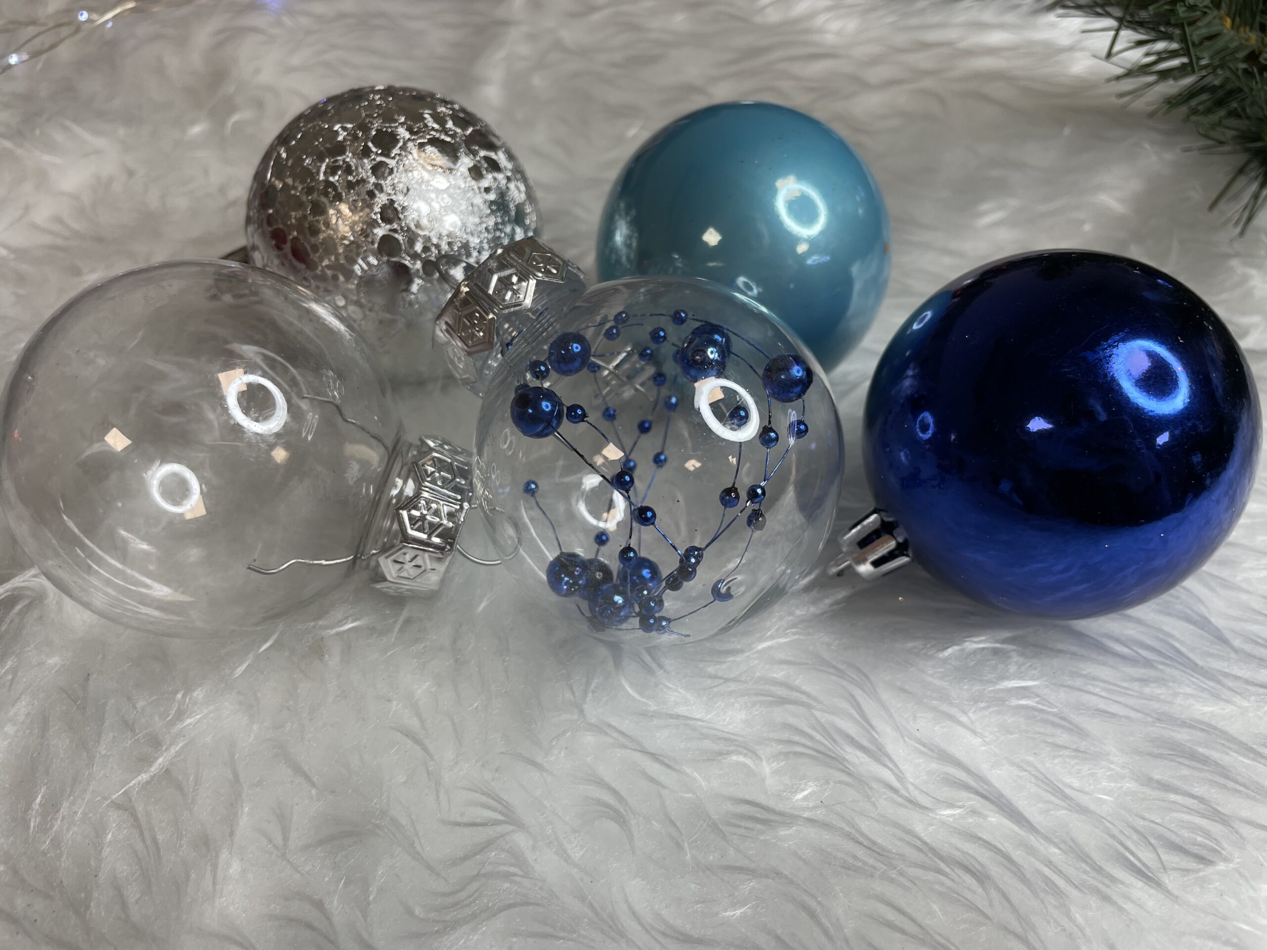 Set globuri de Craciun 30 piese, 6 cm, transparente si albastre