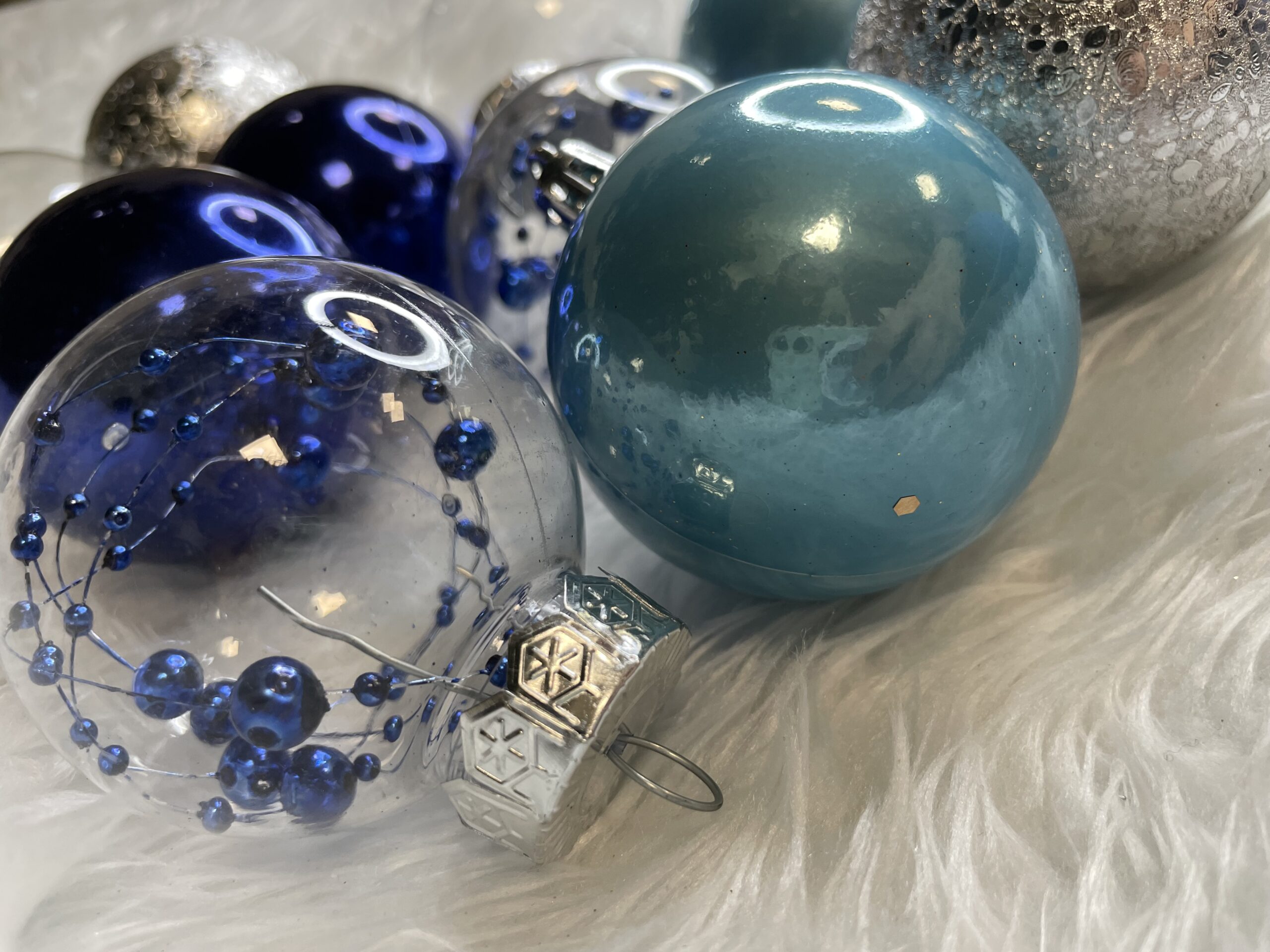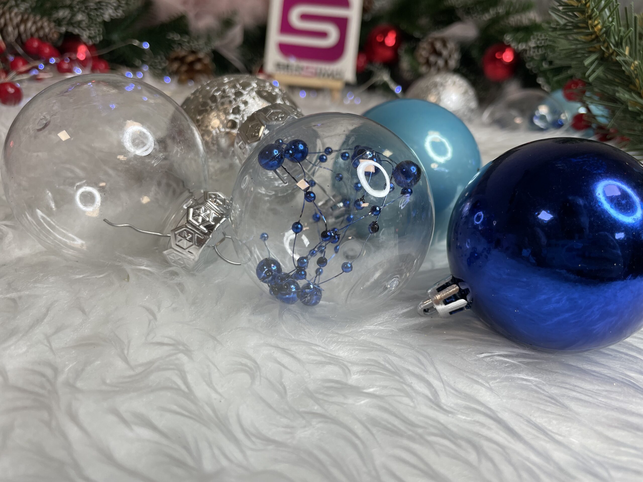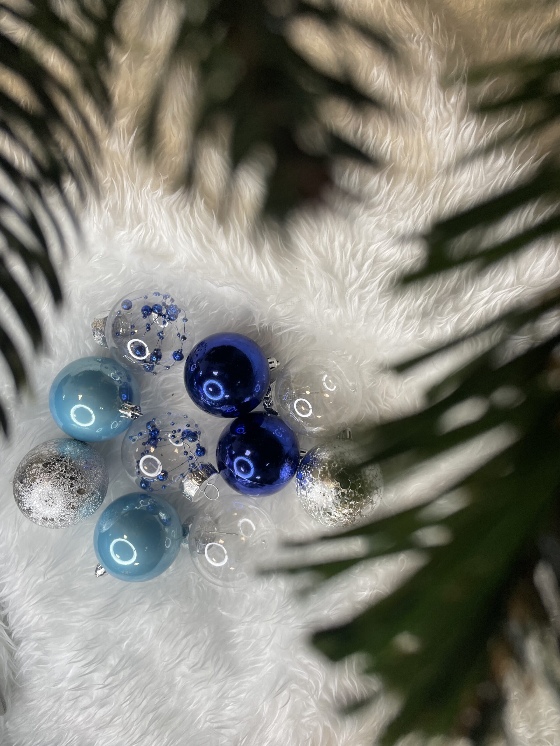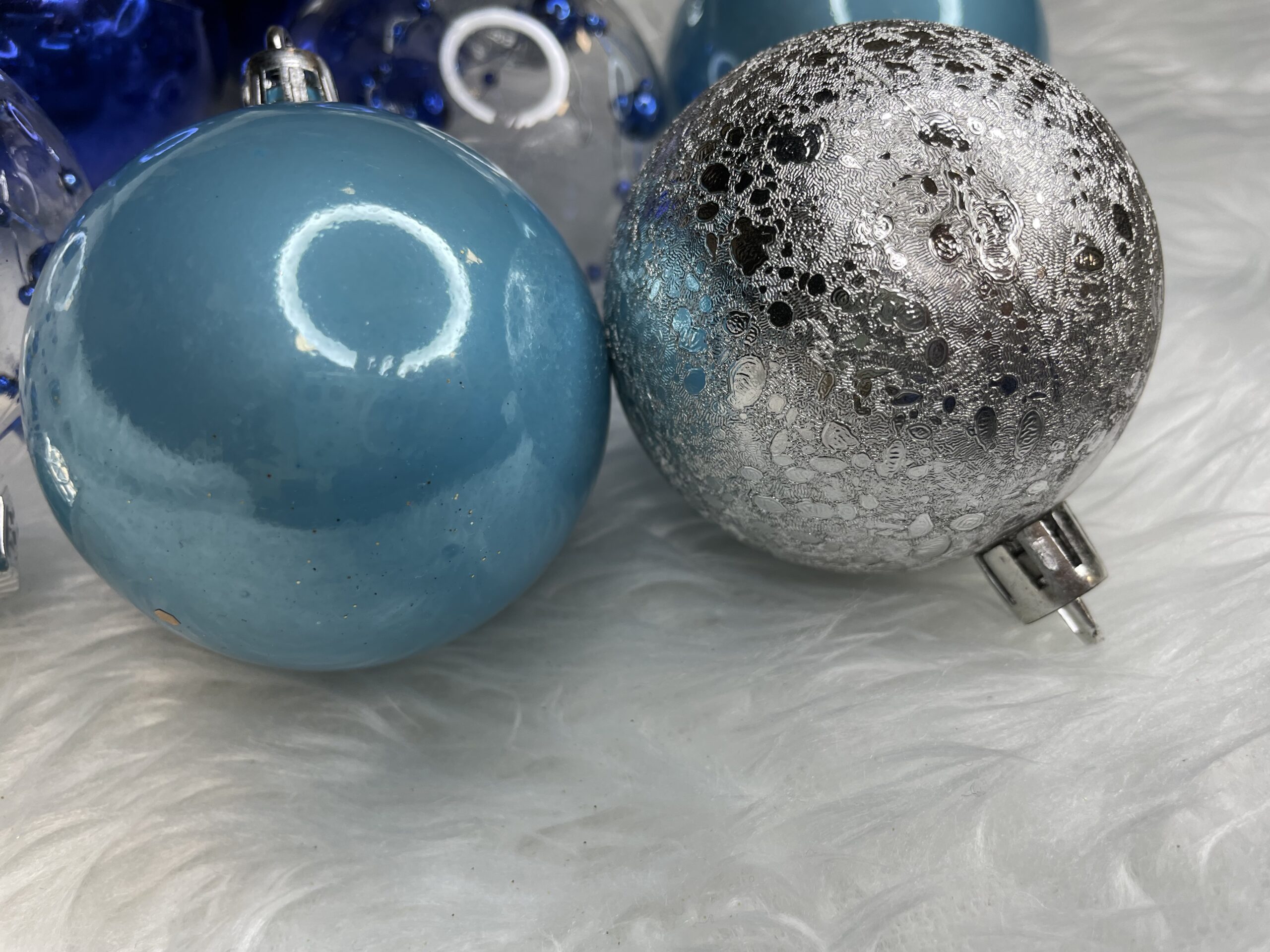 Set globuri de Craciun 30 piese, 6 cm, transparente si albastre