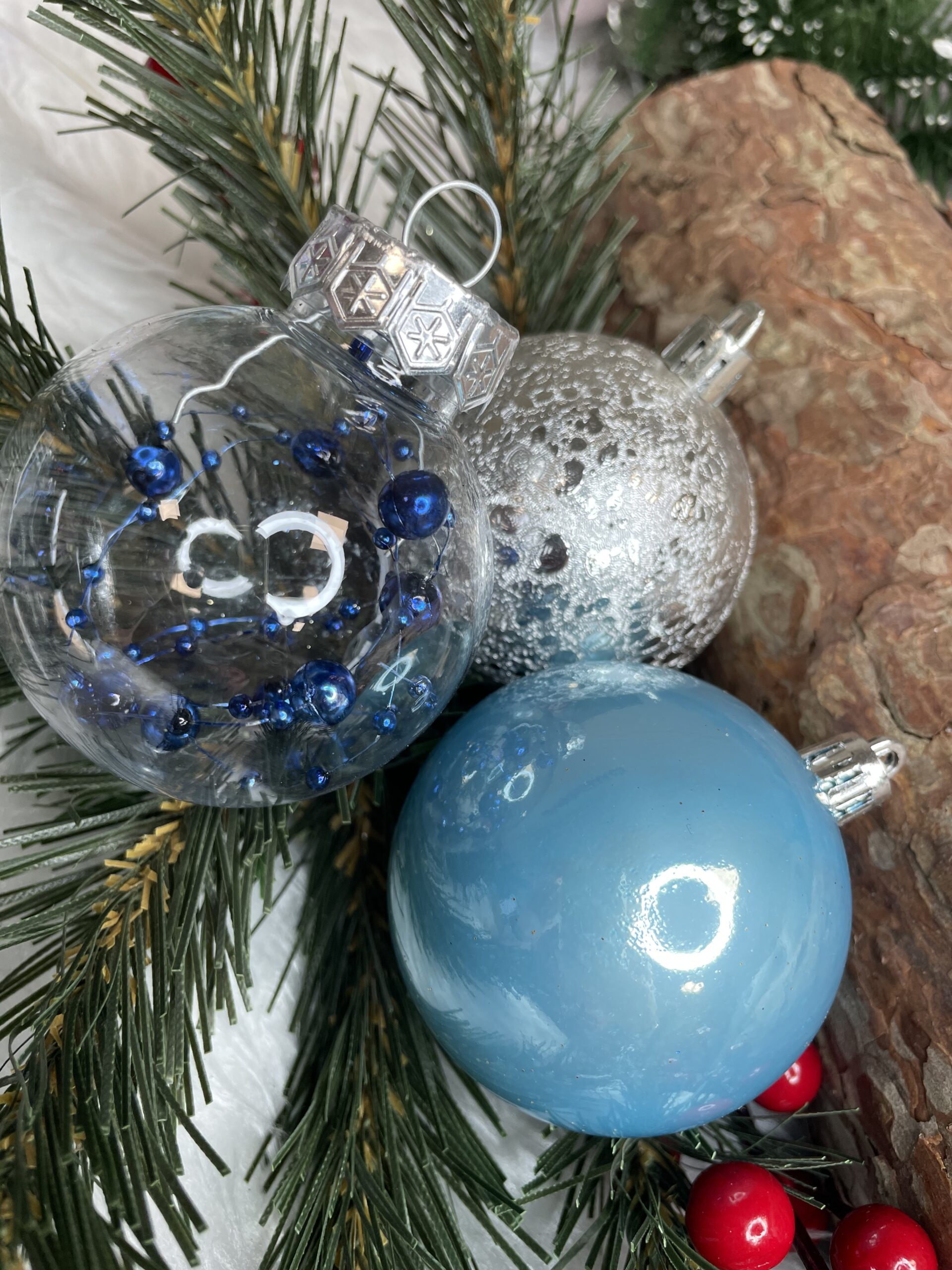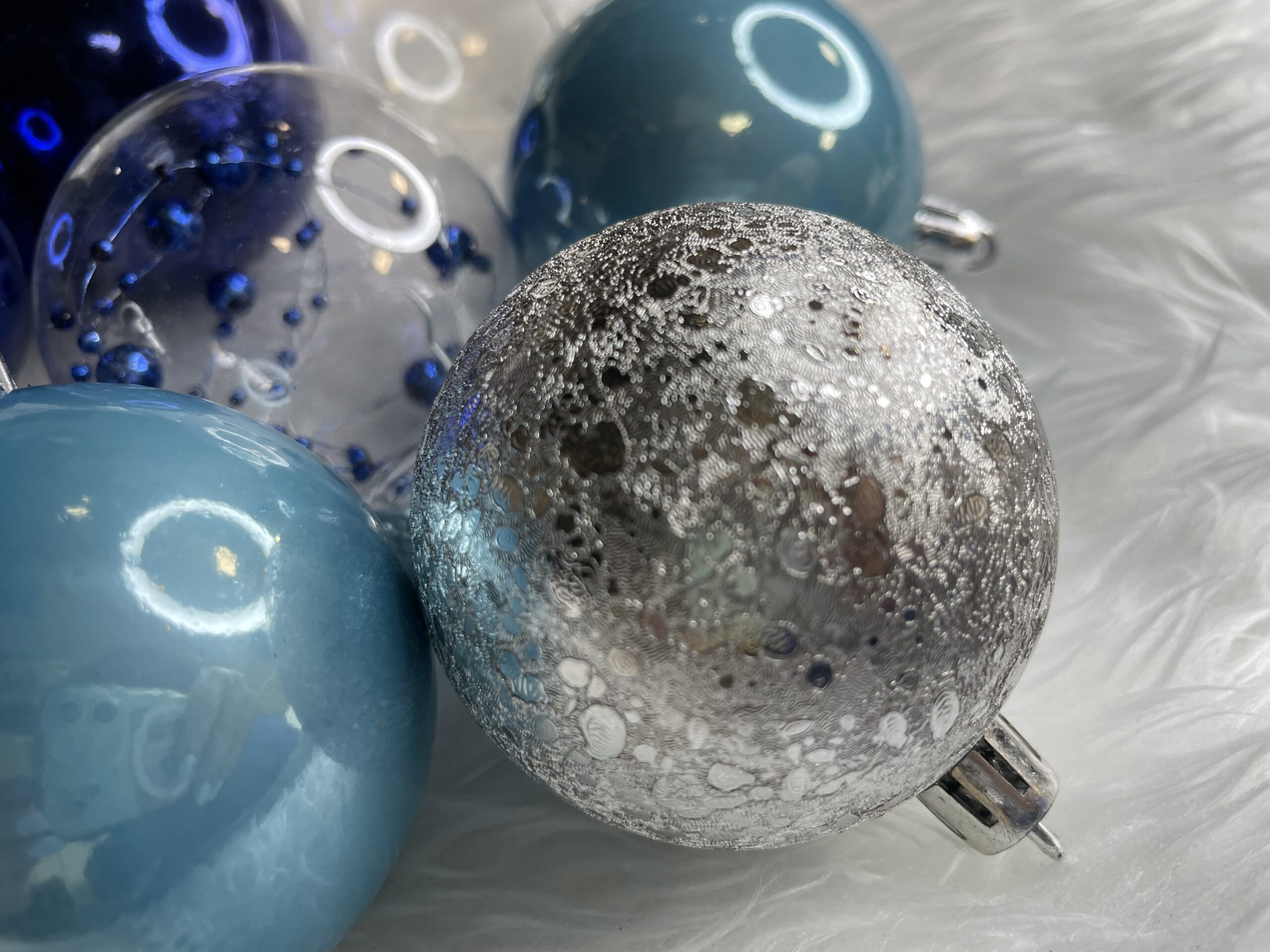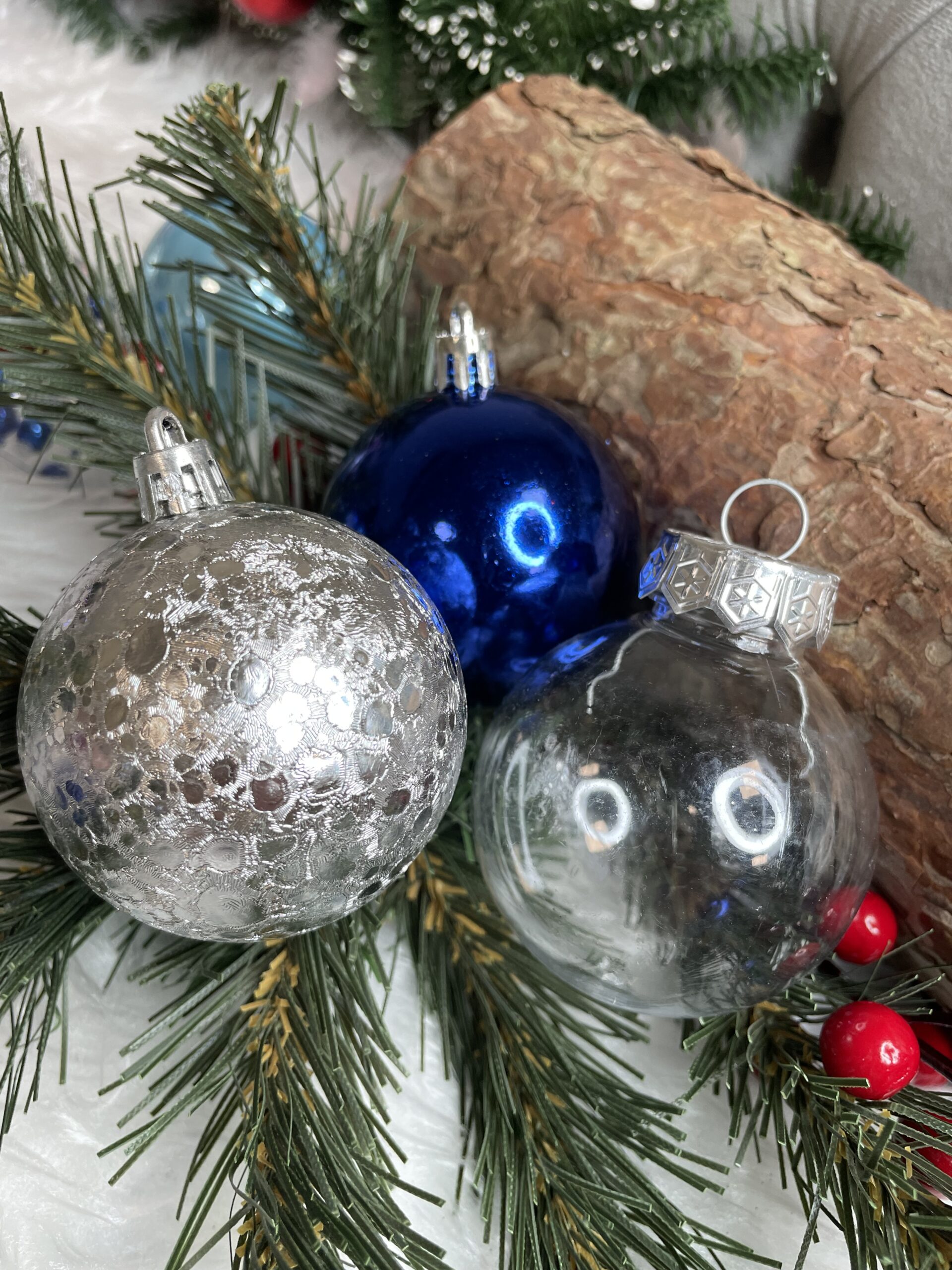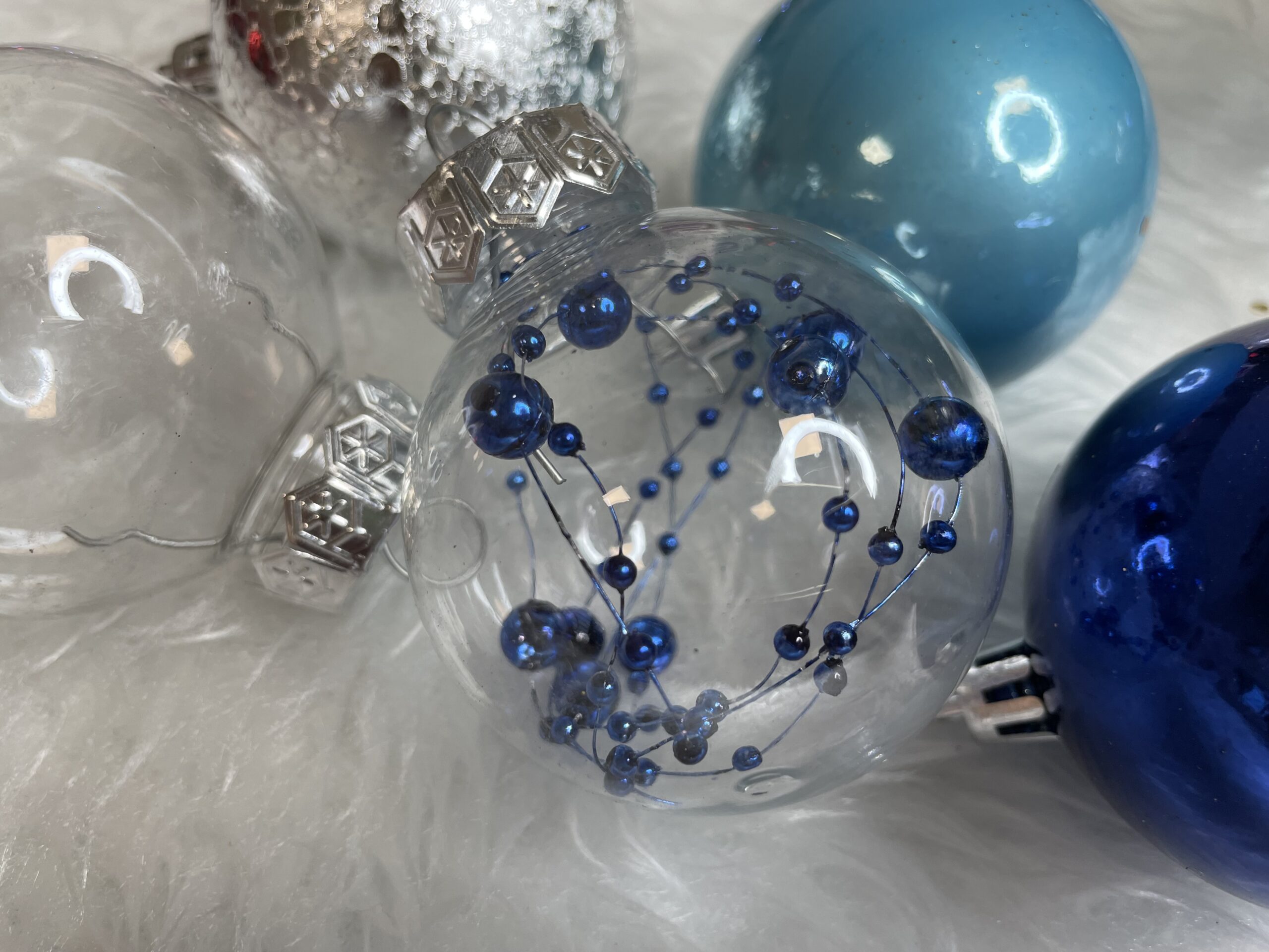 Set globuri de Craciun 30 piese, 6 cm, transparente si albastre