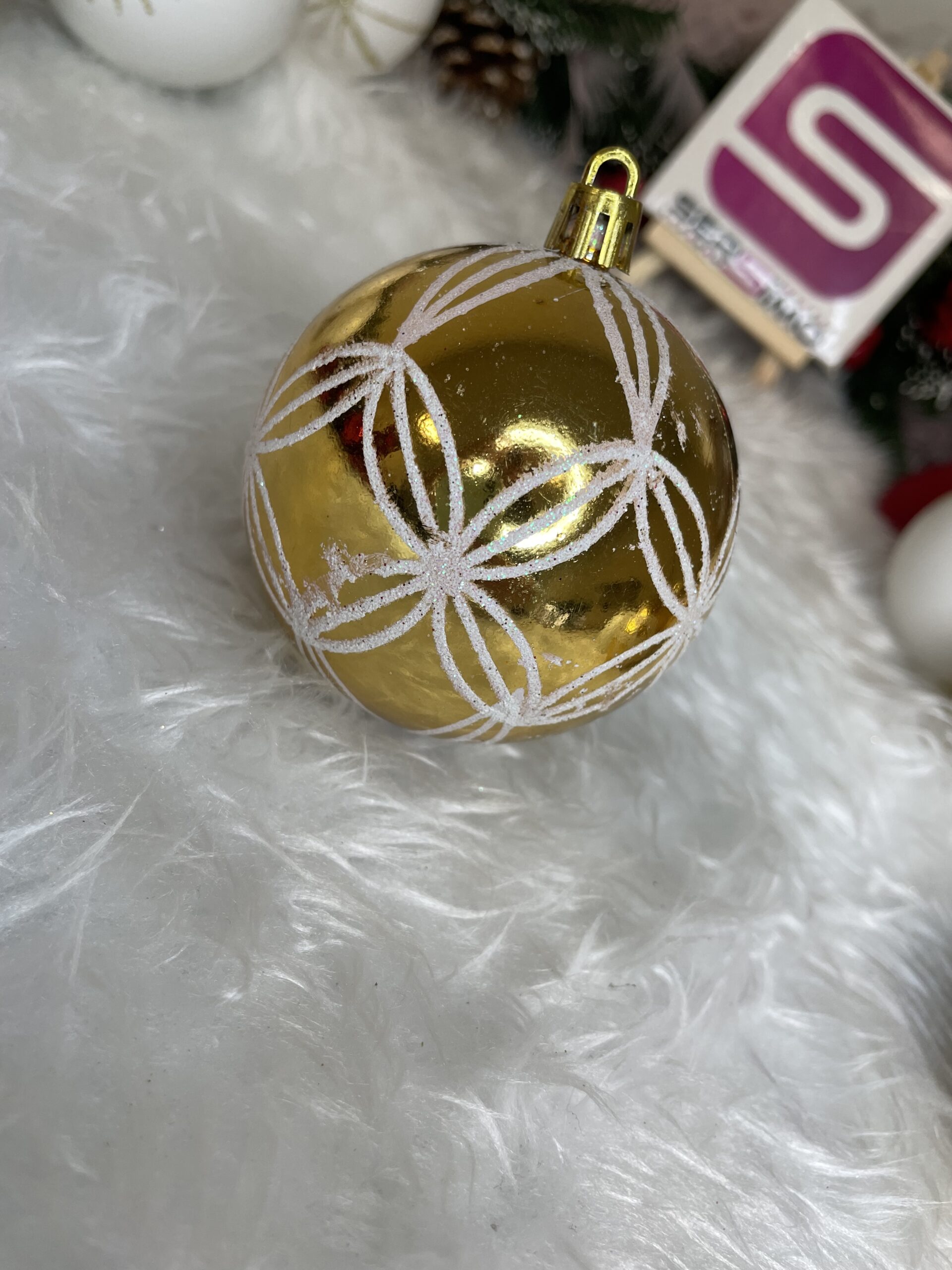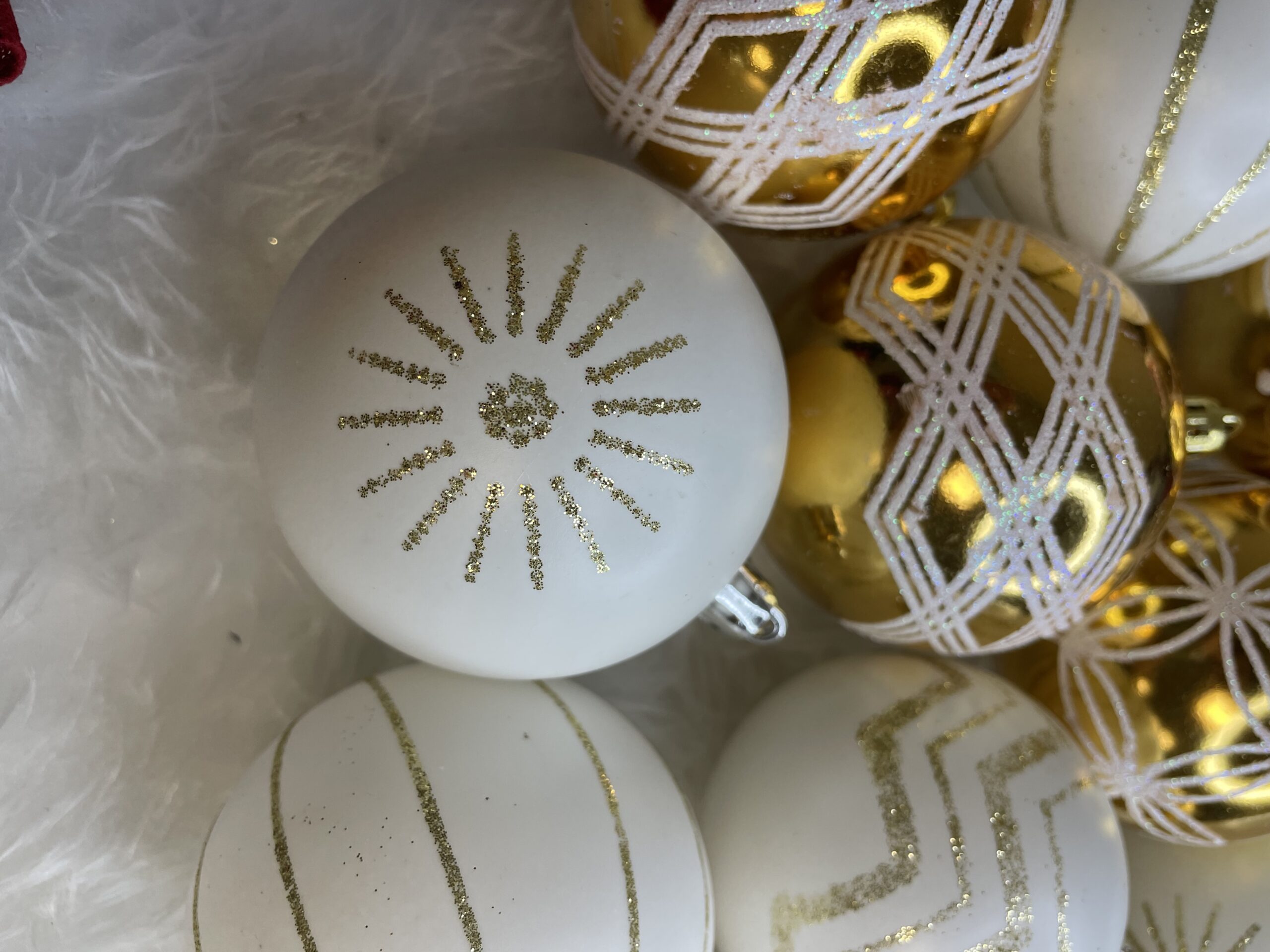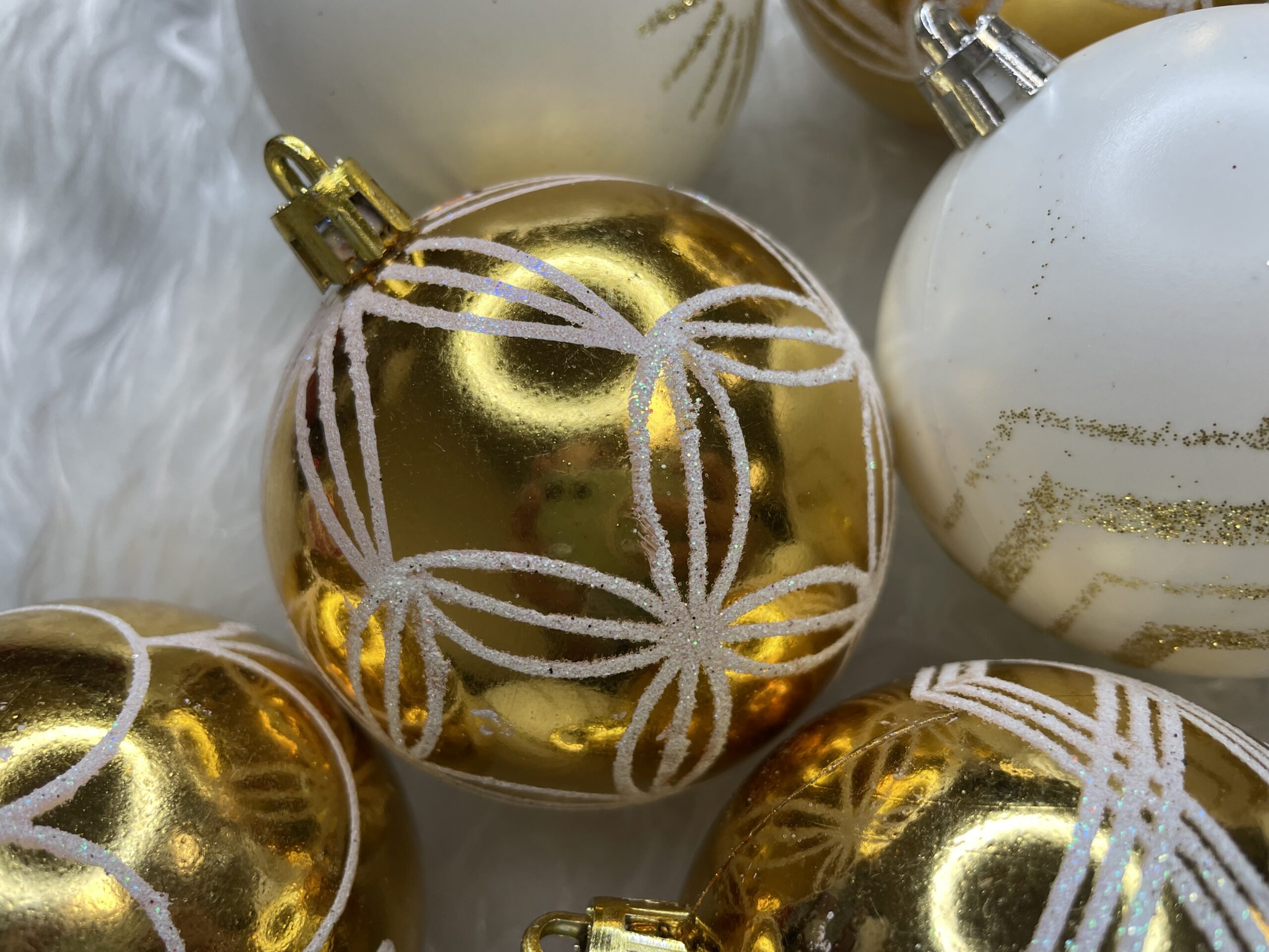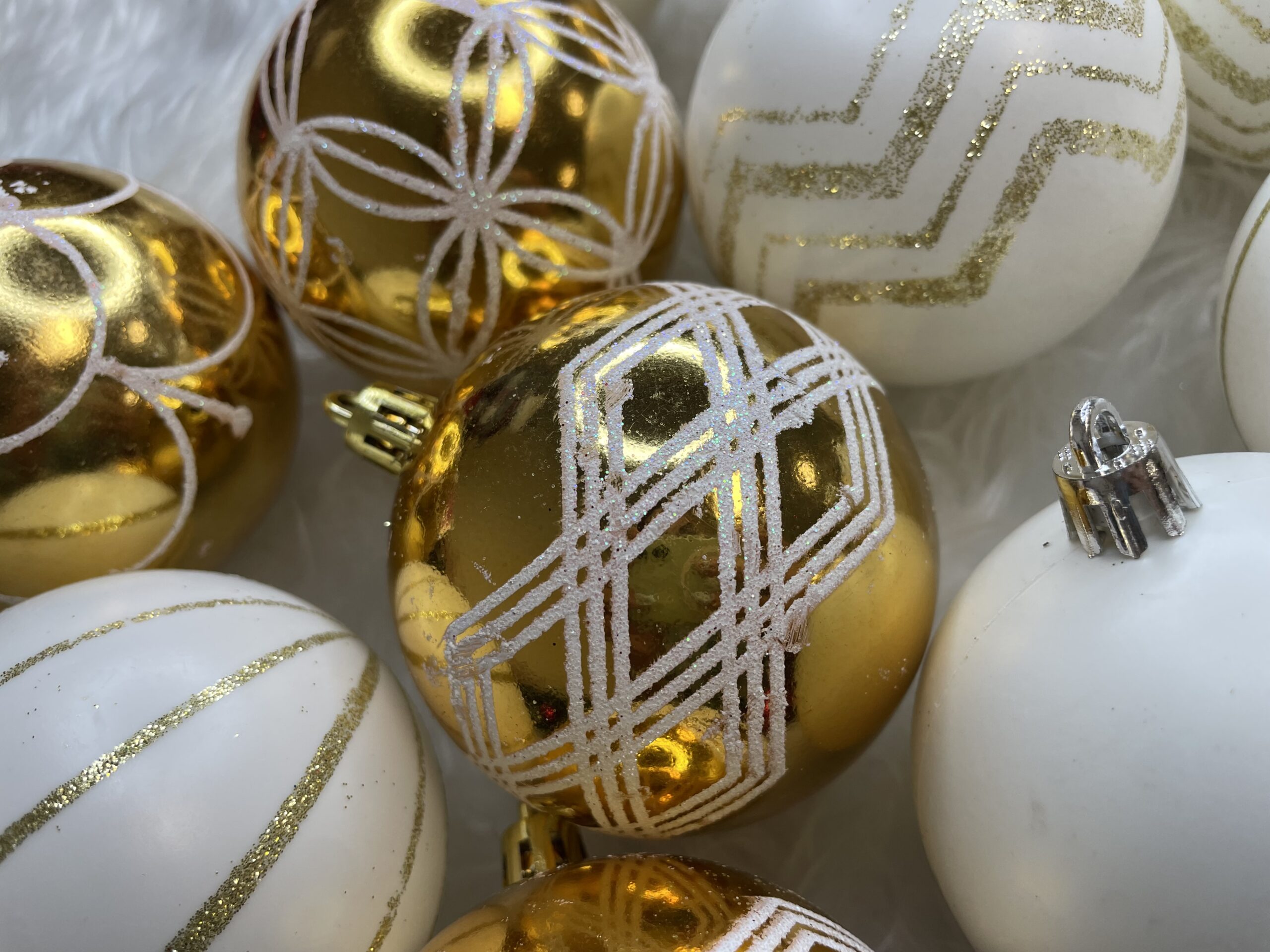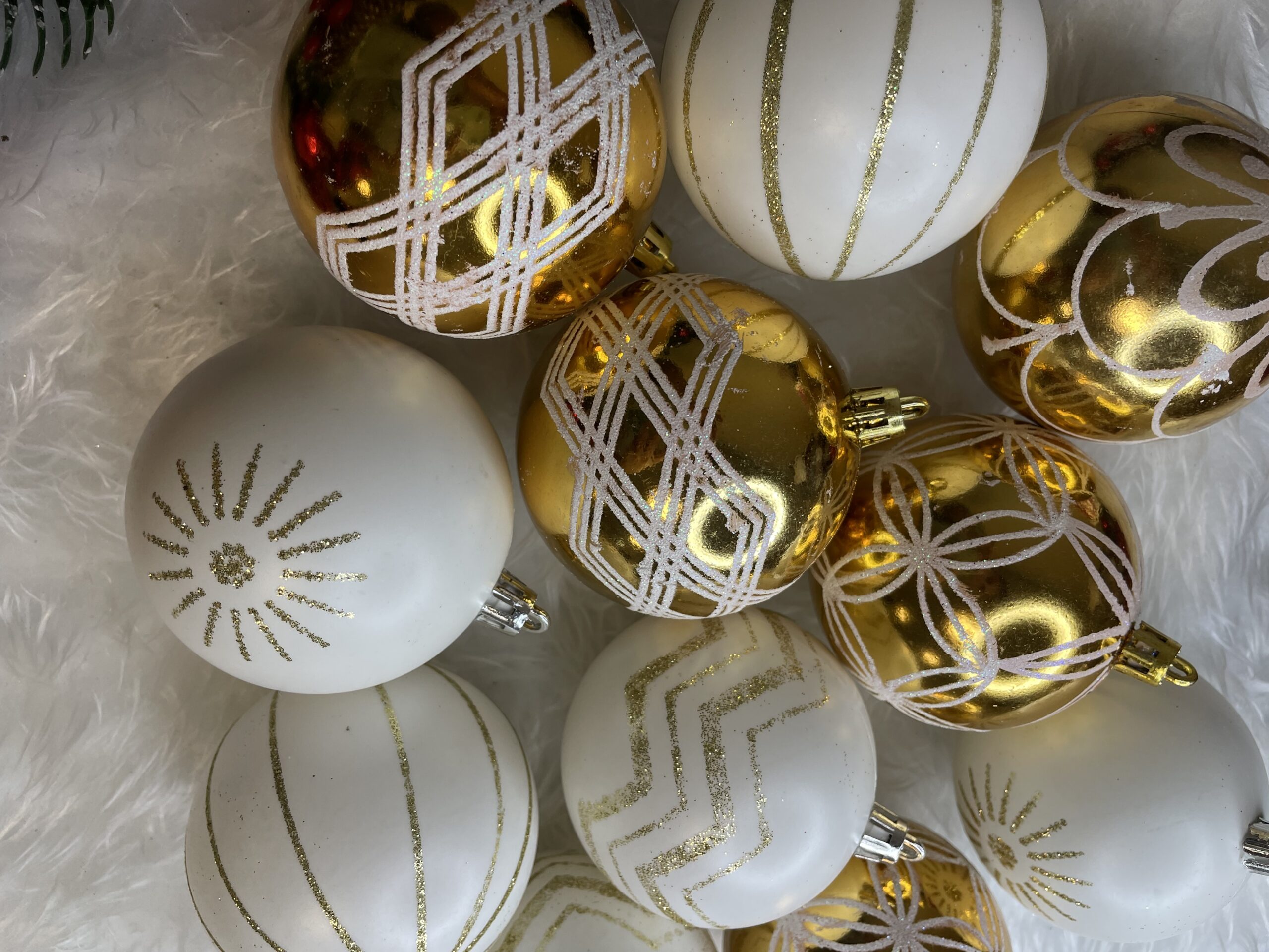 Set globuri de Crăciun alb auriu, 30 bucăți, 5 cm, modele festive