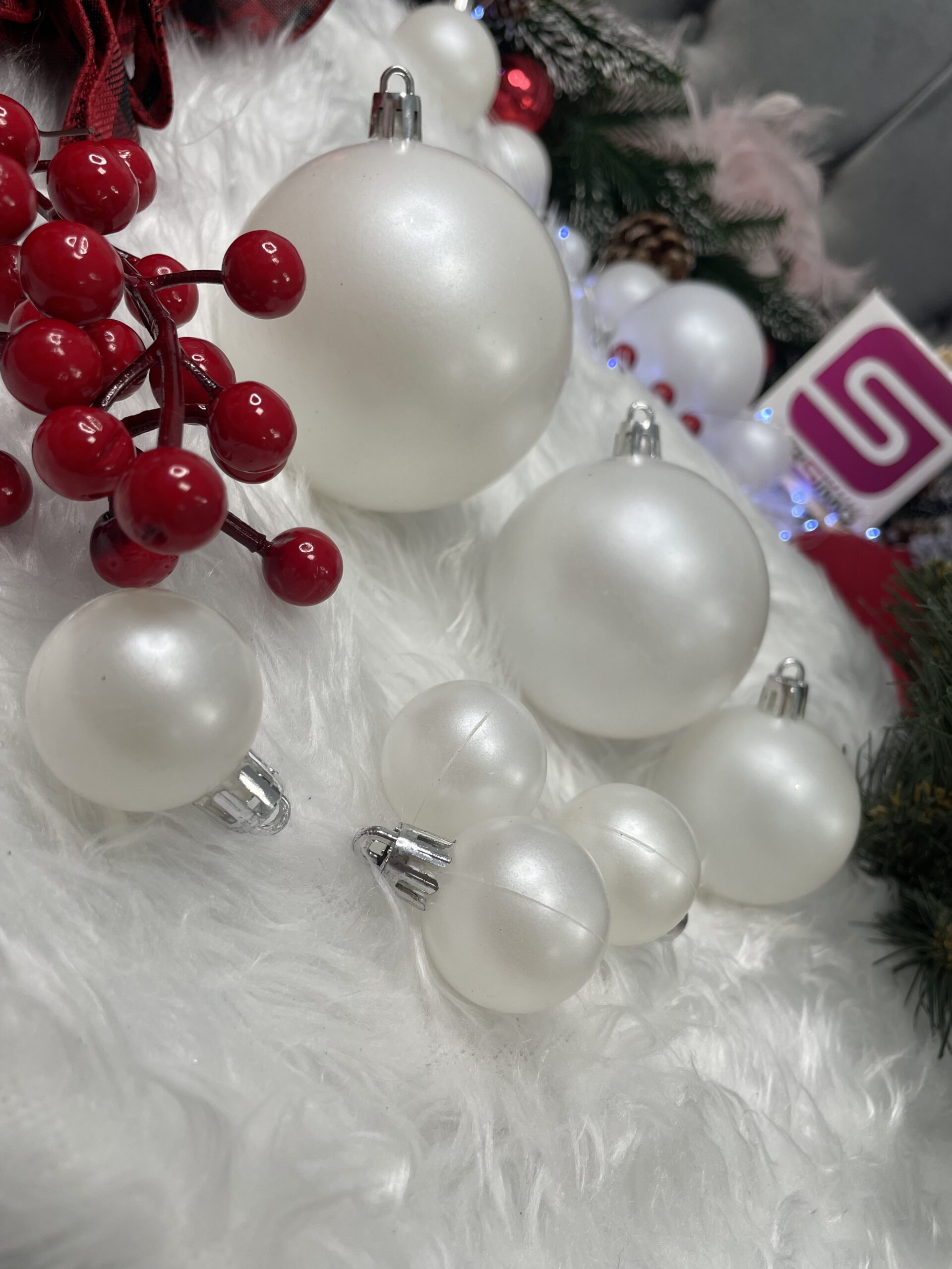 Adaugă un plus de eleganță bradului tău cu acest set de globuri de Crăciun alb perlă, perfect pentru un decor festiv rafinat și luminos. Nuanța delicată de alb perlă se potrivește ușor în amenajări clasice, moderne sau minimaliste, iar dimensiunile variate te ajută să creezi un brad echilibrat și atrăgător. Fiind realizate din plastic rezistent, aceste globuri pentru brad sunt o alegere practică pentru familiile cu copii sau animale de companie.
