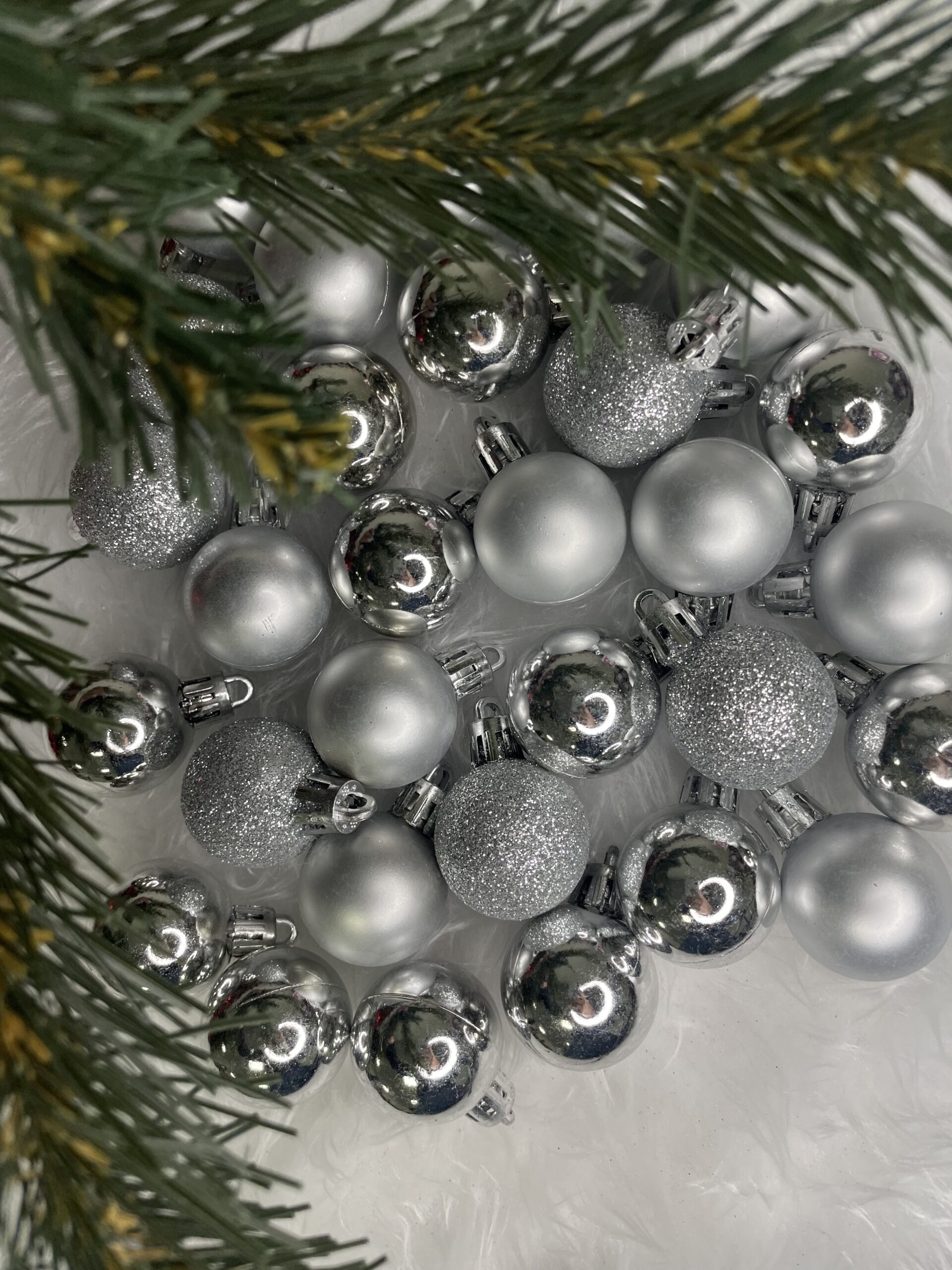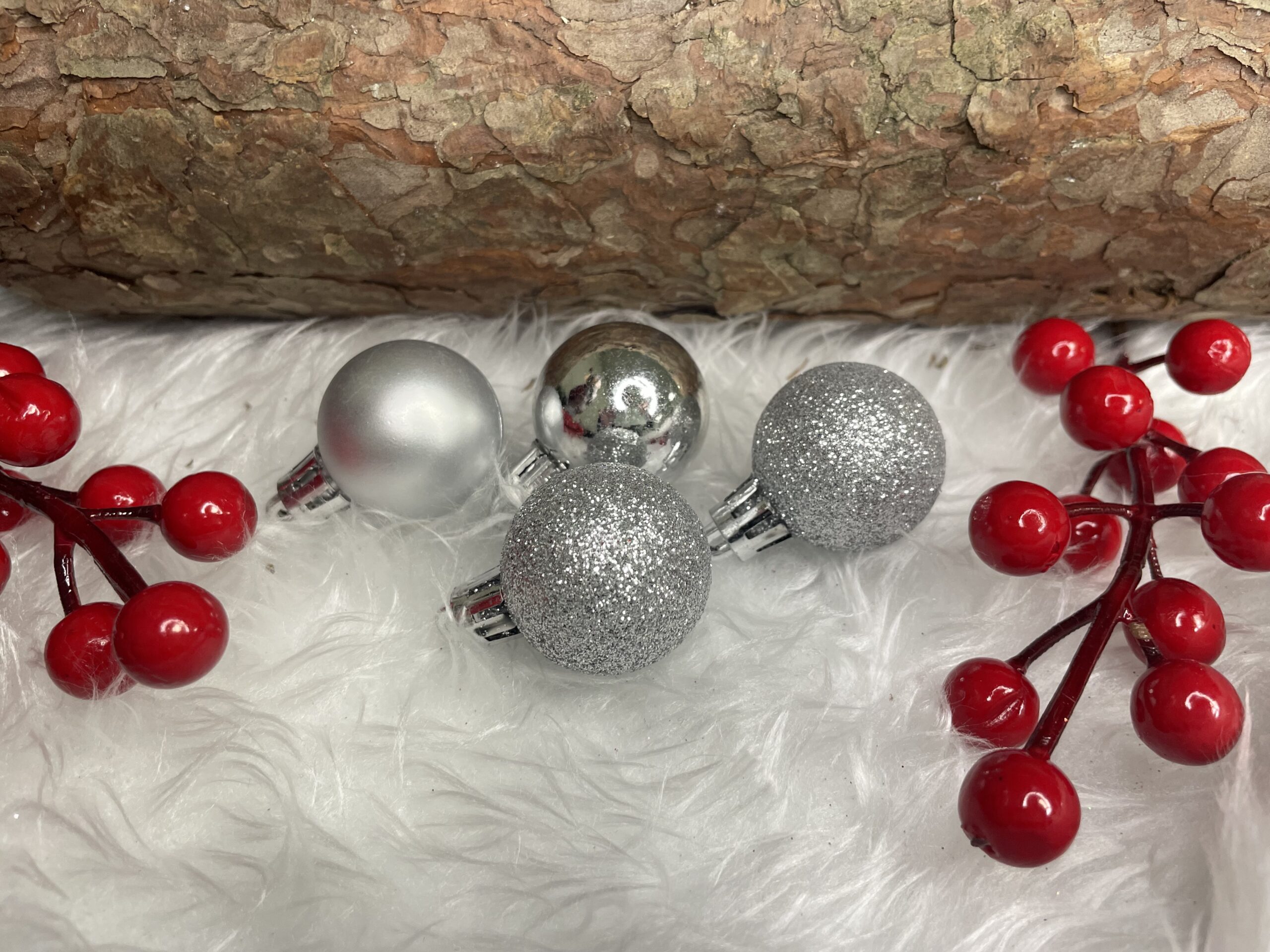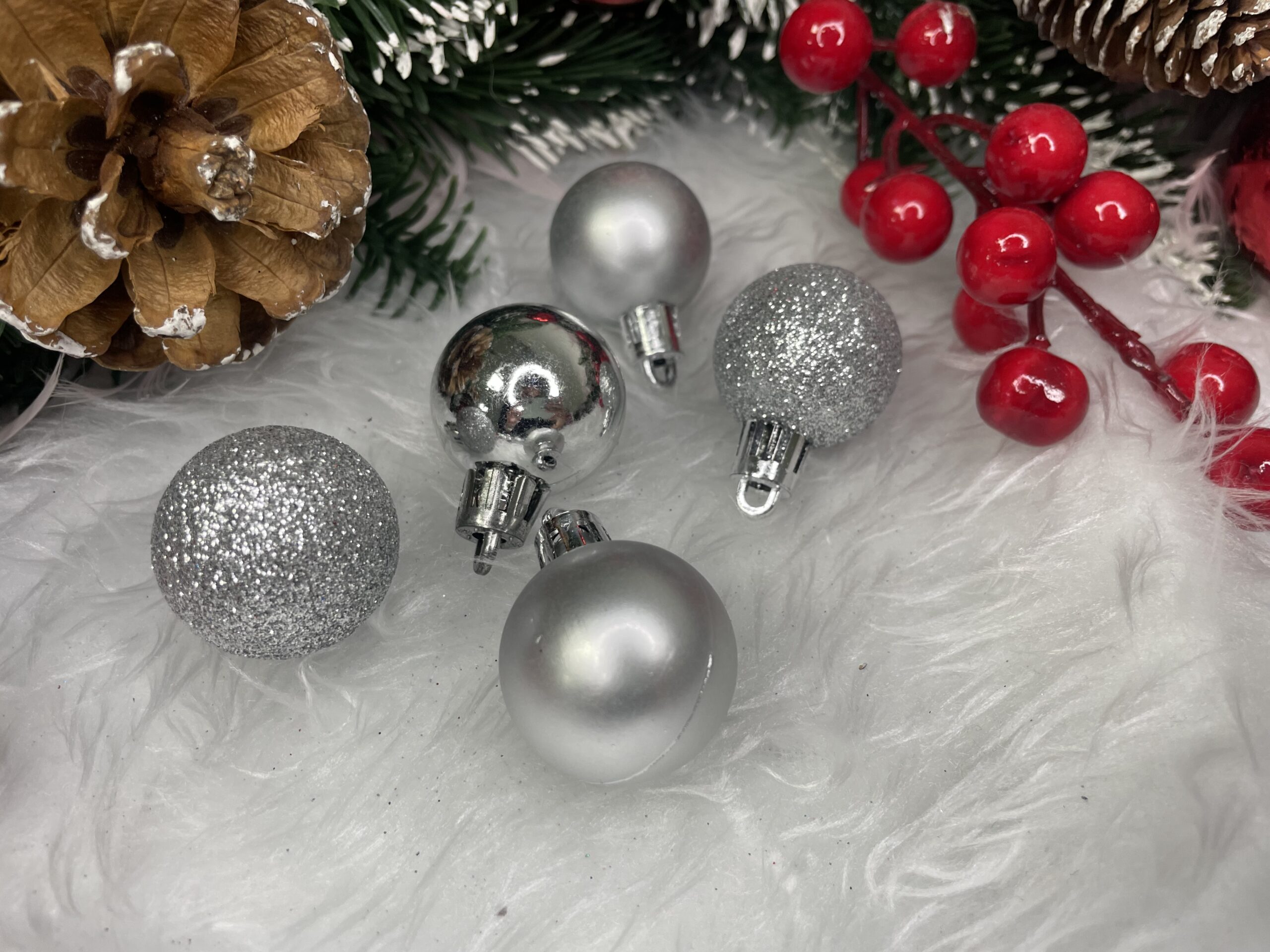 Set globuri de Craciun argintii, 30 bucati, 3 modele, 3 cm