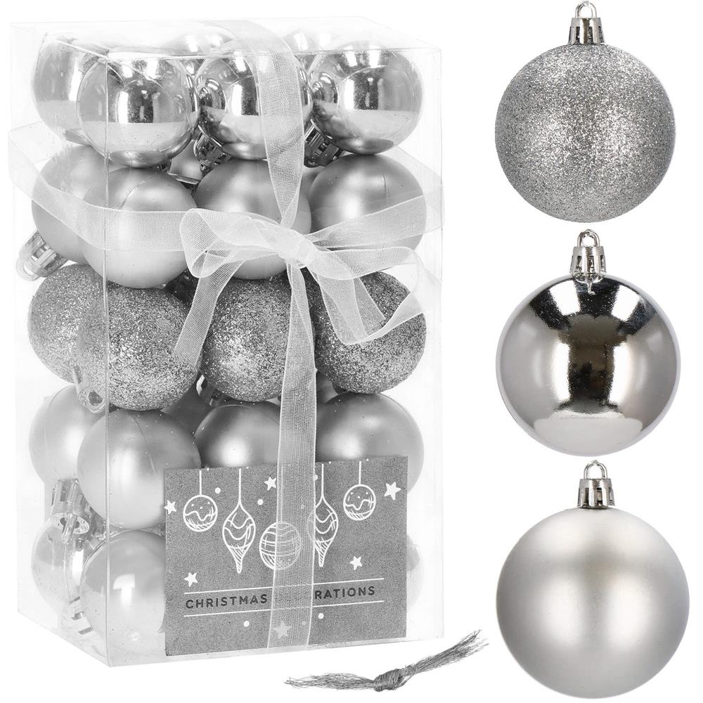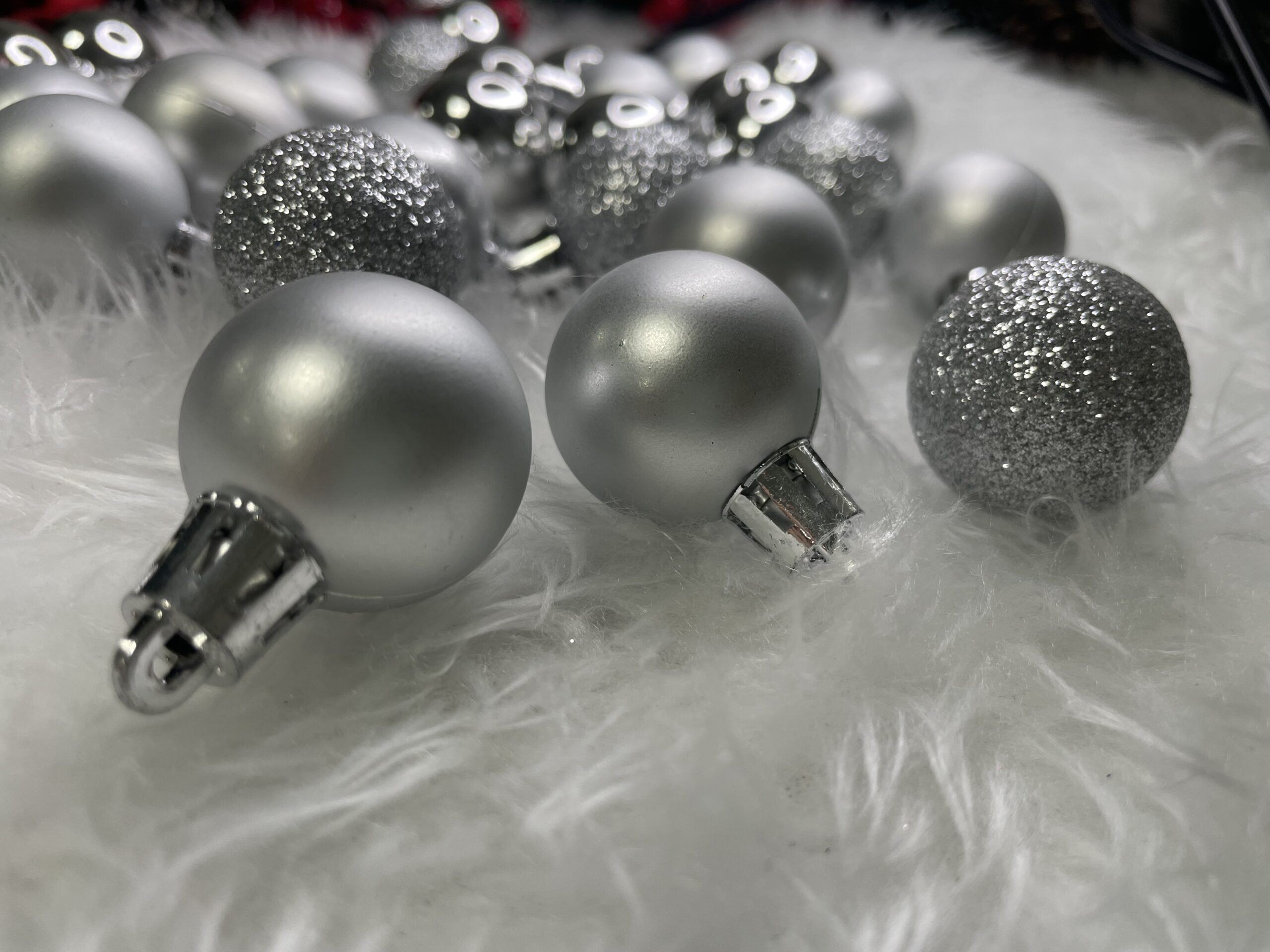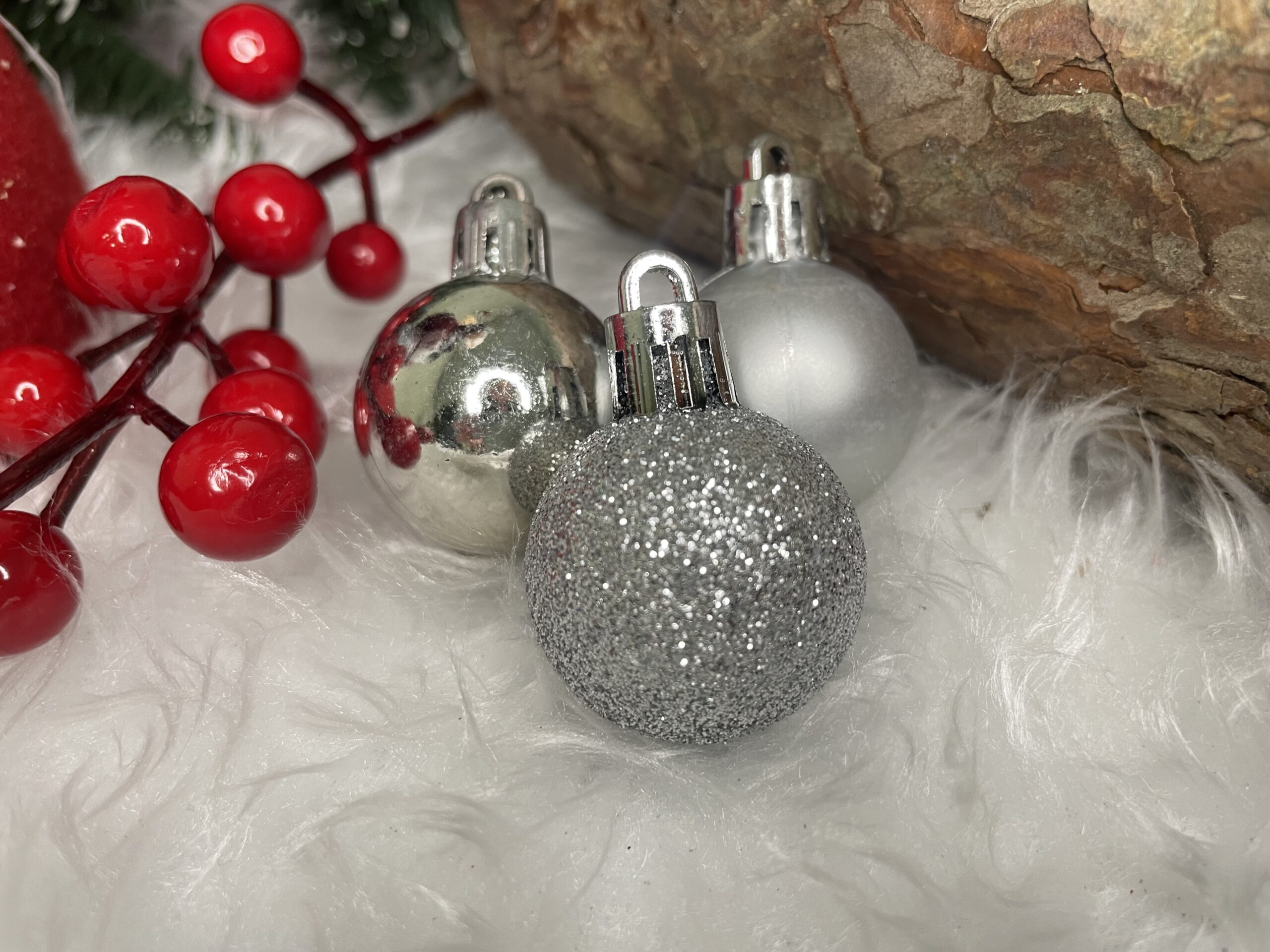 Set globuri de Craciun argintii, 30 bucati, 3 modele, 3 cm