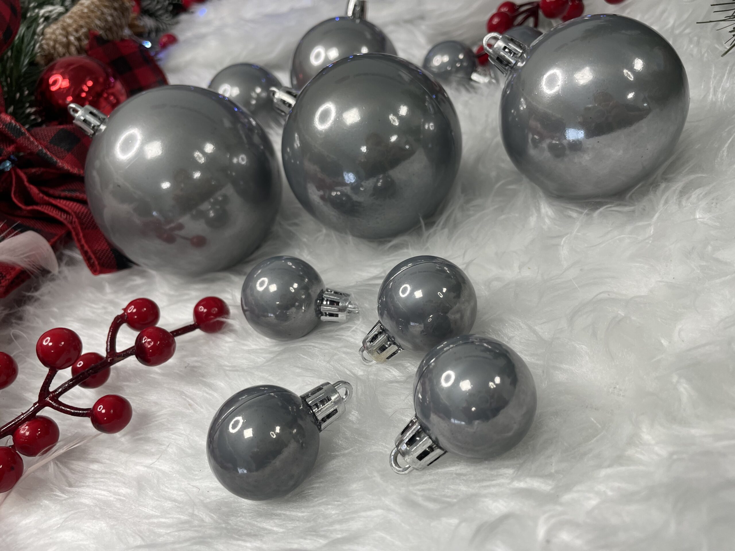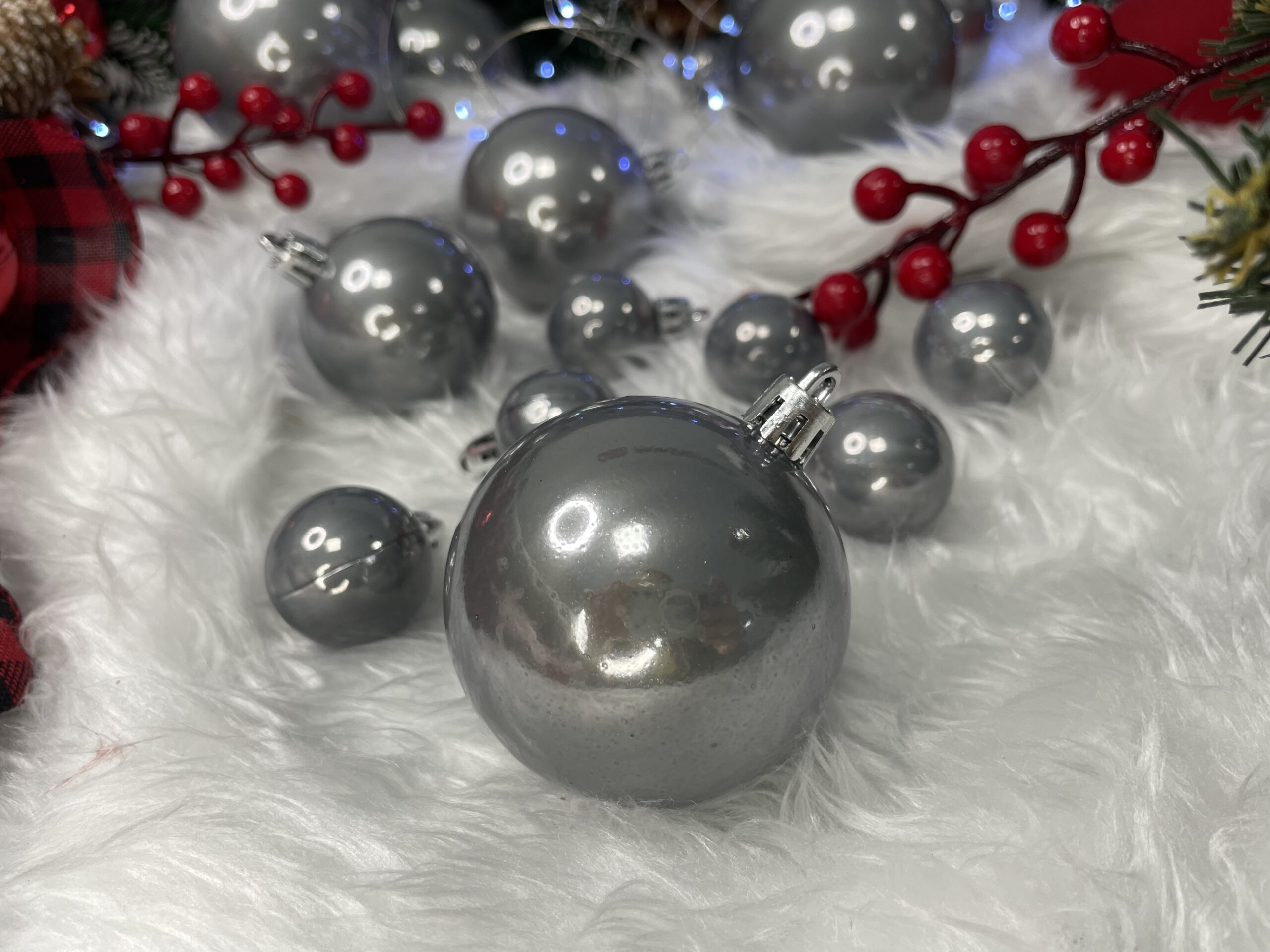 Completeaza decorul festiv cu acest set globuri de Craciun argintii, potrivit pentru un brad elegant si luminos. Nuanța argintie perlată se integreaza usor in decoruri moderne sau clasice, iar dimensiunile variate te ajuta sa obtii un aspect echilibrat si atragator. Fiind realizate din plastic incasabil, globurile sunt o alegere practica pentru familiile cu copii sau animale de companie.
