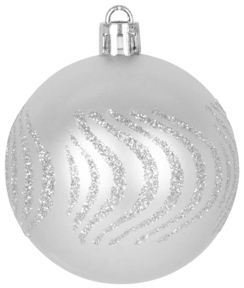 Set globuri de Craciun argintii cu varf pentru brad, 21 piese, 6 cm
