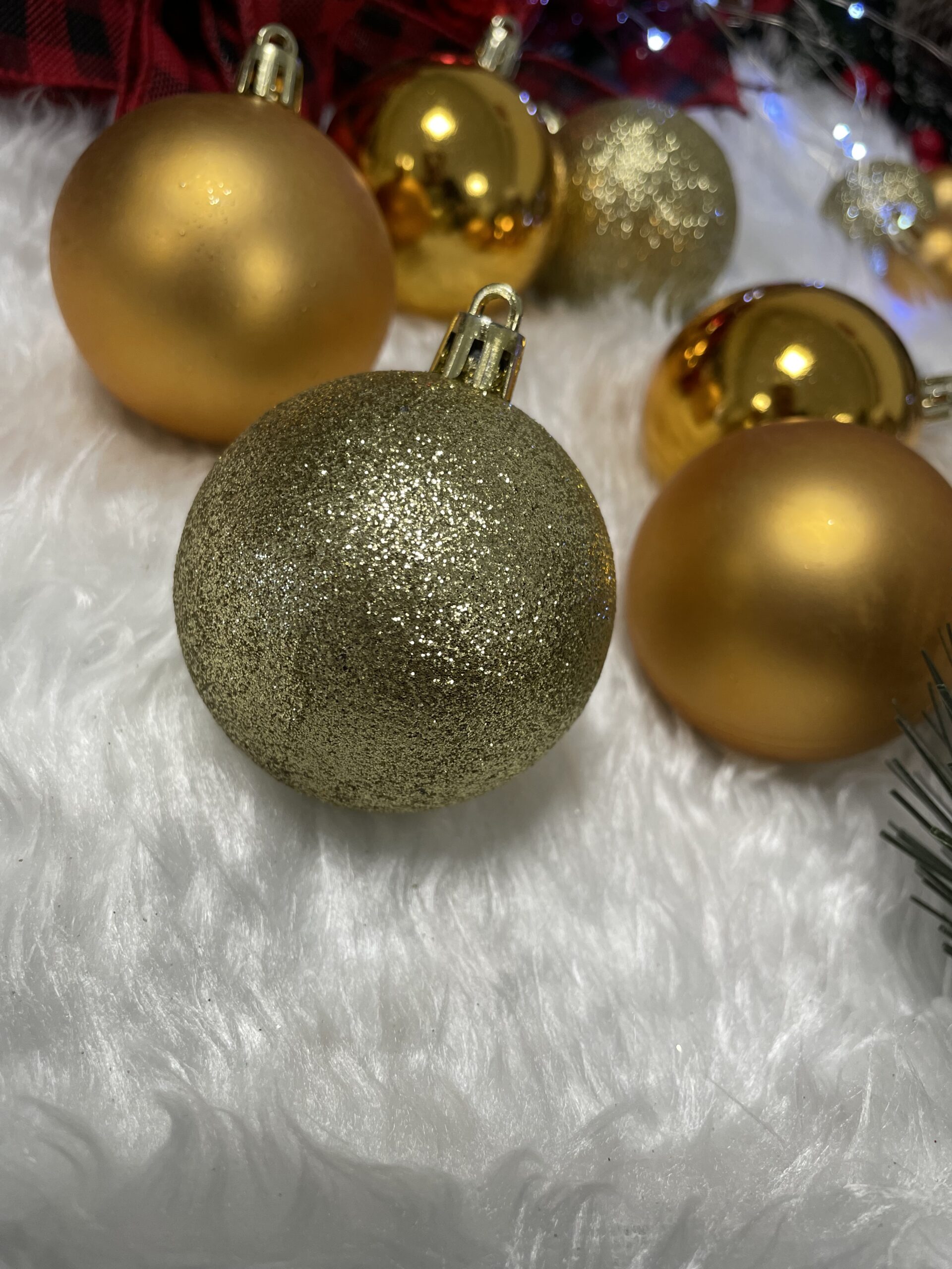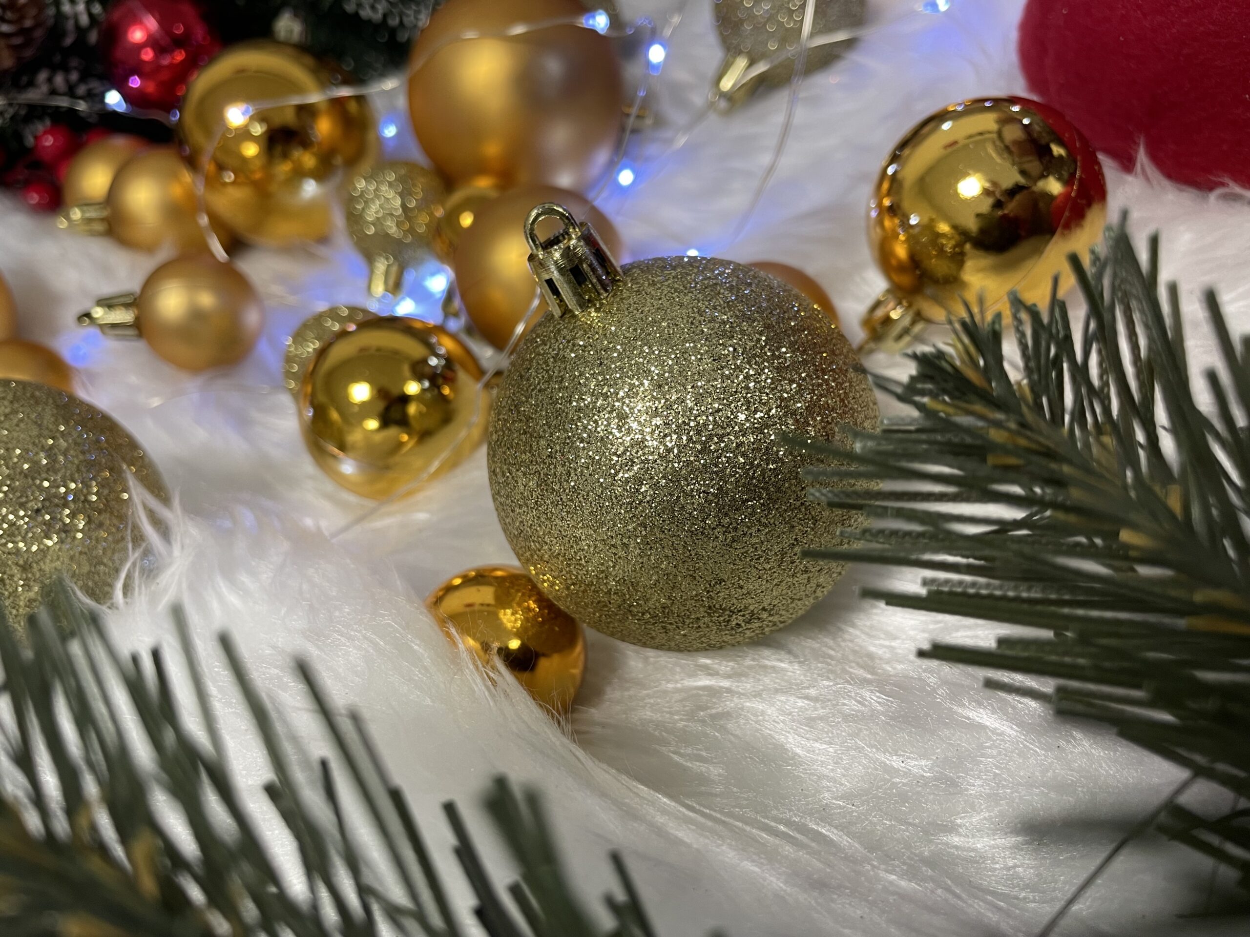 - 16 x globuri cu sclipici, 3 cm