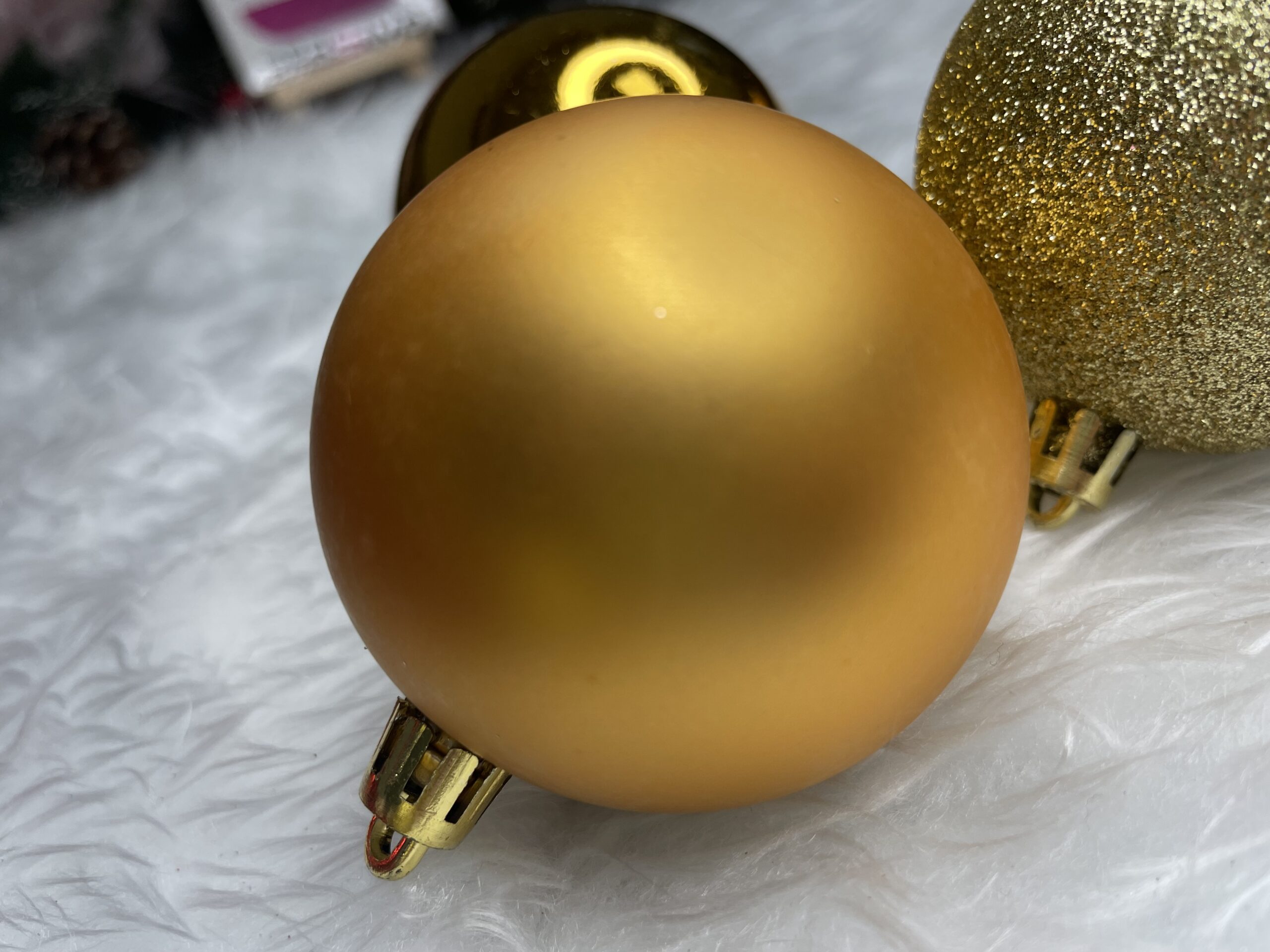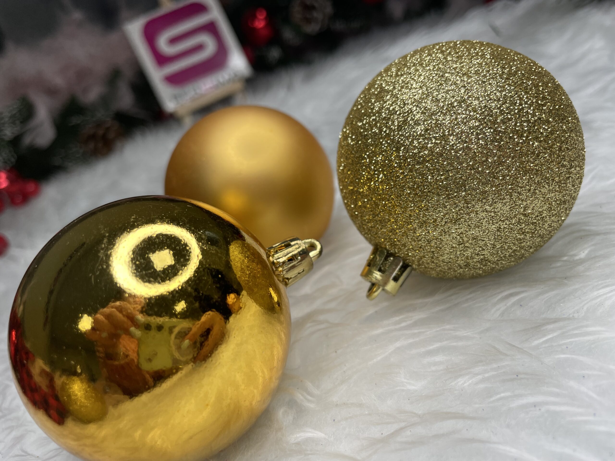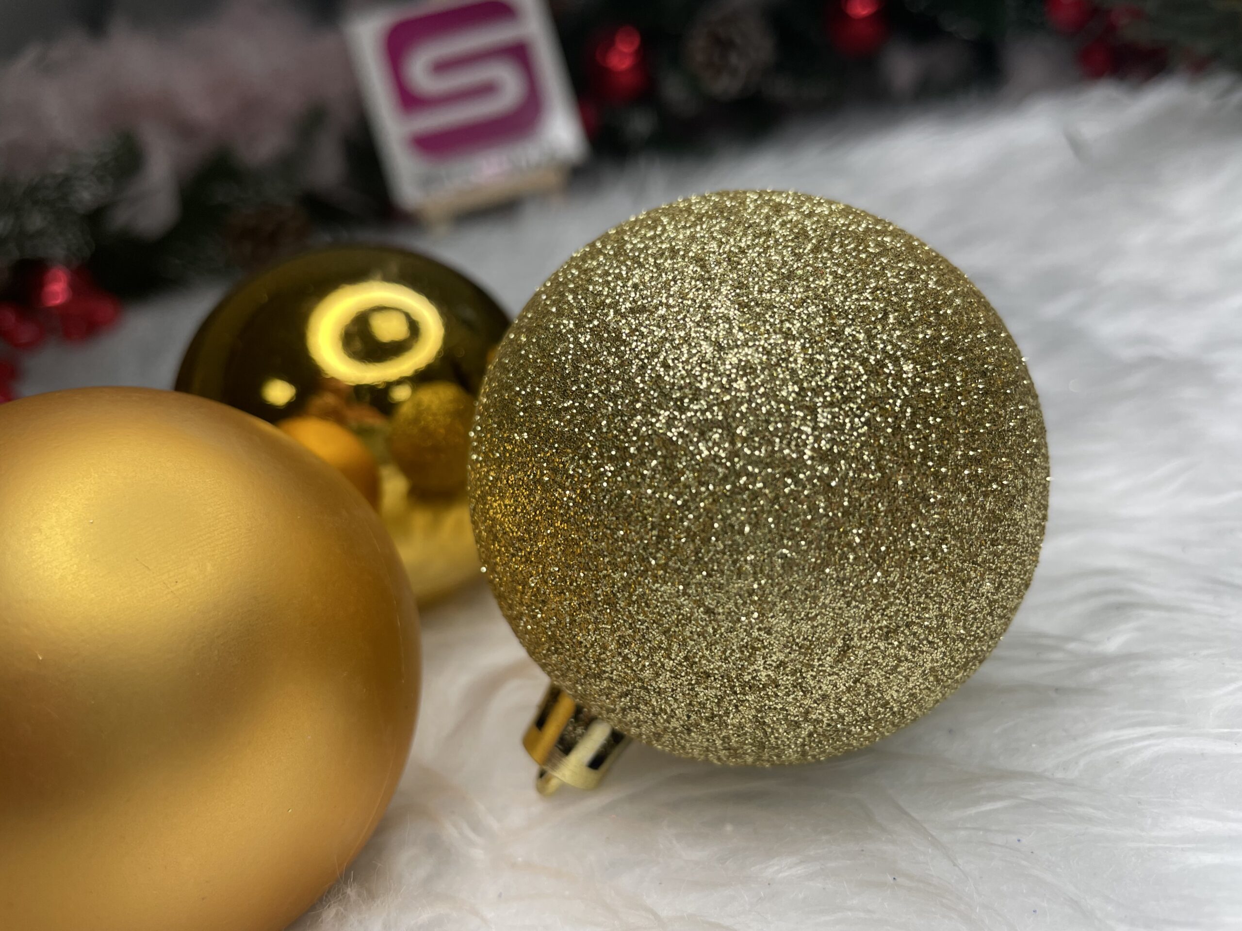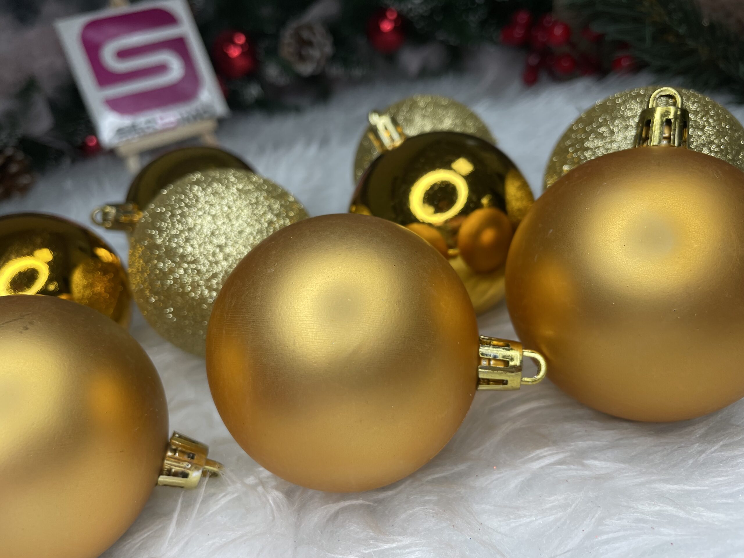 Adauga un plus de eleganta bradului cu acest set de globuri de Craciun aurii, perfect pentru decoruri festive clasice sau moderne. Cele 30 de globuri au dimensiunea de 6 cm si sunt realizate din plastic rezistent, fiind o alegere practica pentru familiile cu copii sau animale de companie. Finisajele variate – mat, lucios si cu sclipici – creeaza un efect vizual bogat si luminos in orice decor de sarbatoare.