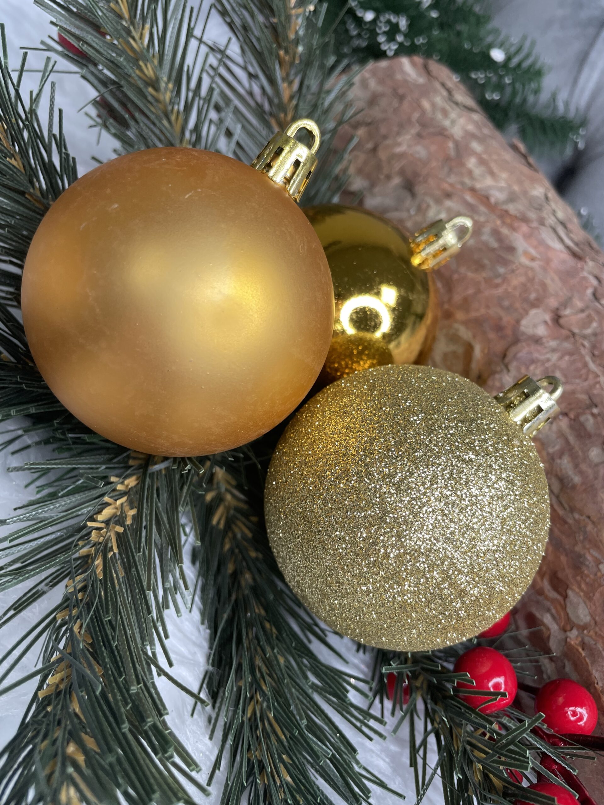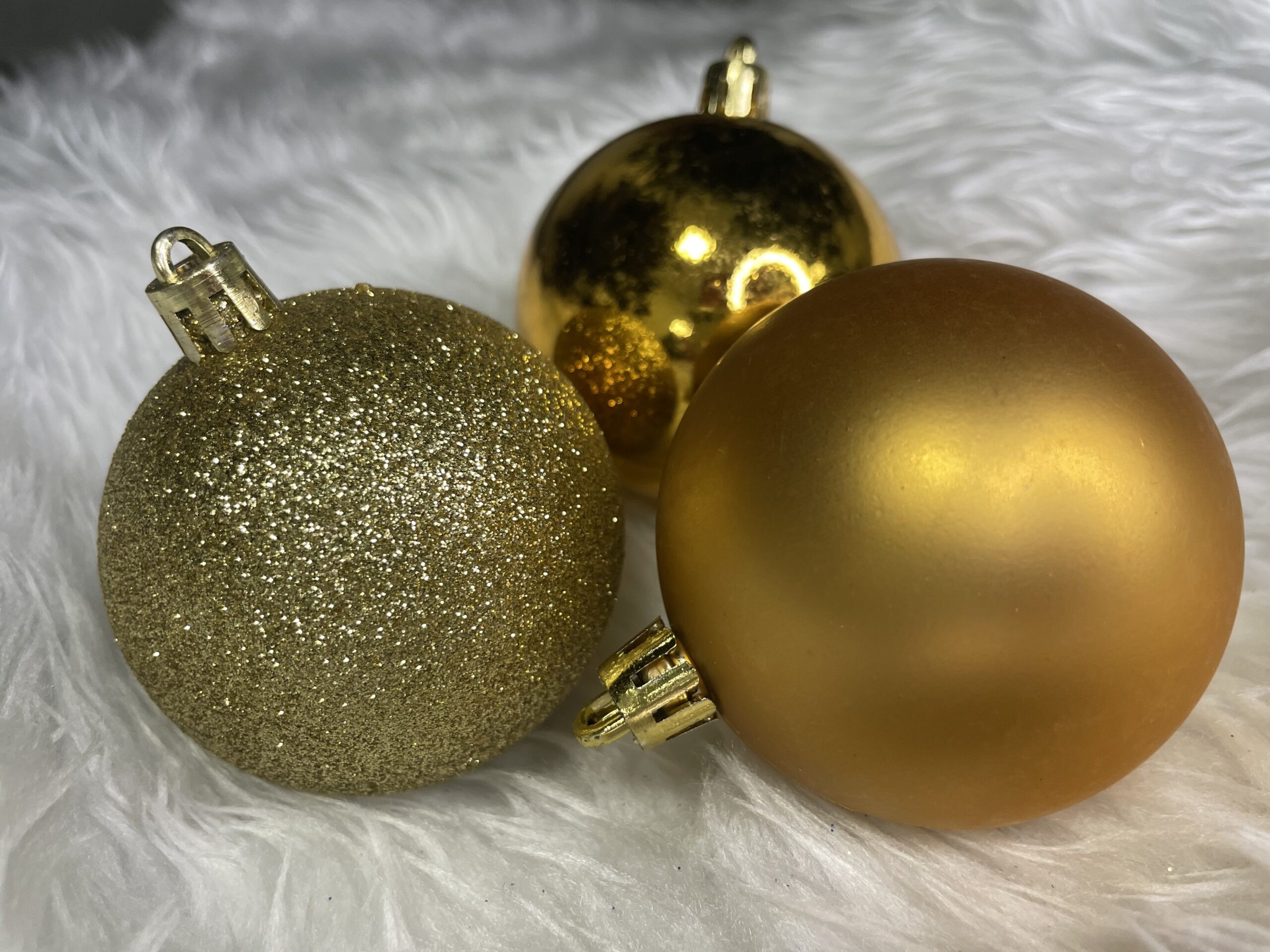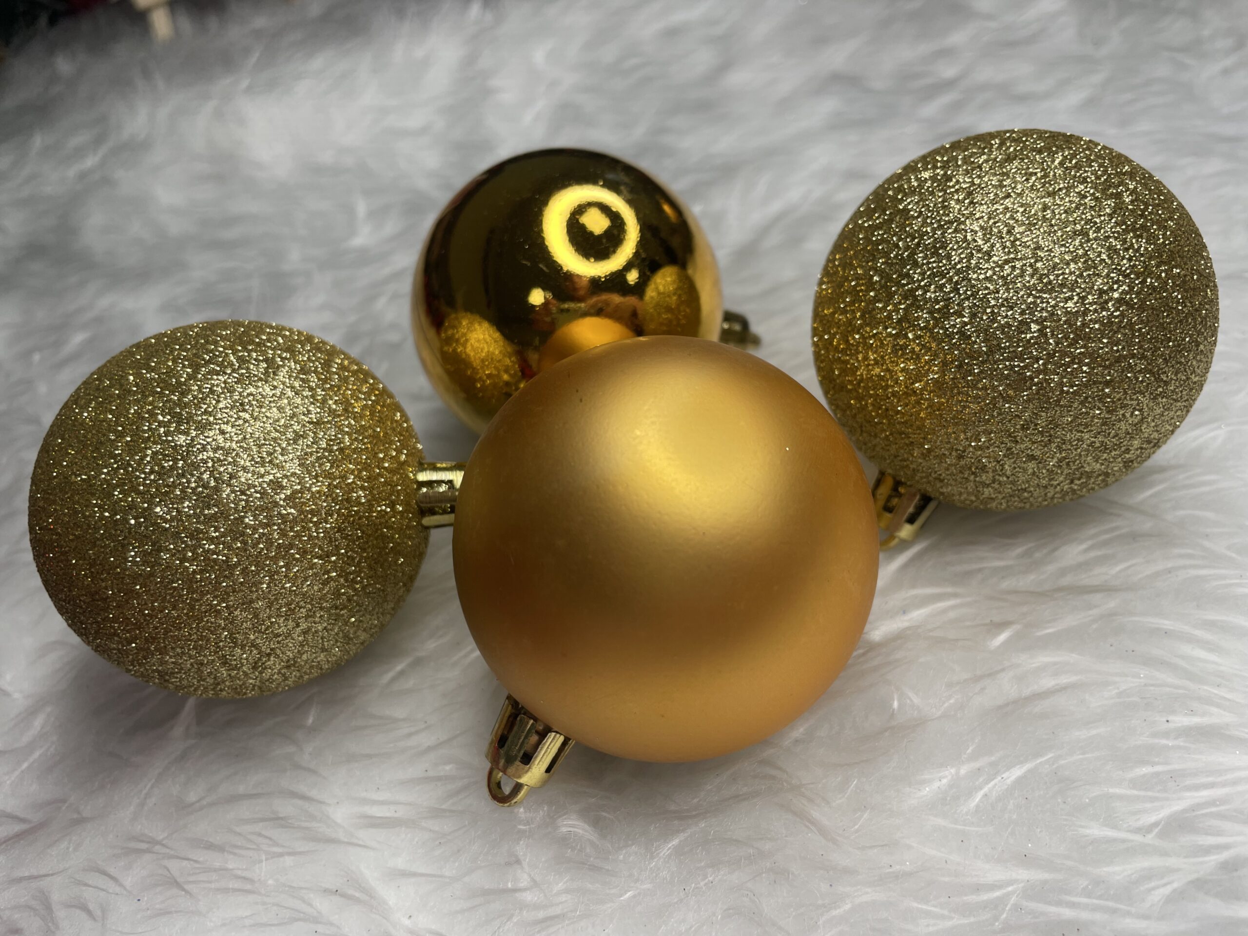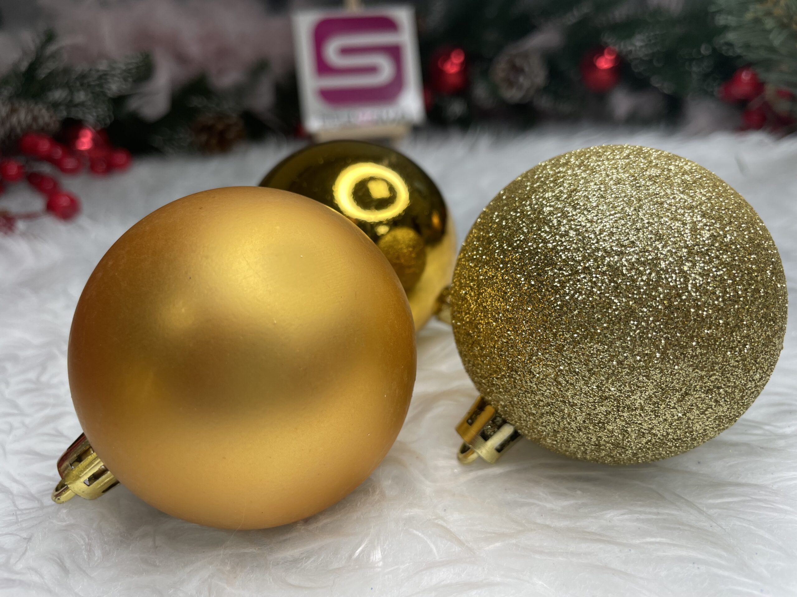 Adauga un plus de eleganta bradului cu acest set de globuri de Craciun aurii, perfect pentru decoruri festive clasice sau moderne. Cele 30 de globuri au dimensiunea de 6 cm si sunt realizate din plastic rezistent, fiind o alegere practica pentru familiile cu copii sau animale de companie. Finisajele variate – mat, lucios si cu sclipici – creeaza un efect vizual bogat si luminos in orice decor de sarbatoare.