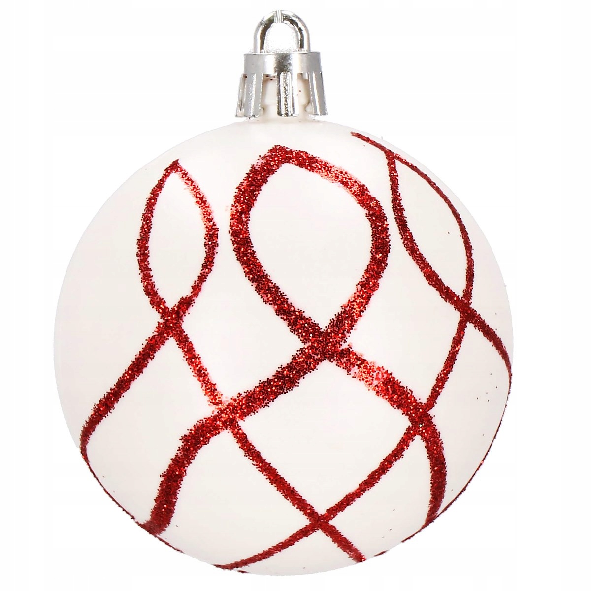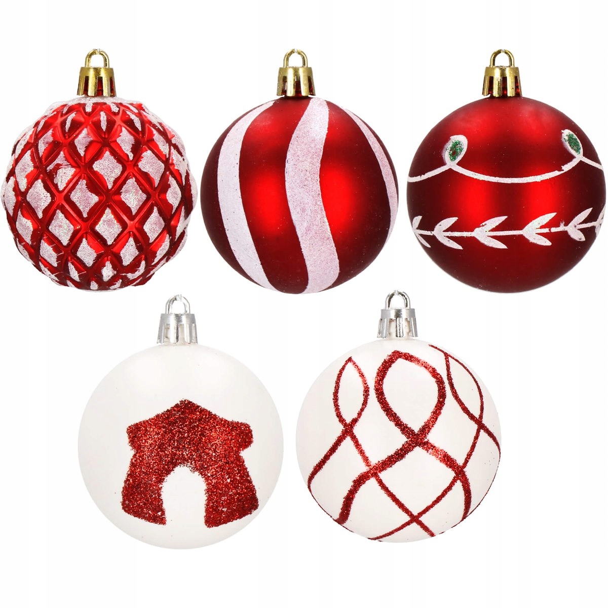 Set globuri de Craciun cu modele de sarbatori, 30 bucati, 6cm, alb rosu Household NewTrend