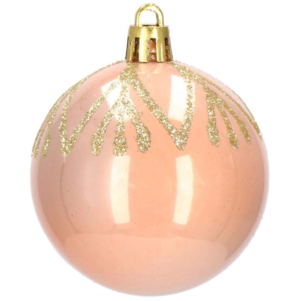 Set globuri de Craciun cu modele de sarbatori, 30 bucati, 6cm, roz si auriu Household NewTrend