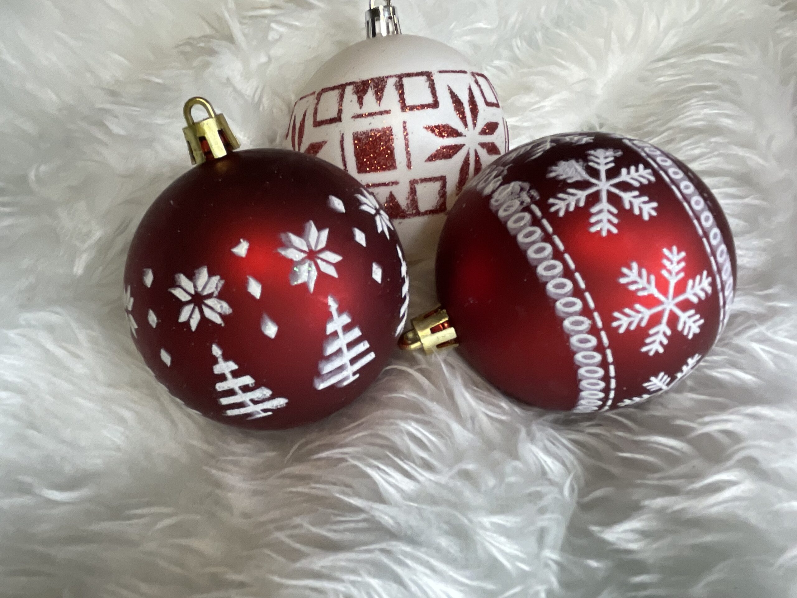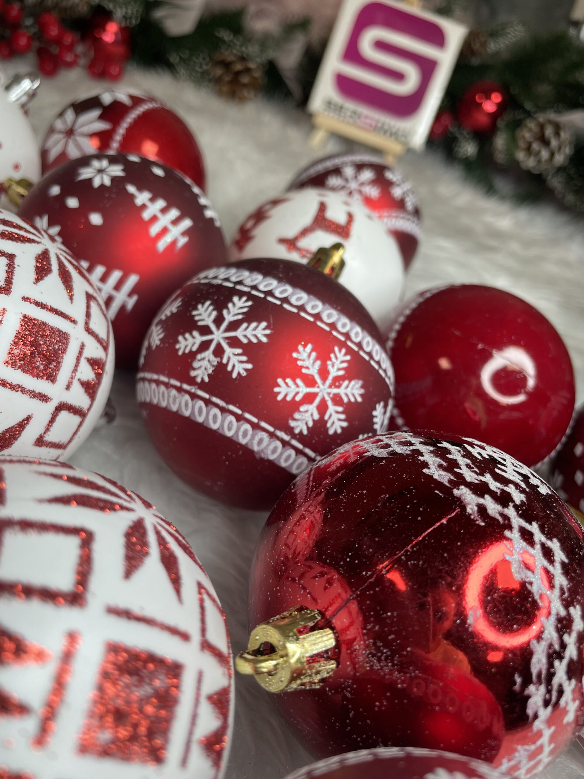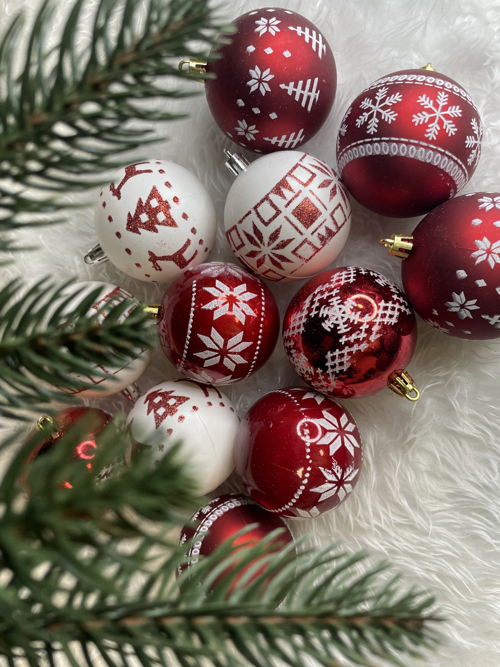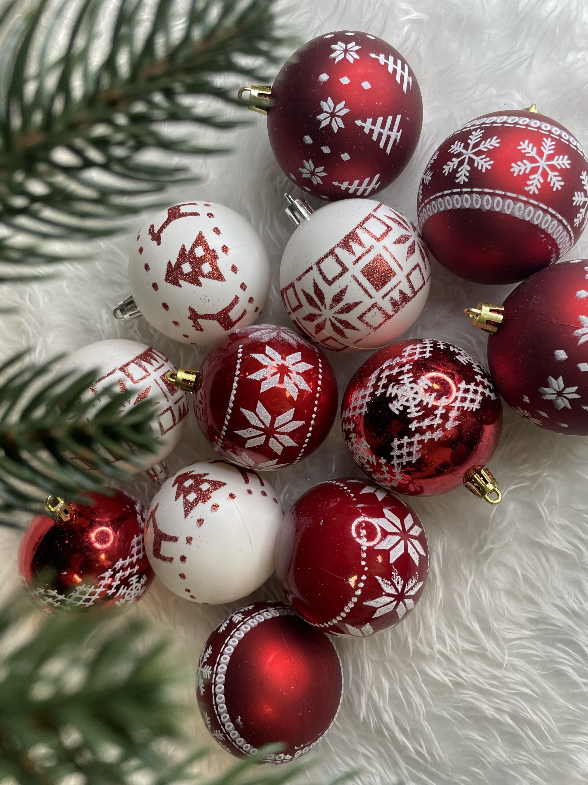 Set globuri de Craciun cu modele de sarbatori, 30 bucati, 7cm, alb rosu Household NewTrend
