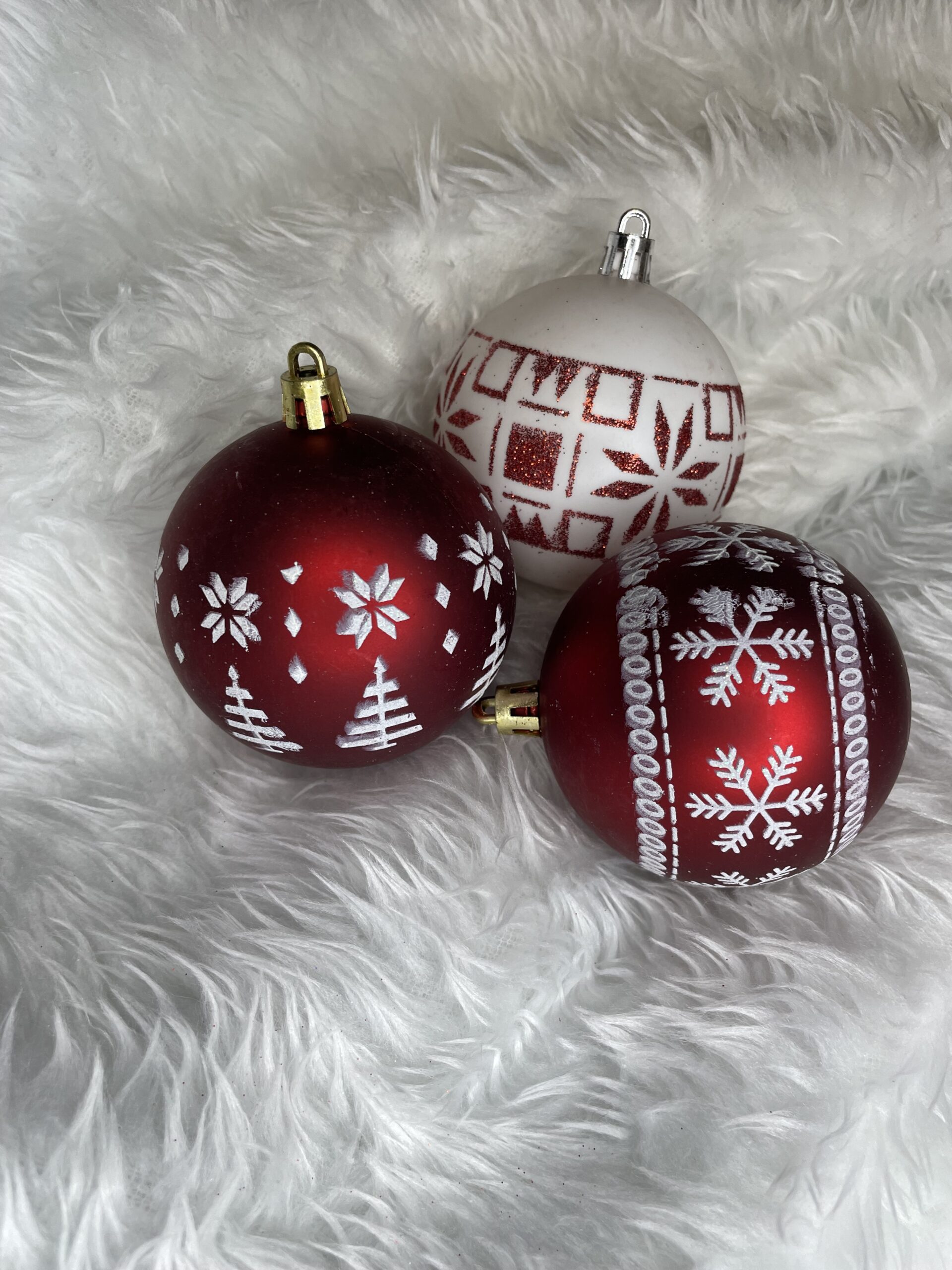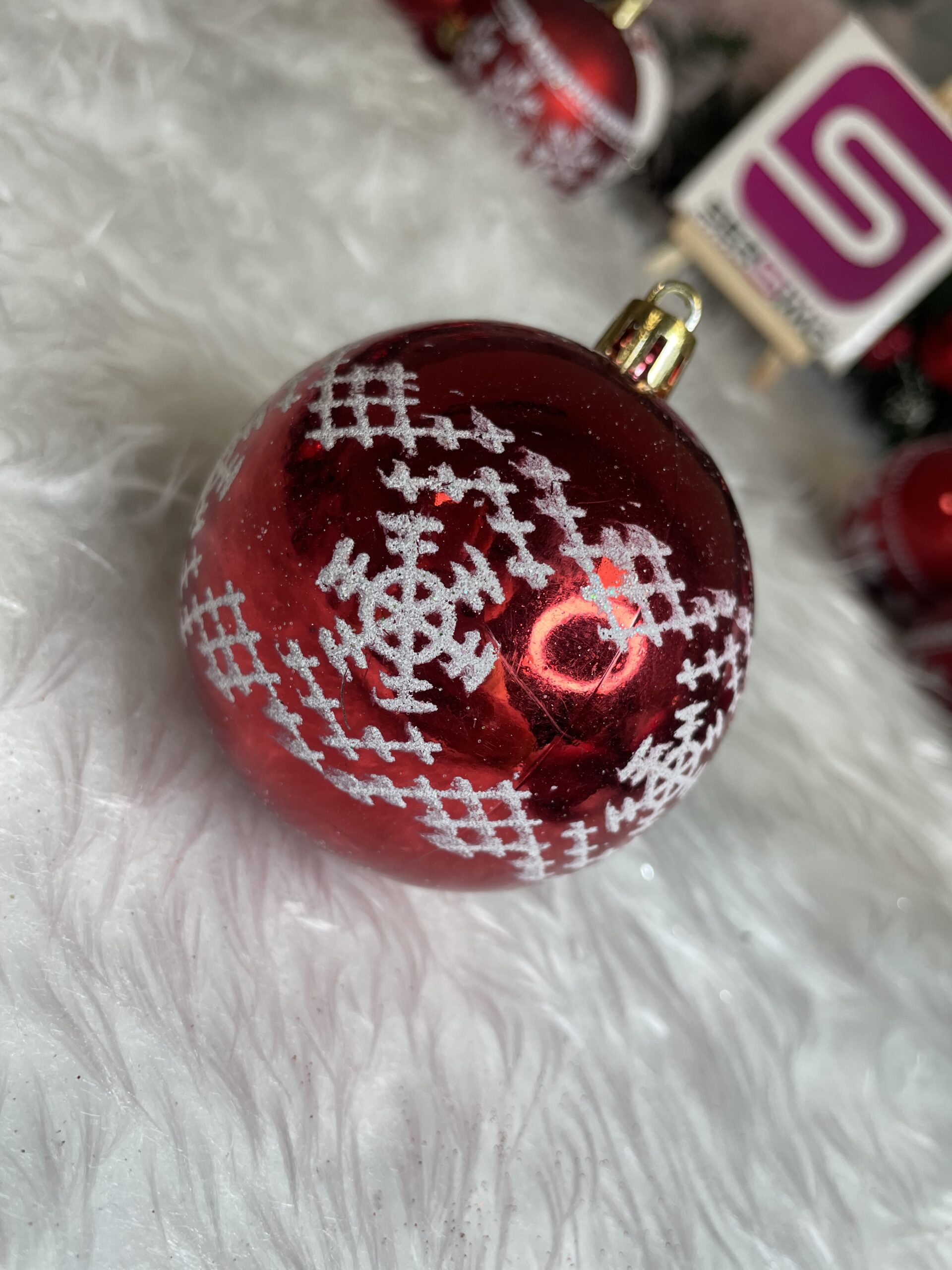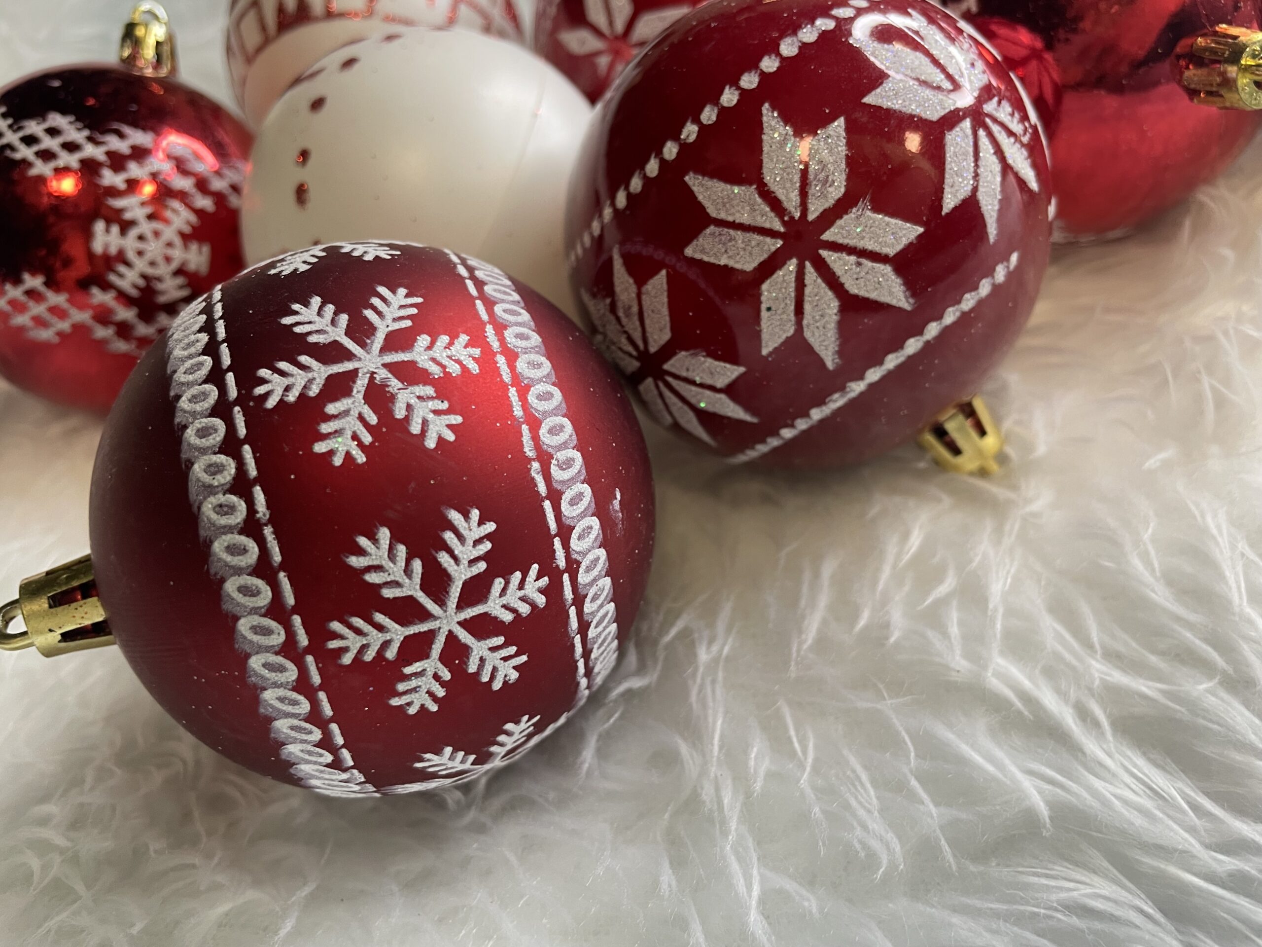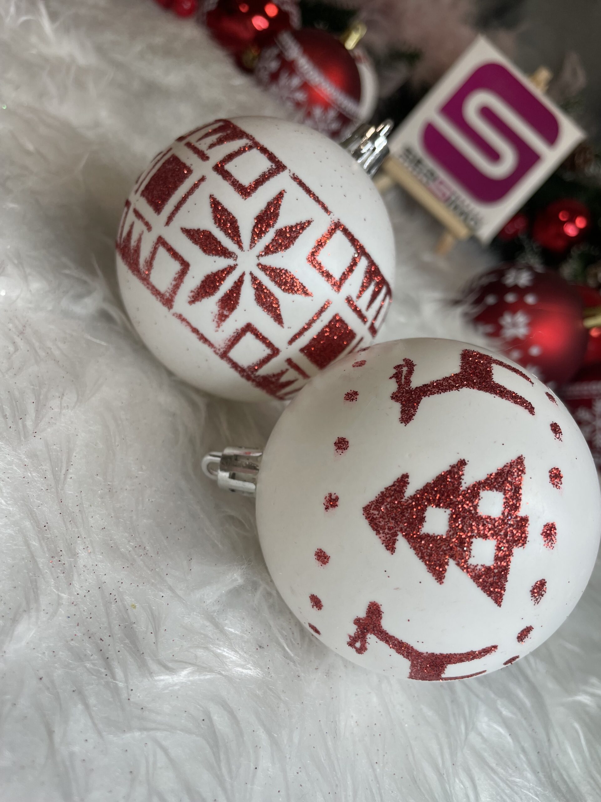 Set globuri de Craciun cu modele de sarbatori, 30 bucati, 7cm, alb rosu Household NewTrend